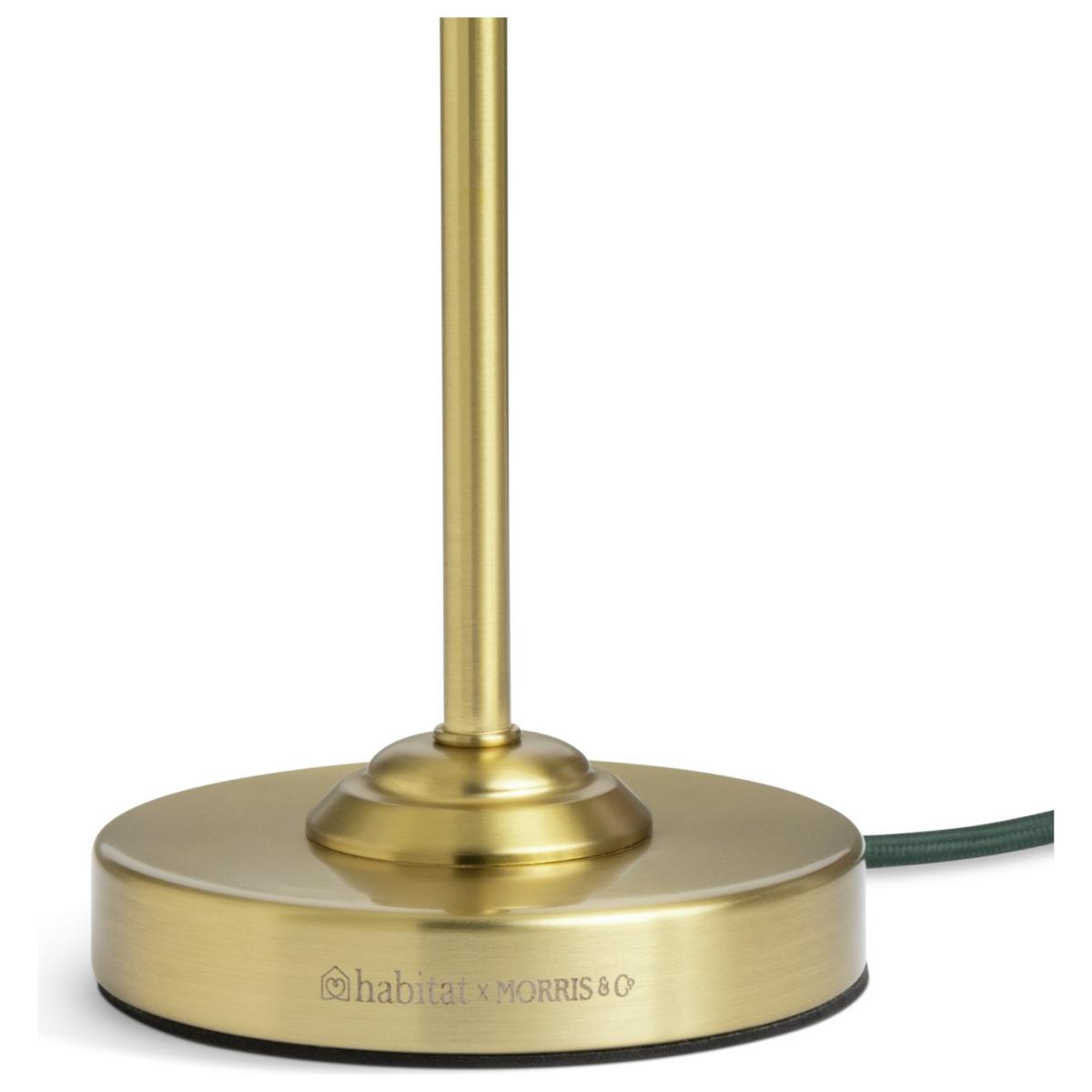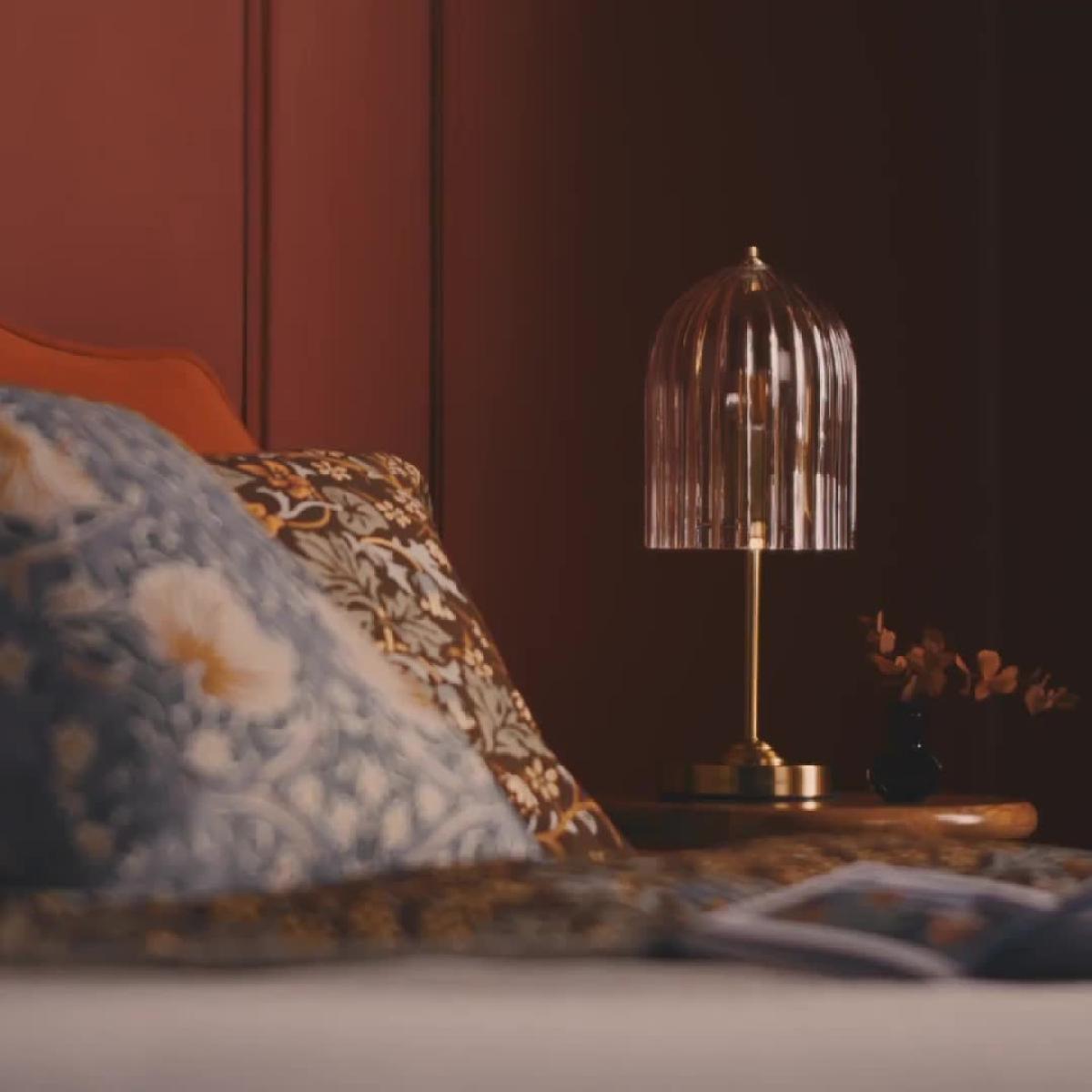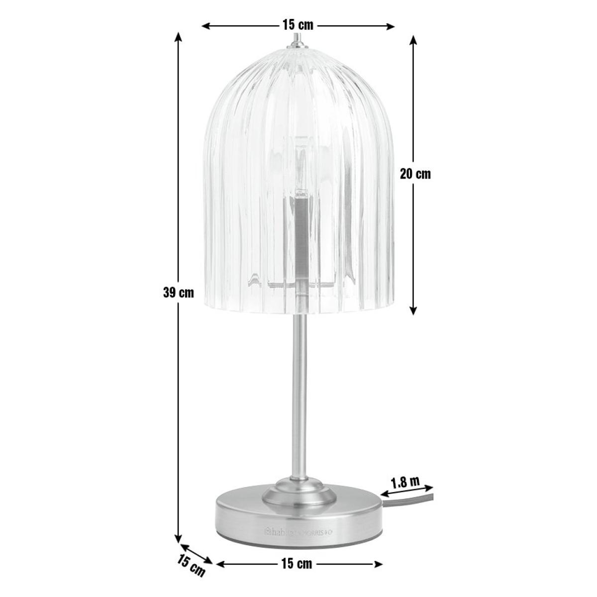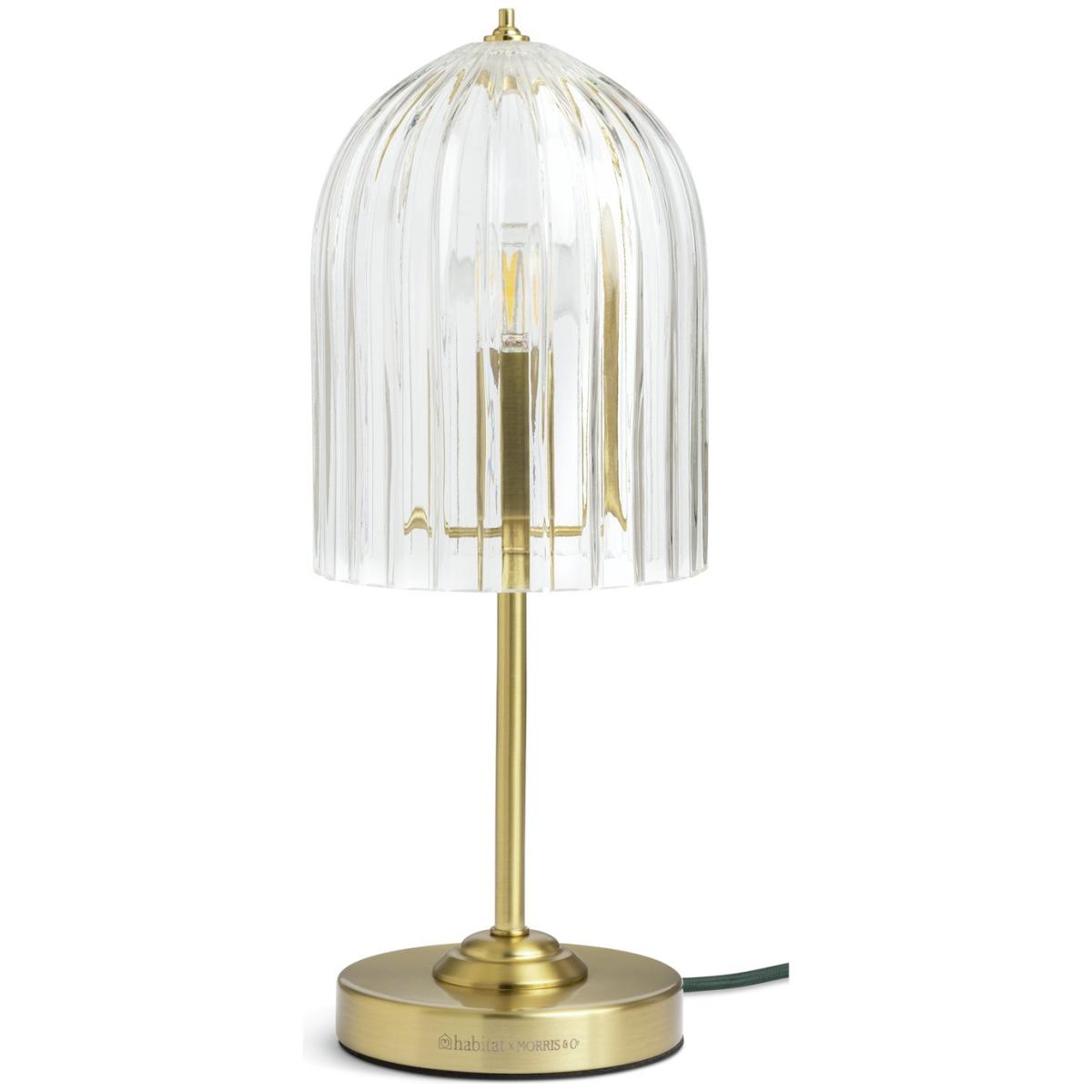 Expressive modern lighting that embraces the qualities of enduring design. This table lamp features a deeply ribbed glass cloche that pairs beautifully with the simple lines of the brushed brass base. Touch sensitive so you can dim the light with just a tap. A re-imagining and modern nod to the distinctive and lasting achievements of the Arts & Craft movement. Exclusively from Habitat x Morris & Co. Habitat x Morris & Co. A celebration of British design heritage inspired by the fundamentally important principles of the iconic William Morris. To produce authentically timeless pieces that are the epitome of utility and beauty. Part of the Habitat x Morris & Co. Collection. Dimensions: Overall size H39, W15, D15cm. Shade size H20, D15cm. Diameter of base 15cm. Cord length 1.8m. Bulb Information: Bulbs required 1 x candle E14 small edison screw LED bulb(s) (not included). Recommended maximum wattage: 10 watts. Alternative Bulb Required: 1. LED bulb only. General Information: Shade colour: clear. Base colour: brass. Shade material: glass. Base material: metal. Touch sensor switch - on/off. IP rating 20 - not suitable for bathroom use. Minimal assembly. This lighting product is a class 2 fitting. Manufacturer's 1 year guarantee.