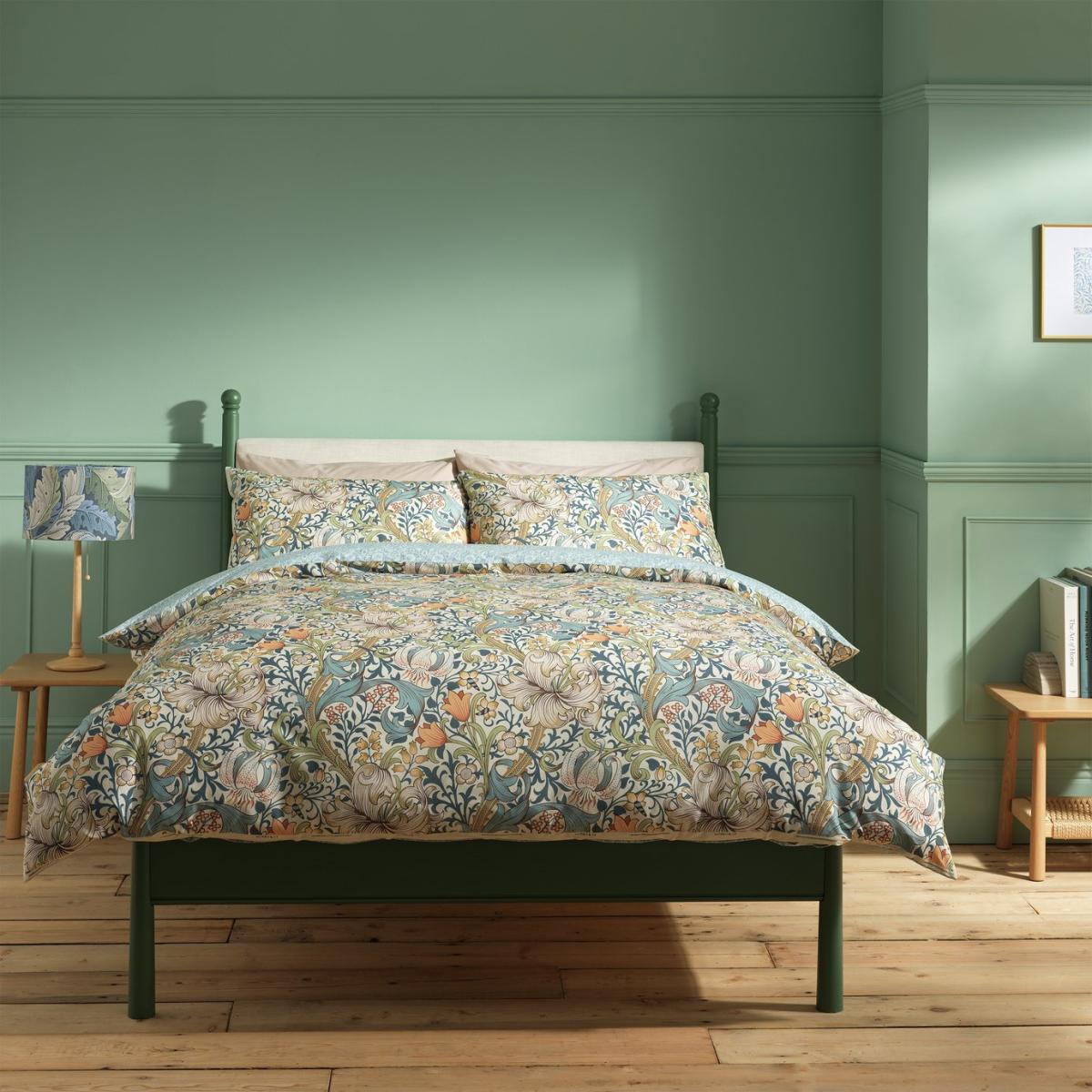 This beautiful 100% cotton bedlinen set features one of the most recognisable designs in the Morris & Co. Archive. Printed in sweet hues of vintage blues, pops of coral and antique yellows for a timeless, elevated look. Habitat x Morris & Co. A celebration of British design heritage with a fresh take on the iconic prints of William Morris. Authentically timeless pieces designed for the future. Part of the Habitat x Morris & Co. Collection. Fabric finish: printed. 100% cotton. 180 thread count. Set includes 1 duvet cover and 2 pillowcases. Bed size: super king. Length 220cm, Width 260cm. Buttons for fastening. Standard pillowcase (s). Pillow case length 75cm, Width 50cm. Machine washable. Suitable for tumble drying.