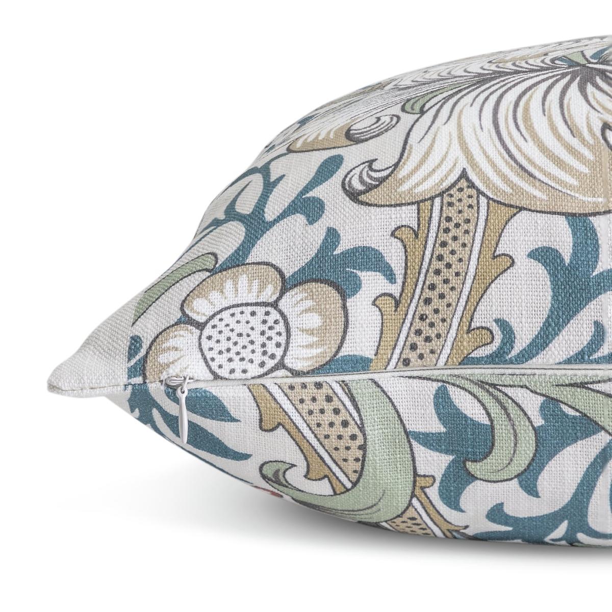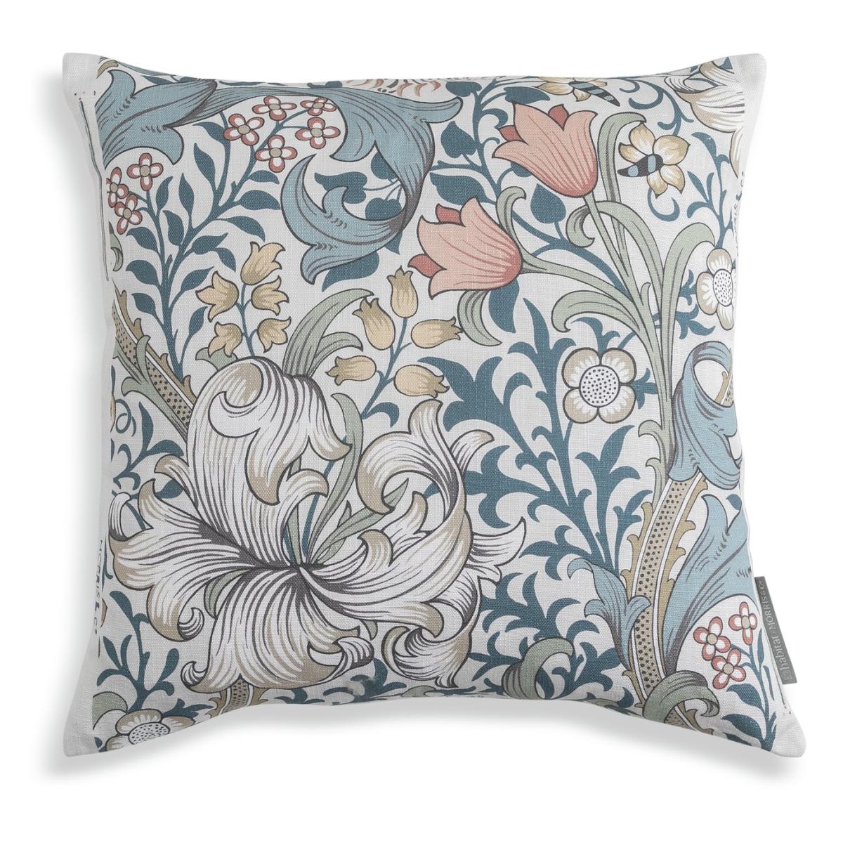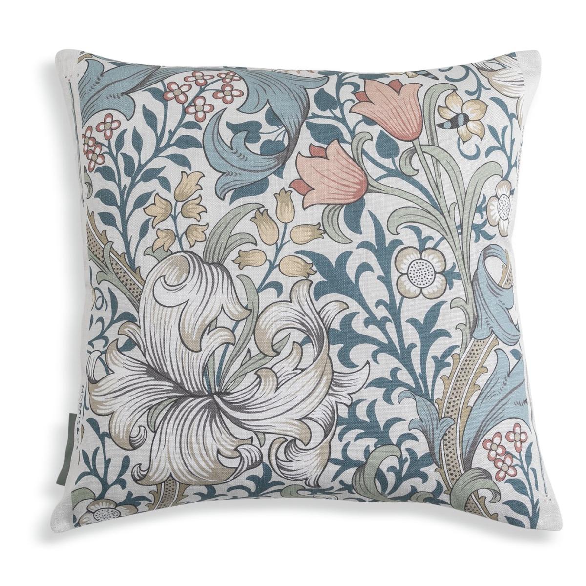 Soft vintage blues and pops of coral sit alongside antique yellow giving a contemporary twist to the iconic Golden Lily print. Edged with a deep flange, overlocked stitching detail and a plain, textured back, bringing the timeless touch of Arts & Crafts into your home. Habitat x Morris & Co. A celebration of British design heritage with a fresh take on the iconic prints of William Morris. Authentically timeless pieces designed for the future. Part of the Habitat x Morris & Co. Collection. Zip fastening. Cover 100% Cotton. Filling 70% recycled polyester, 30% virgin polyester. Size L50, W50cm. This cover is machine washable.