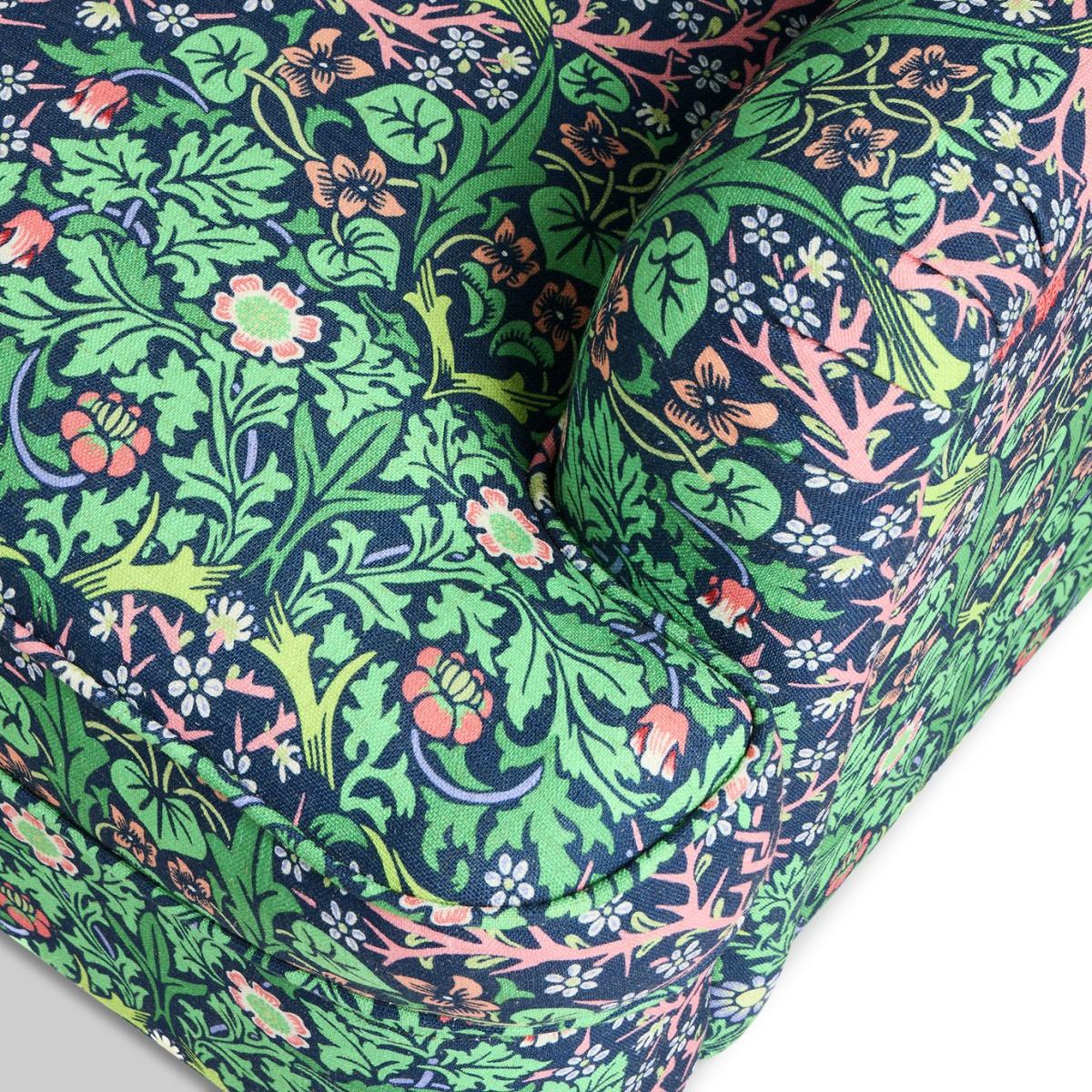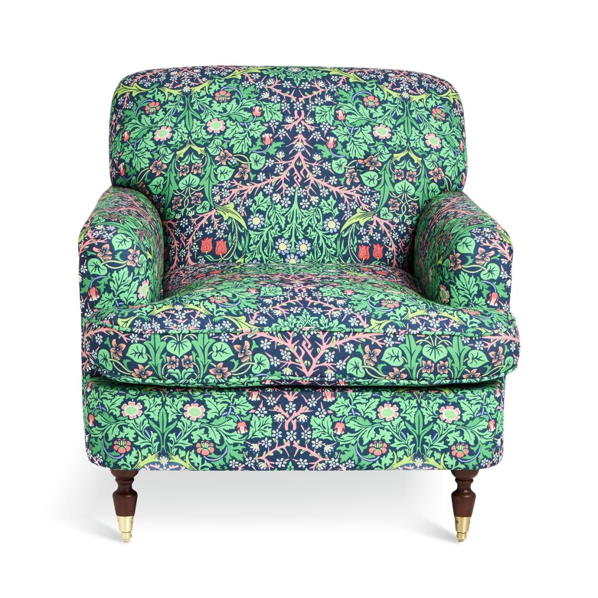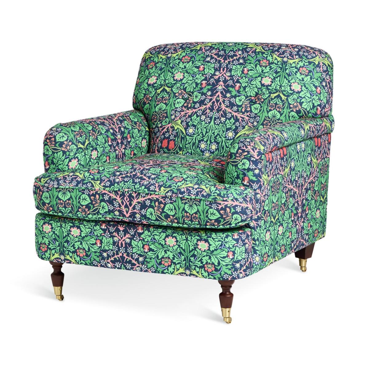From Habitat x Morris & Co. Comes this Merton armchair. A fusion of English country design and the romantic, nature-inspired patterns of William Morris. Upholstered in the distinctive Blackthorn print, it's an eye-catching piece. With a frame made from solid oak, a comfortably cushioned, pocket sprung seat, supportive padded back and low and convenient arms. It's made for lounging and relaxing. Habitat x Morris & Co. A celebration of British design heritage with a fresh take on the iconic prints of William Morris. Part of the Habitat x Morris & Co. Collection. Material: Made from 100% polyester. Castor feet. Removable seat with pocket sprung and foam filling. Fixed cushion(s) with foam filling. Dimensions: Size H92, W87.5, D100cm. Floor to seat height: 50.5cm. Depth of seat: 65cm. Height of seat back: 42cm. Width of seating area between arms: 57.5cm. Height of arm rest: 66cm. Weight: 37.8kg. Packaged dimensions: Package size H81, W90.5, D103cm. General information: Wipe clean or lightly vacuum. Minimal assembly - just add feet. Maximum individual user weight 110kg. Manufacturer's 10 year guarantee.