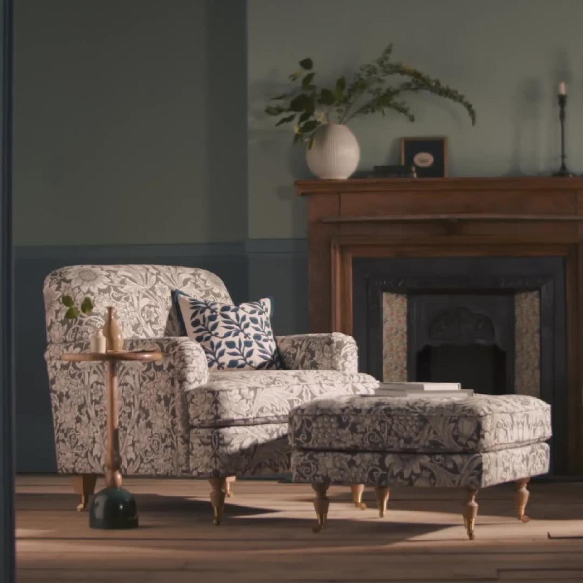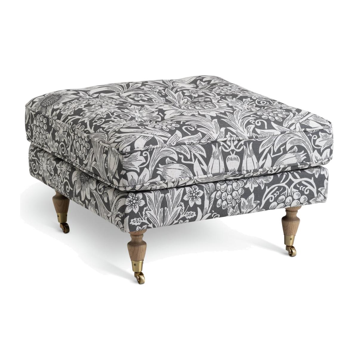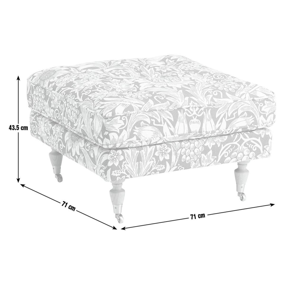 A feet-up treat, or an extra seat from Habitat x Morris & Co. This Merton footstool is a blend of English country design and the romantic, nature-inspired patterns of William Morris. The cushioned pocket sprung pad is upholstered in a striking Sunflower design. Seat frame made from solid oak. Habitat x Morris & Co. A celebration of British design heritage inspired by the fundamentally important principles of the iconic William Morris. To produce authentically timeless pieces that are the epitome of utility and beauty. Part of the Habitat x Morris & Co. Collection. Material: Made from 100% polyester. Castor feet. Removable cushion(s) with pocket sprung and foam filling. Dimensions: Size H43.5, W71, D71cm. Weight 12kg. Wipe clean or lightly vacuum. Minimal assembly - just add feet. Maximum individual user weight 100kg. Packaged dimensions: Package size H28.5, W74, D74cm. General information: Manufacturer's 2 year guarantee. FSC certified meaning the materials used for this product are responsibly sourced.