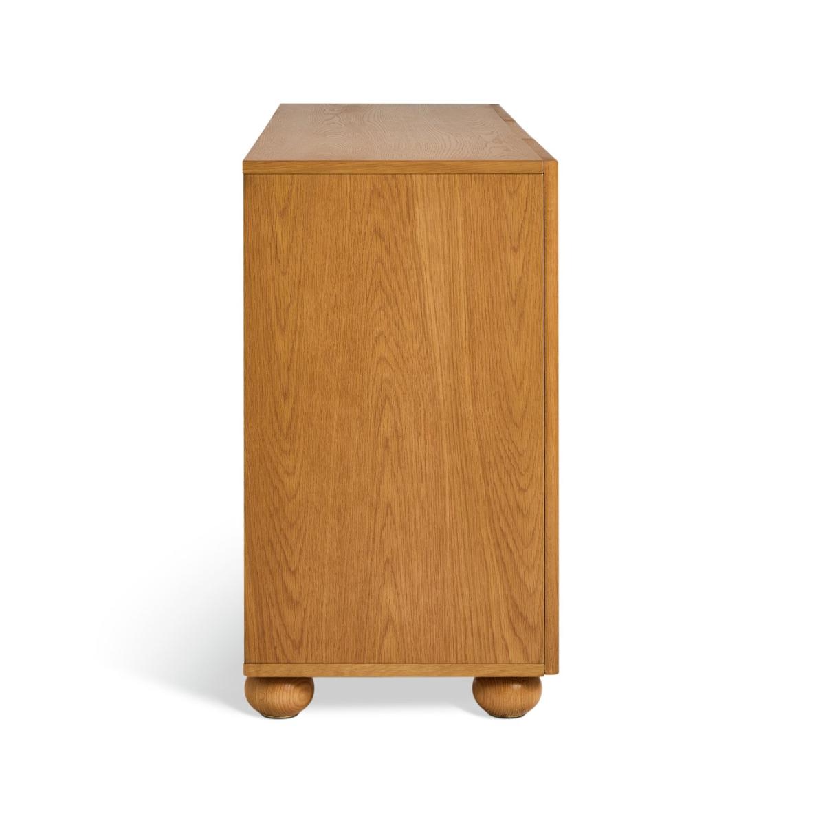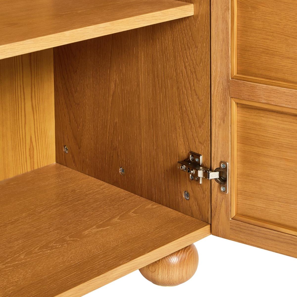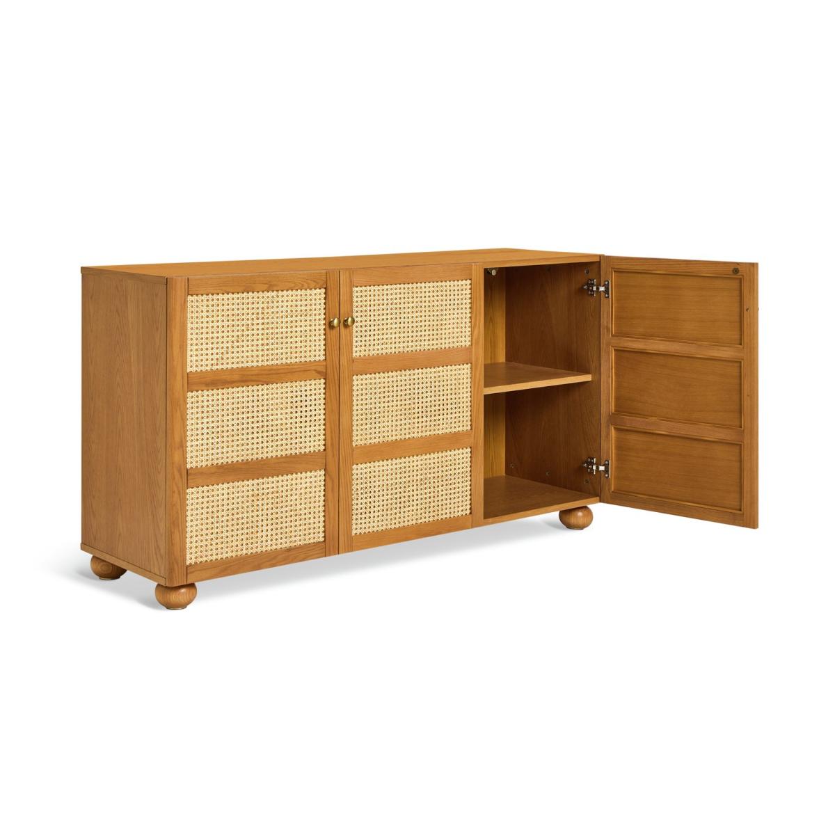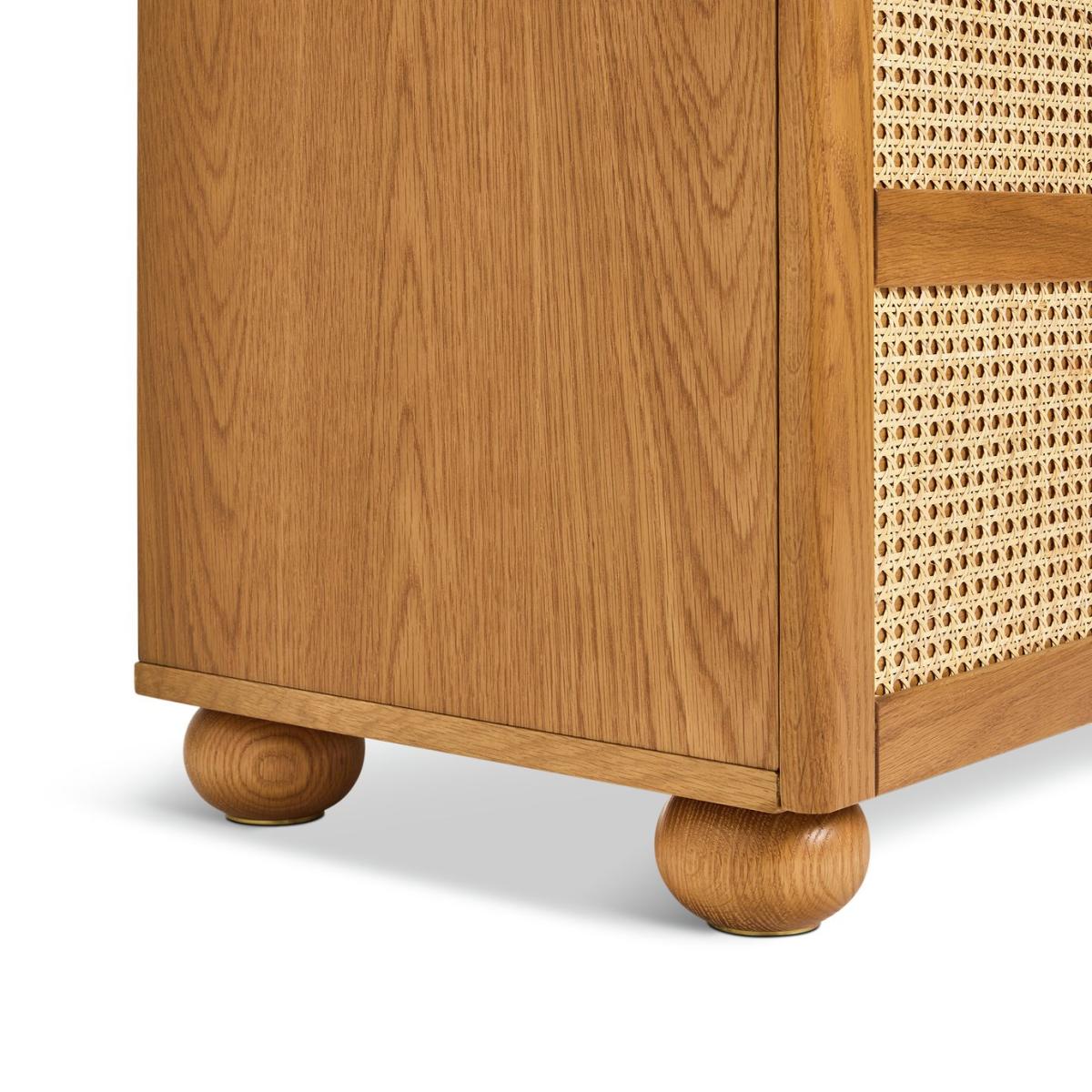 This dramatic sideboard was inspired by the cane furniture at William Morris' Wightwick Manor. The natural beauty of the dark stained oak veneer perfectly frames the lightness of the cane panels. Behind the 2 doors, 6 shelves provide ample storage space. Habitat x Morris & Co. A celebration of British design heritage with a fresh take on the iconic prints of William Morris. Part of the Habitat x Morris & Co. Collection. Made from oak and MDF with a walnut stain finish. Size H 80.3, W 150, D45cm. Gold coloured handles. 3 doors. 3 fixed shelves. Weight 57kg. Self-assembly - 2 people recommended. Maximum load weight 120kg. If this product is over 60cm high it must be securely attached to the wall to prevent overturning. Package Dimensions: Package 1 dimensions: H16, W105, D58cm. Package 1 weight: 29.8kg. Package 2 dimensions: H14, W158.5, D50cm. Package 2 weight: 33.26kg. By choosing FSC certified products, you are supporting responsible management of the world's forests. Manufacturer's 1 year guarantee.
