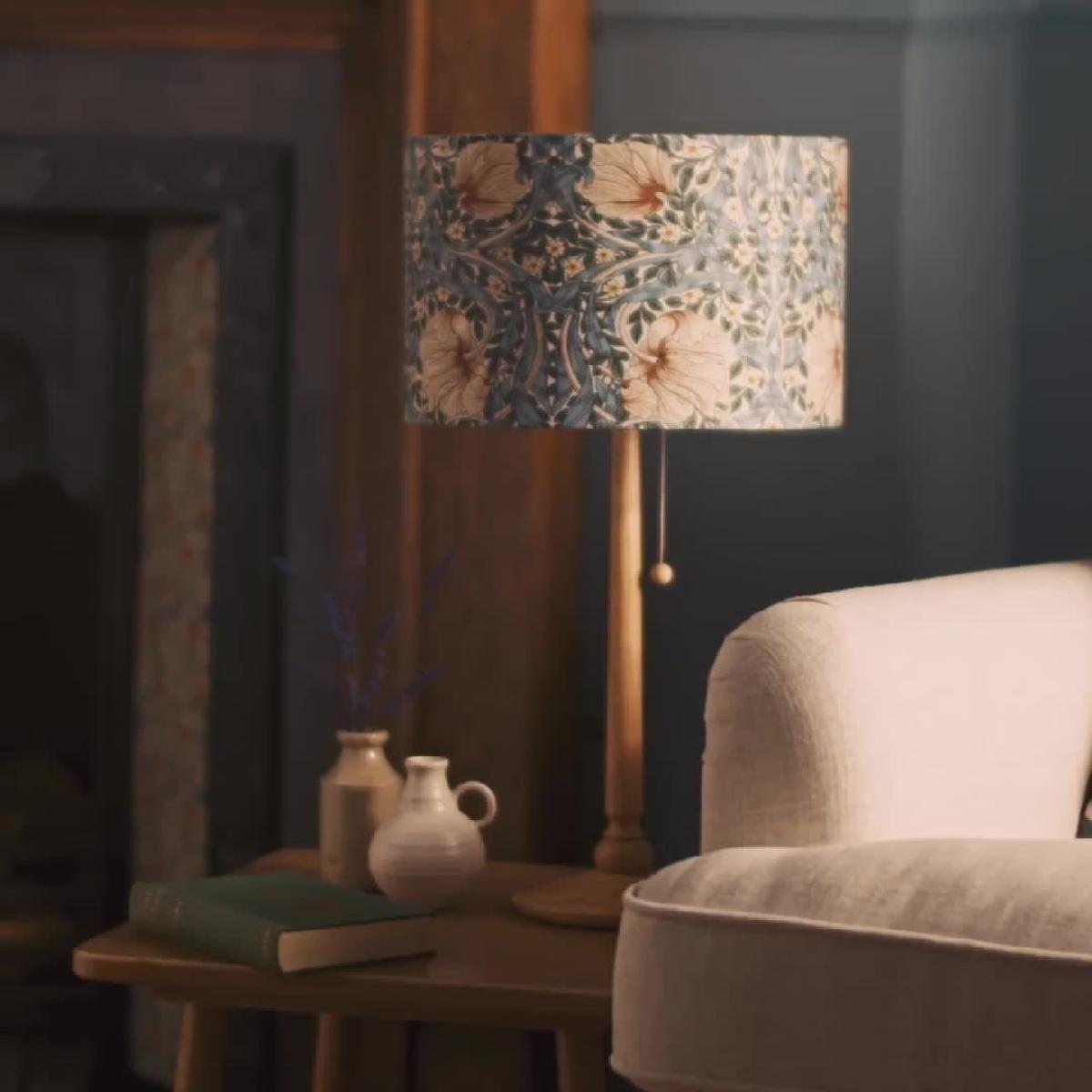 Our Pimpernel print lampshade is made for lovers of Arts & Craft design. In soothing shades of blue and sepia, this William Morris design features tiny pimpernel flowers nestled among flowing leaves and large-scale blooms. Looks beautiful by day while producing a soft ambient glow by night. Easy to fit to a ceiling light or table lamp. Or use on both, to bring a decorative harmony to your space. Habitat x Morris & Co. A celebration of British design heritage inspired by the fundamentally important principles of the iconic William Morris. To produce authentically timeless pieces that are the epitome of utility and beauty. Part of the Habitat x Morris & Co. Collection. Made from fabric. Size H20cm, Diameter 30cm. Recommended maximum bulb wattage 42 watts. Fully assembled. Easy fit shade.