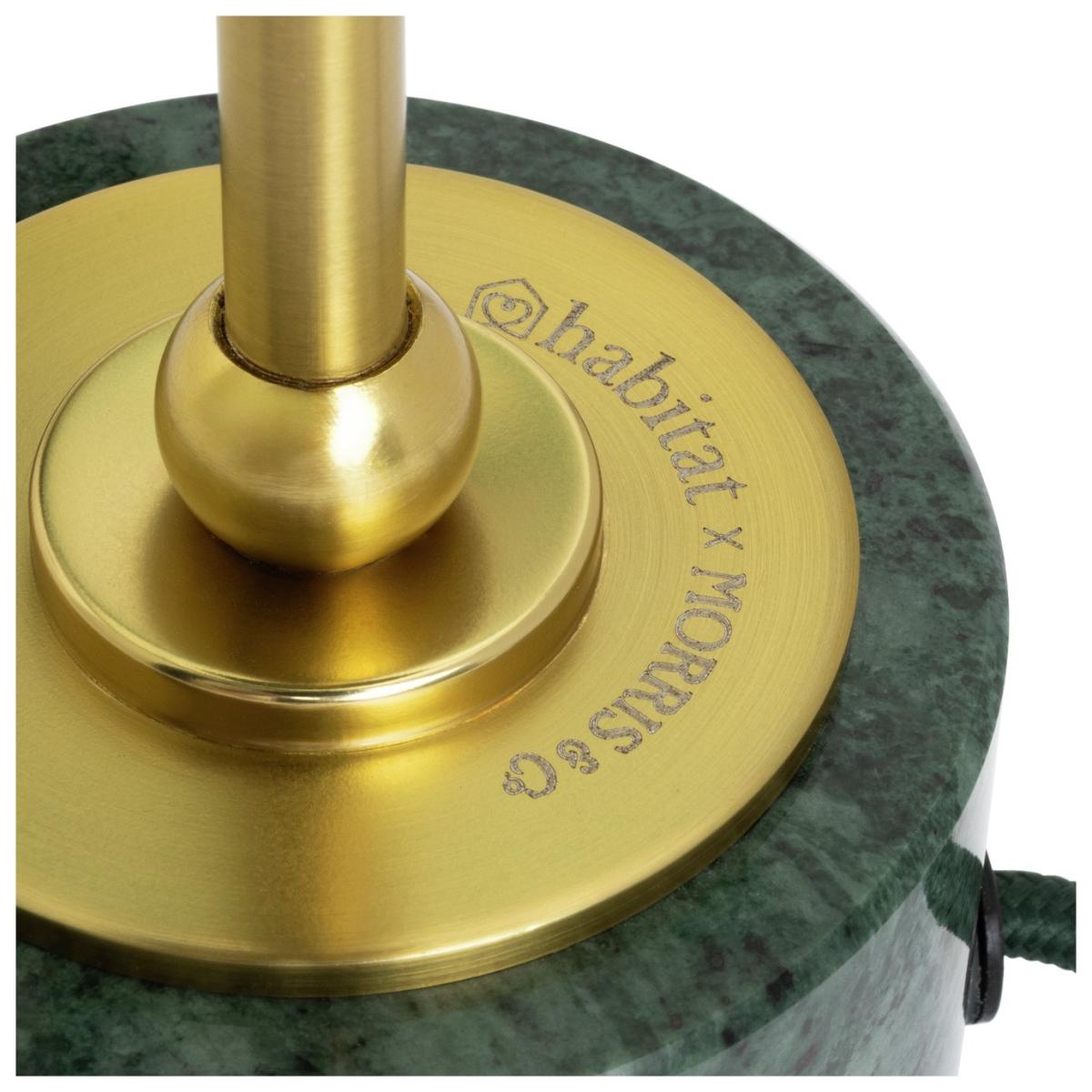 A decorative addition to a desk, side table or bedside cabinet. Crafted in brass with a solid marble base, this lamp is an example of enduring design. Luxurious ambient lighting. Habitat x Morris & Co. A celebration of British design heritage inspired by the fundamentally important principles of the iconic William Morris. To produce authentically timeless pieces that are the epitome of utility and beauty. Part of the Habitat x Morris & Co. Collection. Dimensions: Overall size H40, W13.5, D13.5cm. Diameter 13.5cm. Shade size H9, D13.5cm. Diameter of base 8cm. Cord length 1.8m. Bulb Information: Bulbs required 1 x classic capsule G9 LED bulb(s) (not included). Recommended maximum wattage: 5 watts. Alternative Bulb Required: 1. LED bulb only. General Information: Shade colour: brass. Base colour: green. Shade material: metal. Base material: marble. In-line switch. IP rating 20 - not suitable for bathroom use. Minimal assembly. This lighting product is a class 2 fitting. Manufacturer's 1 year guarantee.