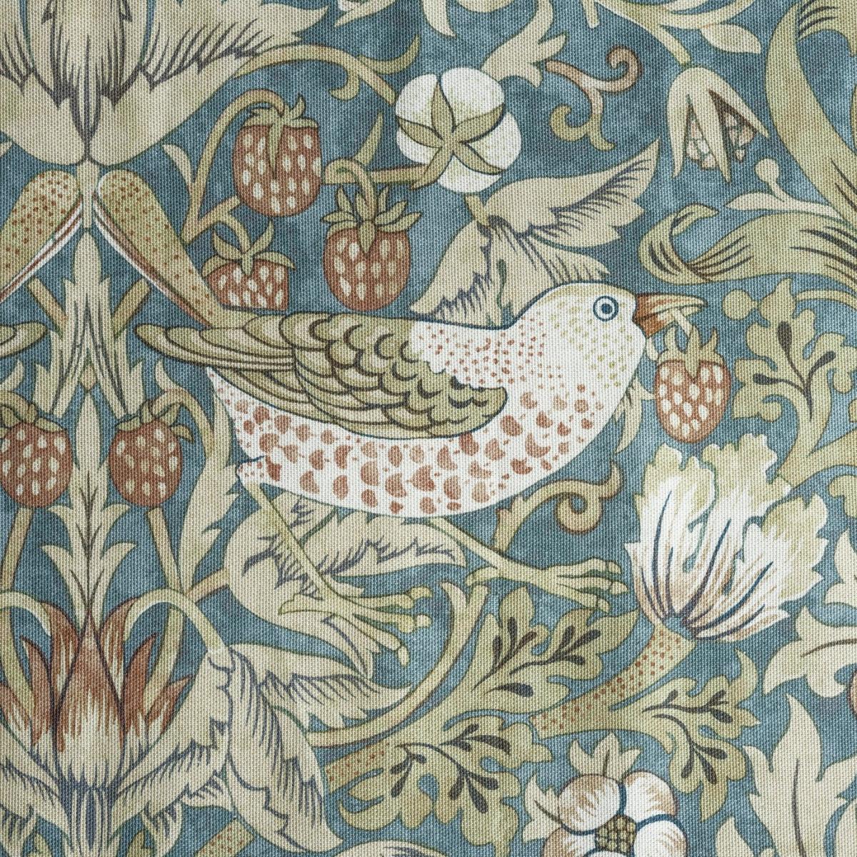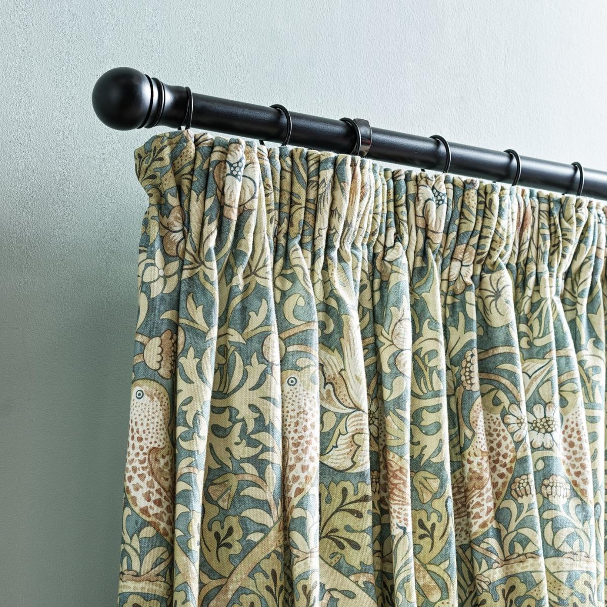 Choose our Strawberry Thief print curtains to uplift your room effortlessly. A much-loved William Morris print with a small-scale pattern of garden birds and fruits. Woven from 100% cotton in naturalistic hues with a pinch pleat heading. This fully lined pair are from Habitat x Morris & Co. Habitat x Morris & Co. A celebration of British design heritage inspired by the fundamentally important principles of the iconic William Morris. To produce authentically timeless designs that are the epitome of utility and beauty. Part of the Habitat x Morris & Co. Collection. Blue. Features Fully lined. Made from 100% cotton. Lined. Lining made from 50% cotton and 50% polyester. Dimensions Size 117cm (46 inches) wide by 137cm (54 inches) drop. Depth of header tape: 3 inch/ 3cm. General information Contains one pair of curtains. Curtain pole not included.