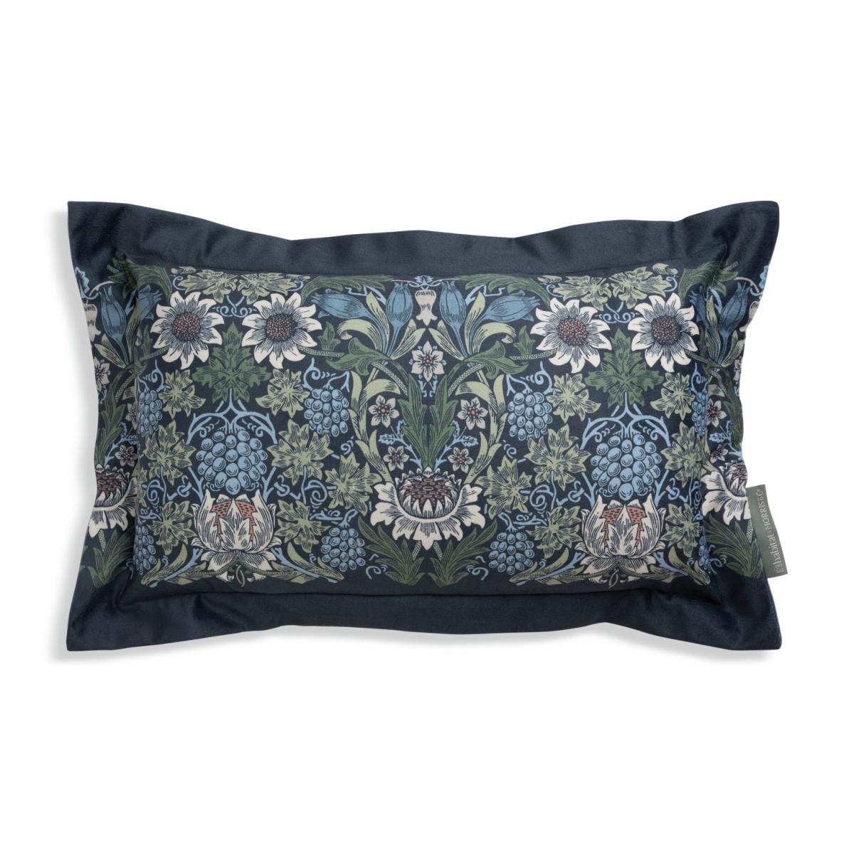 Soft, deep and a dream to lean into. This rich velvet cushion with intense tones in an exclusive colourway, features the Sunflower pattern of blooms and trailing vines designed by William Morris. All beautifully framed in an Oxford style border to accentuate the power of this stunning design. Part of the distinctive Habitat x Morris & Co. Collection. Habitat x Morris & Co. A celebration of British design heritage with a fresh take on the iconic prints of William Morris. Authentically timeless pieces designed for the future. Part of the Habitat x Morris & Co. Collection. Zip fastening. Cover 100% Front : 100% Polyester, 100% Back : 100% Cotton. Filling 100% Polyester. Size L50, W30cm. This cover is machine washable.