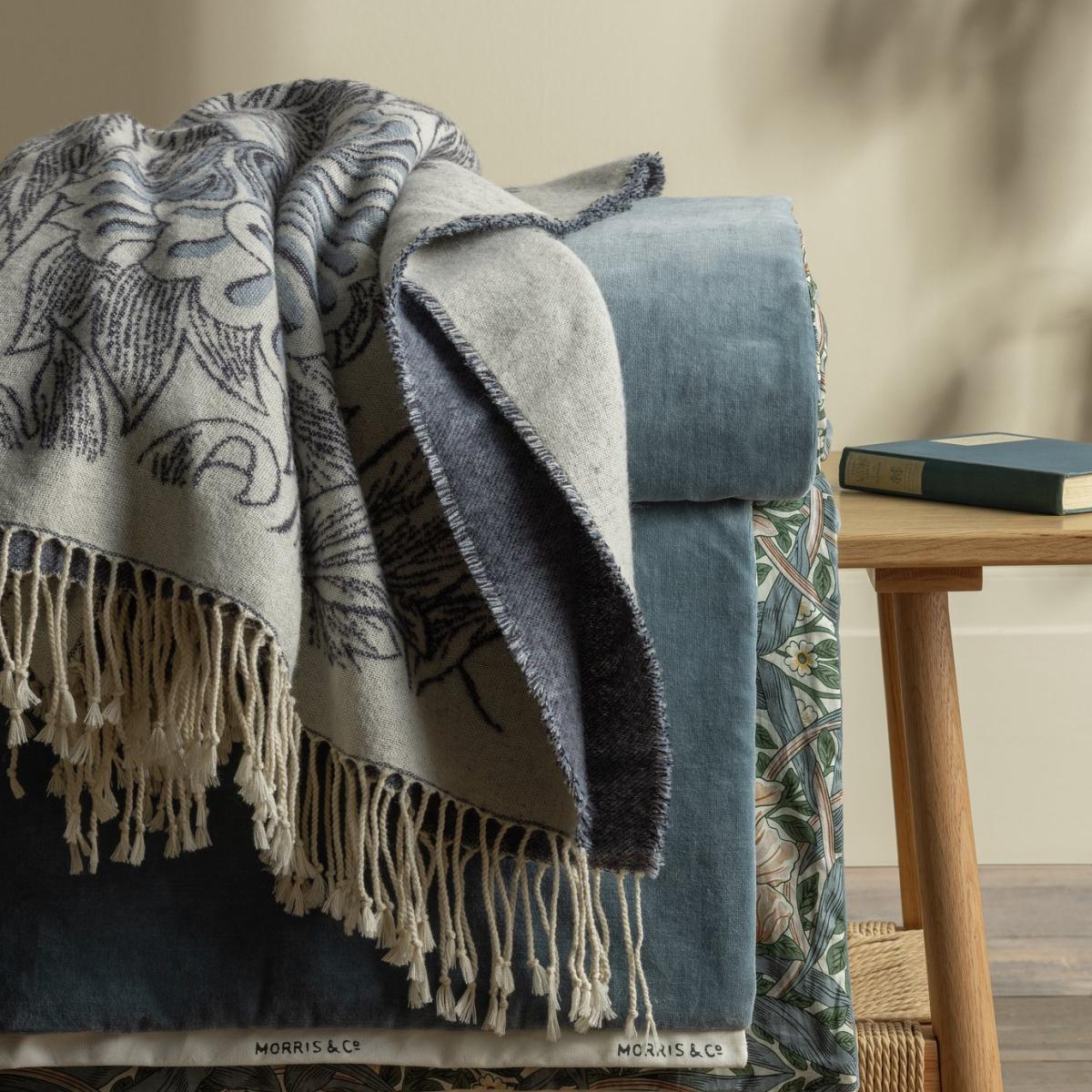 I love the classic yet contemporary vibe of this woven throw, especially with its navy palette and botanical print. It works brilliantly in both traditional and modern interiors, adding an element of charm without overwhelming the space. It's a versatile piece that can be draped over the back of a sofa for an effortless cosy upgrade or layered on a bed for added texture and colour. Practical styling tips include pairing it with crisp linen or neutral textiles to let the pattern stand out, or using it as a focal point in a neutral scheme to introduce some pattern and interest. Its size and lightweight weave make it a functional and stylish choice for everyday comfort, making it a smart investment for elevating a variety of settings.