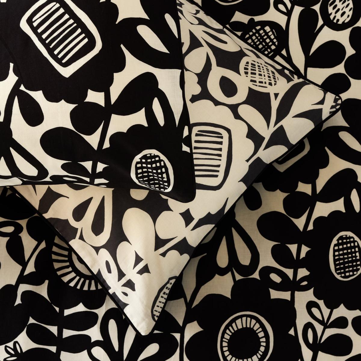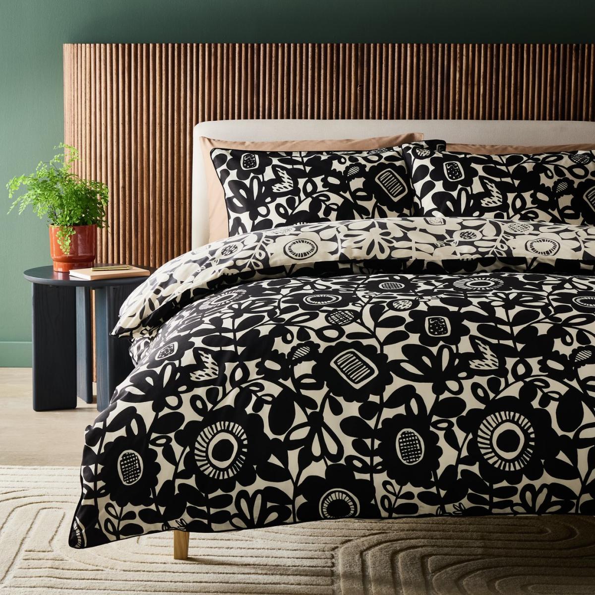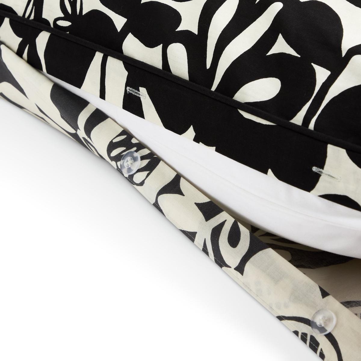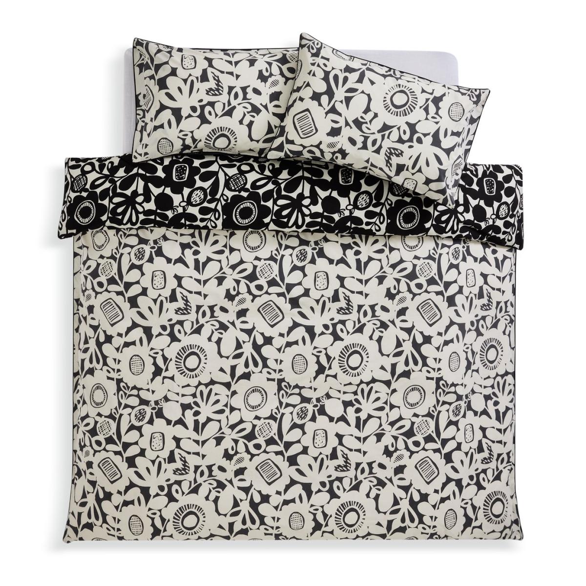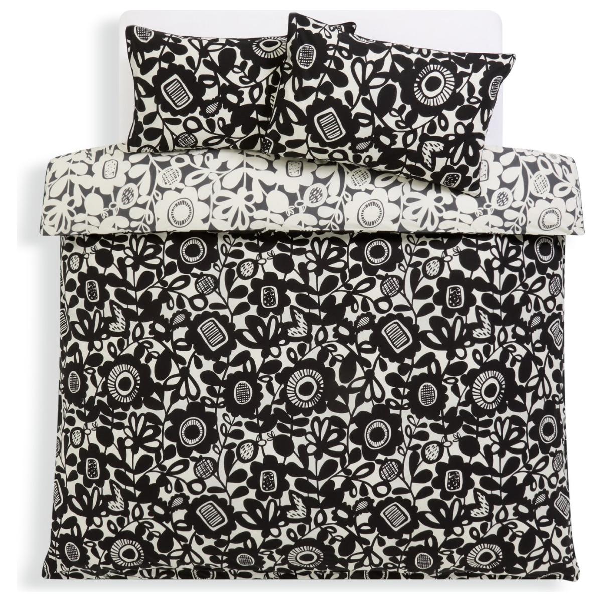 Modern maximalist monochrome. Bring some Scandi style to the room with this 100% cotton duvet set. The distinctive Kukkia floral pattern is beautifully impactful with reversible design and finished with piped edging. We have joined forces with Scion, a British brand that joyfully mixes bold pattern and confident colour with Scandi influences. Our new exclusive Habitat x Scion collaboration combines our design team's expertise, exploring Scion's iconic portfolio of prints, together bringing a harmonious blend of retro aesthetics and playful energy to our homewares range. Part of the Habitat x Scion collection. Fabric finish: printed. 100% cotton. Set includes 1 duvet cover and 2 pillowcases. Bed size: double. Length 200cm, Width 200cm. Piped edging detail. Reversible. Buttons for fastening. Standard pillowcase (s). Pillow case length 75cm, Width 50cm. Reversible pillowcase (s). Machine washable.