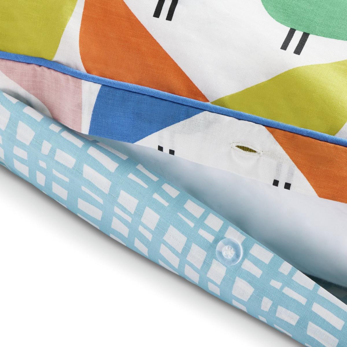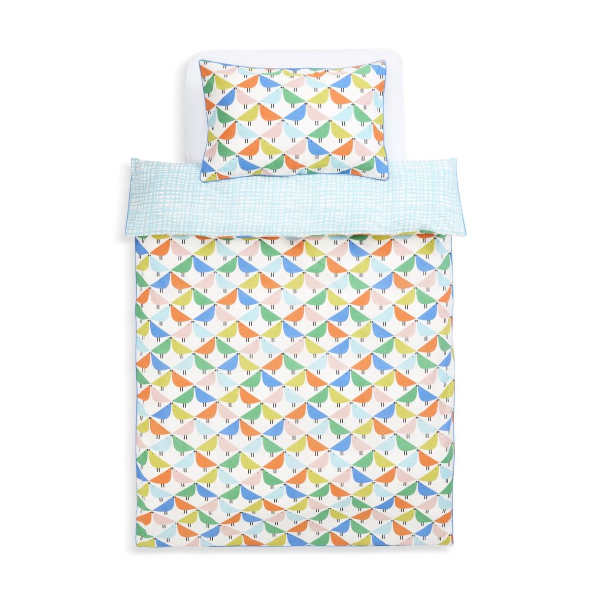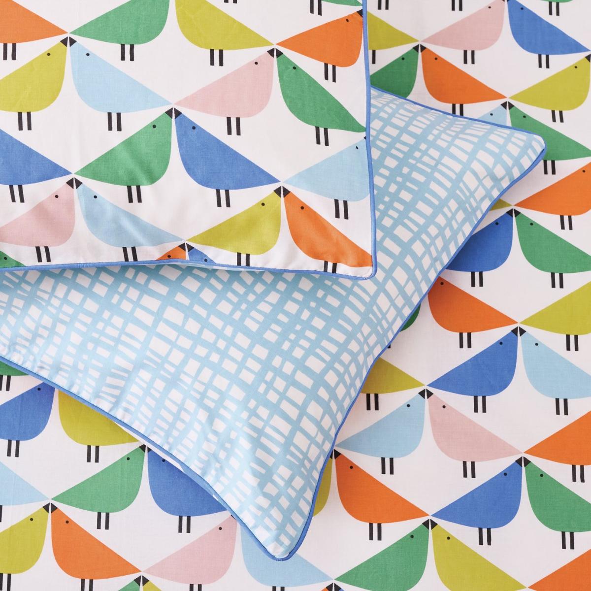 Vibrant and joyful, this colourful bedding set showcases the distinctive Scion Lintu kissing birds design. Reversible, with Aria print in blue and white on the other side. Finished with piping. Made from 100% cotton. We have joined forces with Scion, a British brand that joyfully mixes bold pattern and confident colour with Scandi influences. Our new exclusive Habitat x Scion collaboration combines our design team's expertise, exploring Scion's iconic portfolio of prints, together bringing a harmonious blend of retro aesthetics and playful energy to our homewares range. Part of the Habitat x Scion collection. Fabric finish: printed. 100% cotton. Set includes 1 duvet cover and 1 pillowcase. Bed size: single. Length 200cm, Width 135cm. Piped edging detail. Reversible. Buttons for fastening. Standard pillowcase (s). Pillow case length 75cm, Width 50cm. Reversible pillowcase (s). Machine washable.