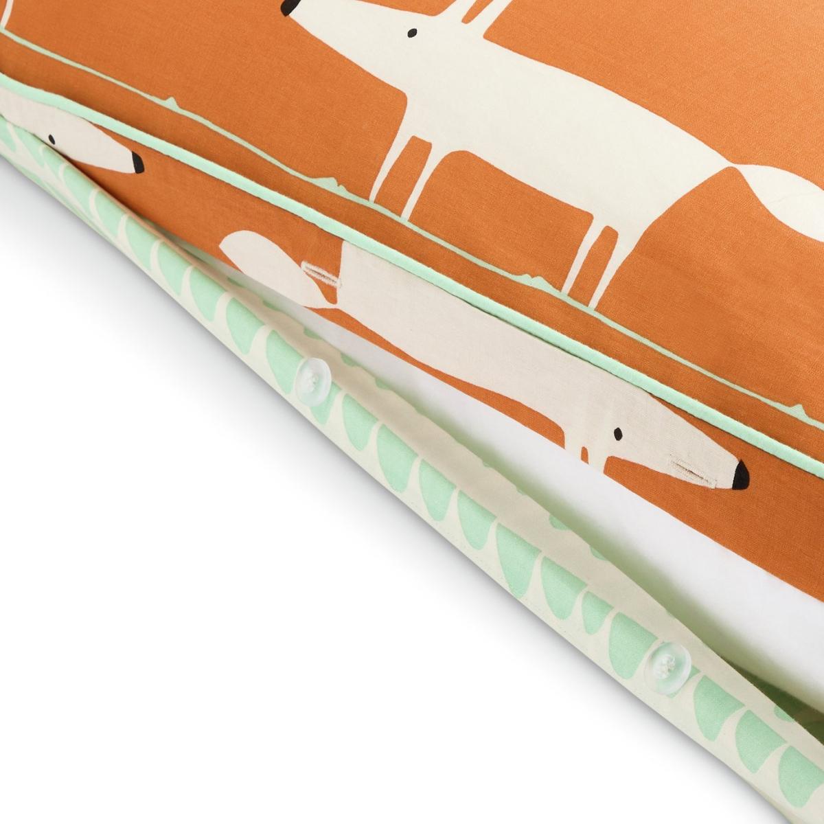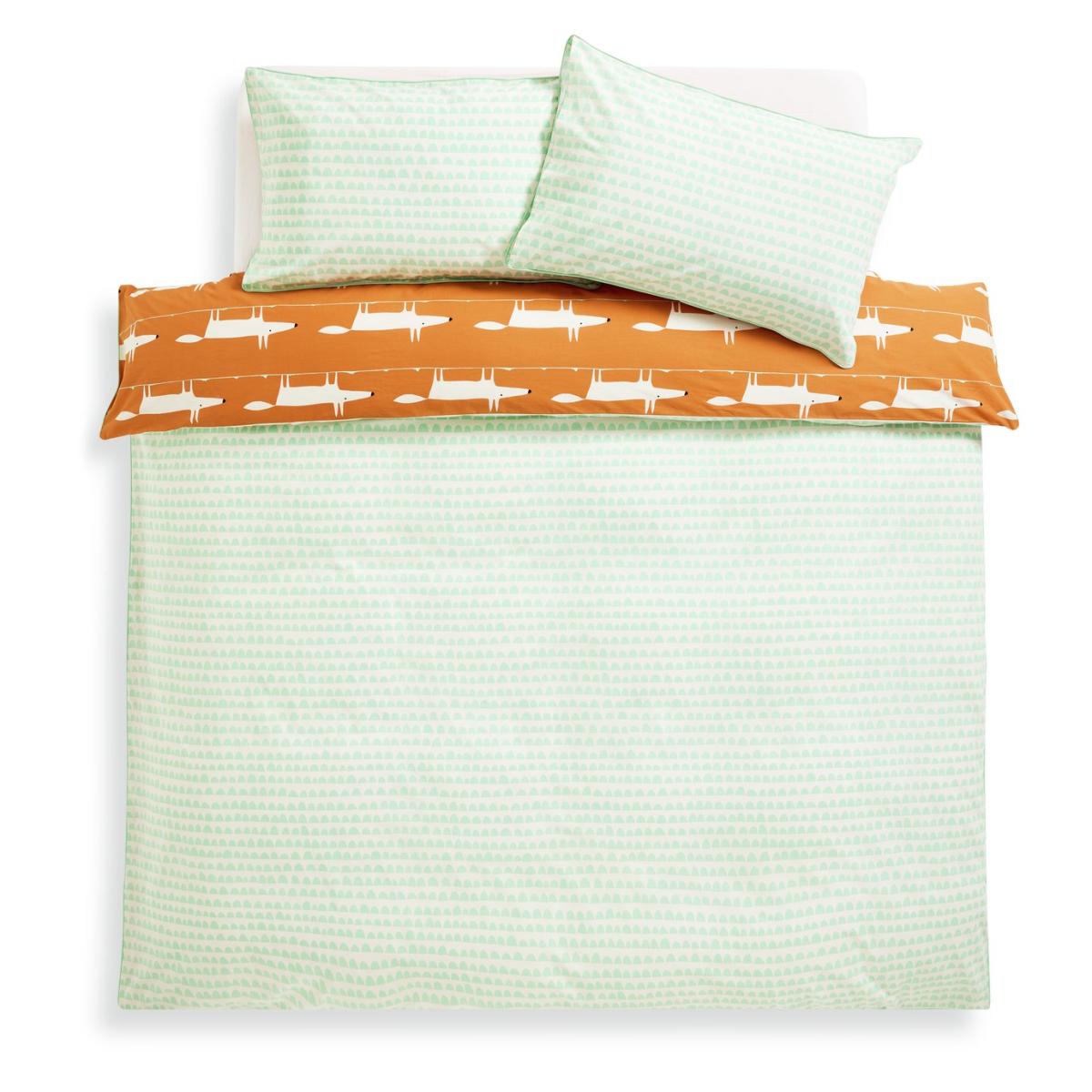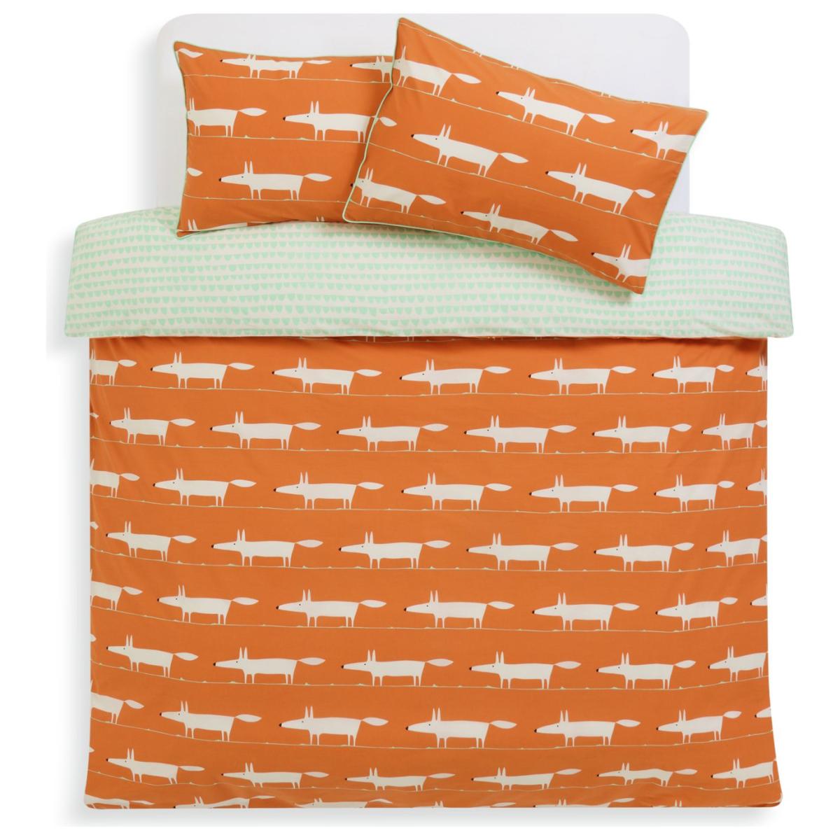 Snuggle in with Mr Fox. The iconic fashionable fox looks stunning in this new colour combination bedding set with a contrasting reverse and piped edging. We have joined forces with Scion, a British brand that joyfully mixes bold pattern and confident colour with Scandi influences. Our new exclusive Habitat x Scion collaboration combines our design team's expertise, exploring Scion's iconic portfolio of prints, together bringing a harmonious blend of retro aesthetics and playful energy to our homewares range. Part of the Habitat x Scion collection. Fabric finish: printed. 100% cotton. Set includes 1 duvet cover and 2 pillowcases. Bed size: double. Length 200cm, Width 200cm. Piped edging detail. Reversible. Buttons for fastening. Standard pillowcase (s). Pillow case length 75cm, Width 50cm. Reversible pillowcase (s). Machine washable.
