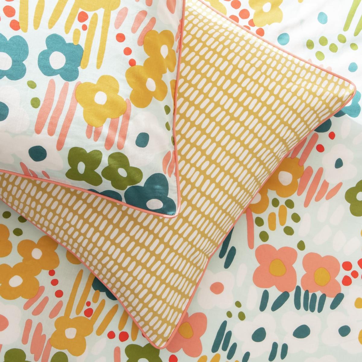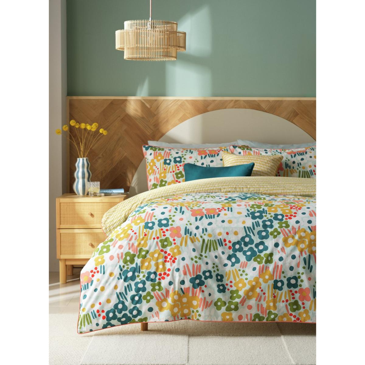 Sink into a field of flowers. Our meadow bedding set is floatingly fresh. The sort of soft summer bedding you'd expect when Habitat x Scion collaborates. This 100% cotton duvet set will bring a cheerful mood to your bedroom. With reversible pattern variations, turn it whichever way you fancy. This item carries the STANDARD 100 by OEKO-TEX logo, which means you can be certain that every component has been tested for harmful substances and is therefore harmless to human health. 100% cotton. Set includes 1 duvet cover and 1 pillowcase. Bed size: single. Length 200cm, Width 135cm. Piped edging detail. Buttons for fastening. Standard pillowcase (s). Pillow case length 75cm, Width 50cm. Machine washable. Suitable for tumble drying. Part of the Scion collection.