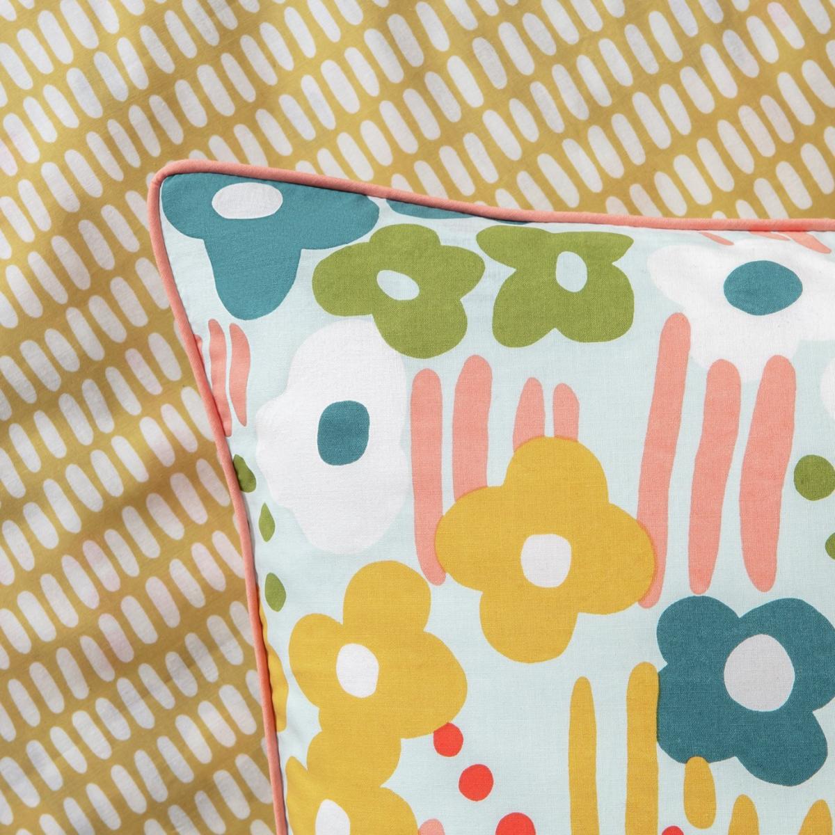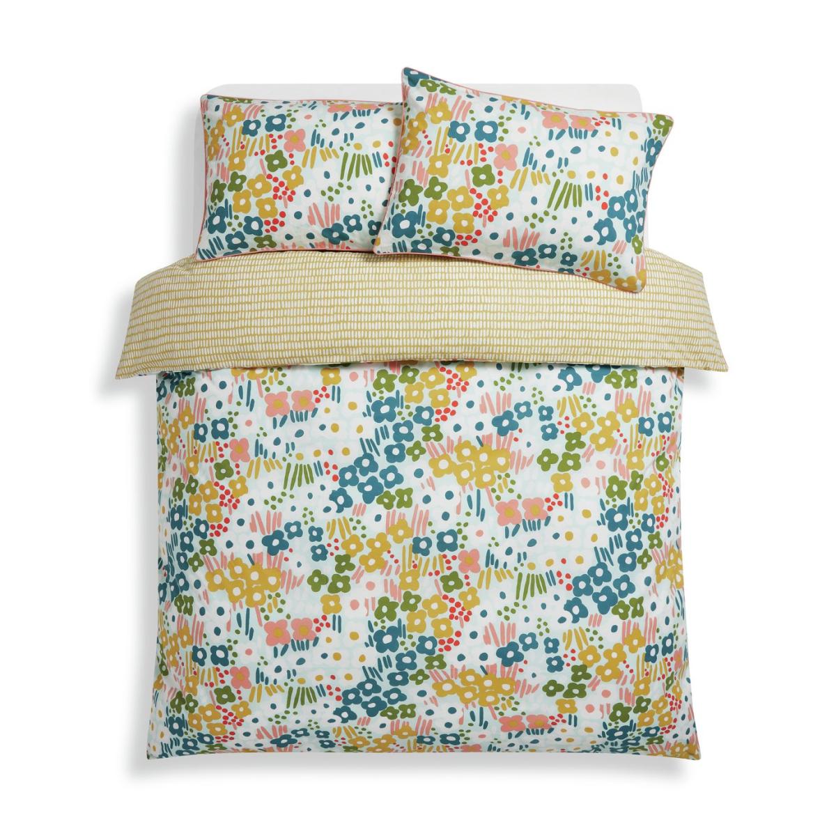 Sink into a field of flowers. Our meadow bedding set is floatingly fresh. The sort of soft summer bedding you'd expect when Habitat x Scion collaborates. This 100% cotton duvet set will bring a cheerful mood to your bedroom. With reversible pattern variations, turn it whichever way you fancy. This item carries the STANDARD 100 by OEKO-TEX logo, which means you can be certain that every component has been tested for harmful substances and is therefore harmless to human health. 100% cotton. Set includes 1 duvet cover and 2 pillowcases. Bed size: super king. Length 220cm, Width 260cm. Piped edging detail. Buttons for fastening. Standard pillowcase (s). Pillow case length 75cm, Width 50cm. Machine washable. Suitable for tumble drying. Part of the Scion collection.