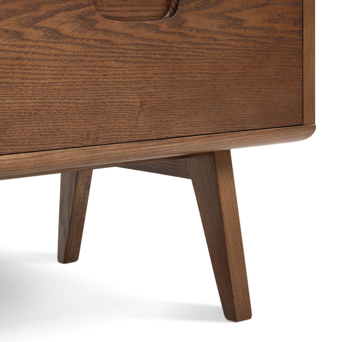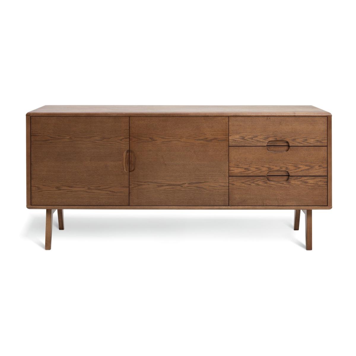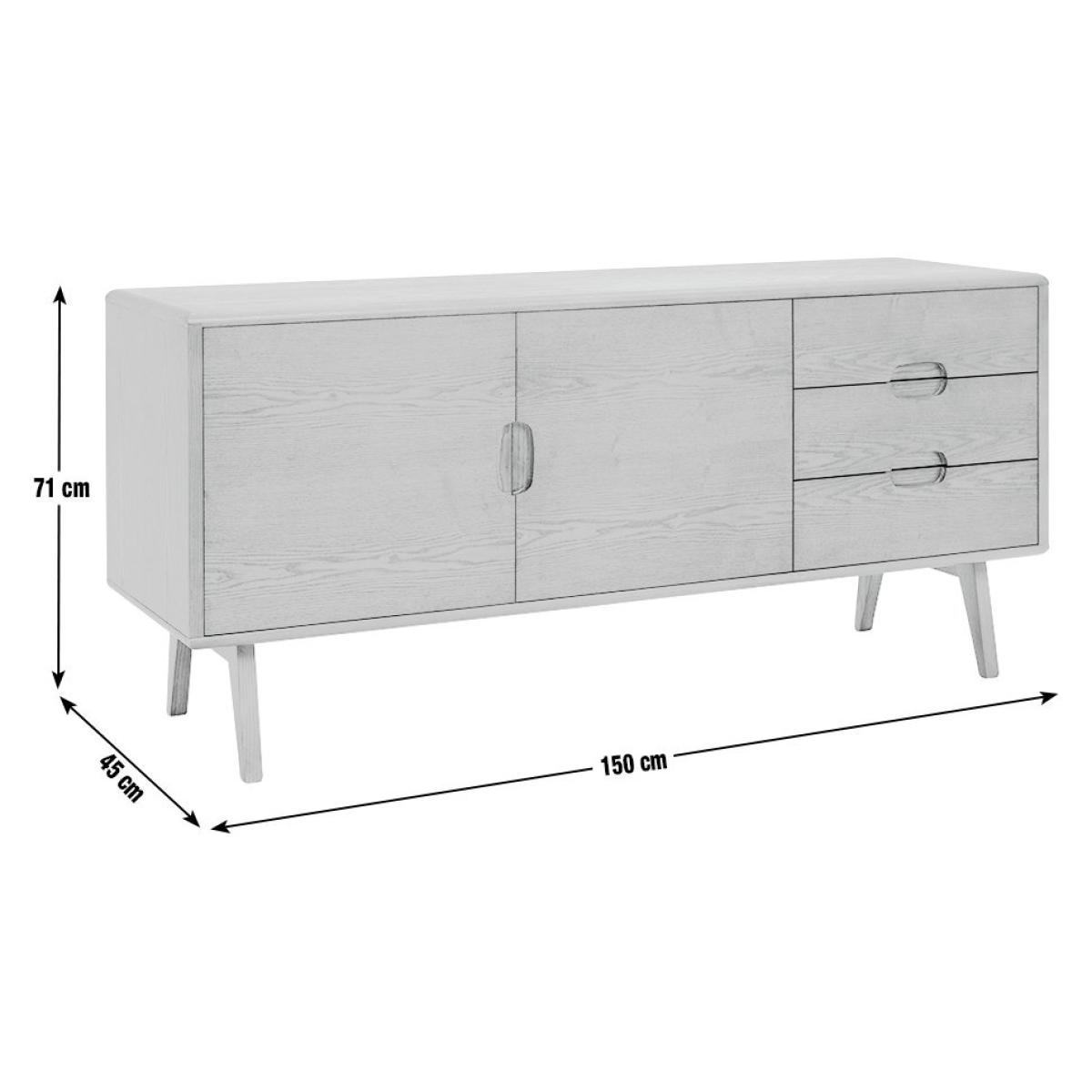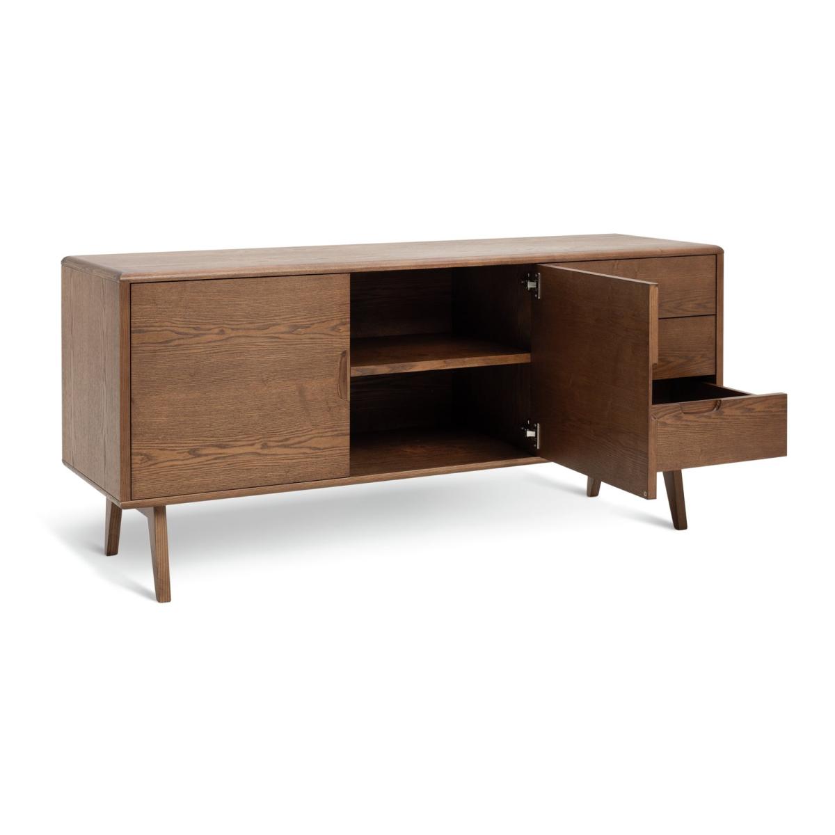 Mid-century minimalism with solid credentials. Esala is everything a well-designed sideboard should be. The walnut finish makes its presence felt. Featuring ample storage - two doors and three drawers with routed handles and soft edges, the whole piece is elevated on splayed wooden legs. Part of the Scion collection. Made from wood veneer and oak. Size H 71, W 150, D45cm. 3 drawers with wooden runners. 2 doors. 2 adjustable shelves. Weight 62kg. Self-assembly - 2 people recommended. Maximum load weight 75kg. If this product is over 60cm high it must be securely attached to the wall to prevent overturning. Package Dimensions: Package 1 dimensions: H20, W161.5, D59.5cm. Package 1 weight: 65.5kg. General information: FSC certified meaning the materials used for this product are responsibly sourced.