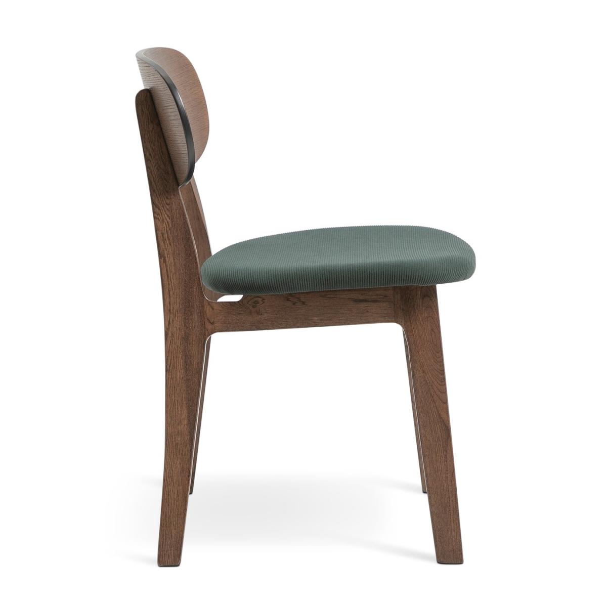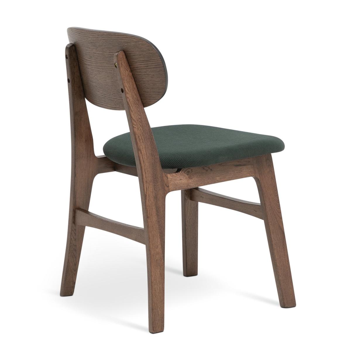 Take a seat and enjoy the comfortably refined aesthetics of mid-century modern design. Traditional angular lines in solid oak blend with softened, rounded profiles to create this contemporary classic dining chair. The rich walnut finish perfectly complements the sumptuous green cord cushioned upholstery. We have joined forces with Scion, a British brand that joyfully mixes bold pattern and confident colour with Scandi influences. Our new exclusive Habitat x Scion collaboration combines our design team's expertise, together bringing a harmonious blend of retro aesthetics and playful energy to our furniture range. Part of the Scion collection. Chair: 1 chair supplied. Size H79, W50, D52cm. Seat height 46cm. Oak frame with oak legs. Fabric seat pad. Self-assembly - 1 person recommended. Max user weight per chair 120kg. Individual chair weight 5.7kg. Wipe clean. Package Dimensions: Chair package size: H11, W66, D82cm. General information: Manufacturer's 2 Year (1 year fabric) guarantee. FSC certified meaning the materials used for this product are responsibly sourced.