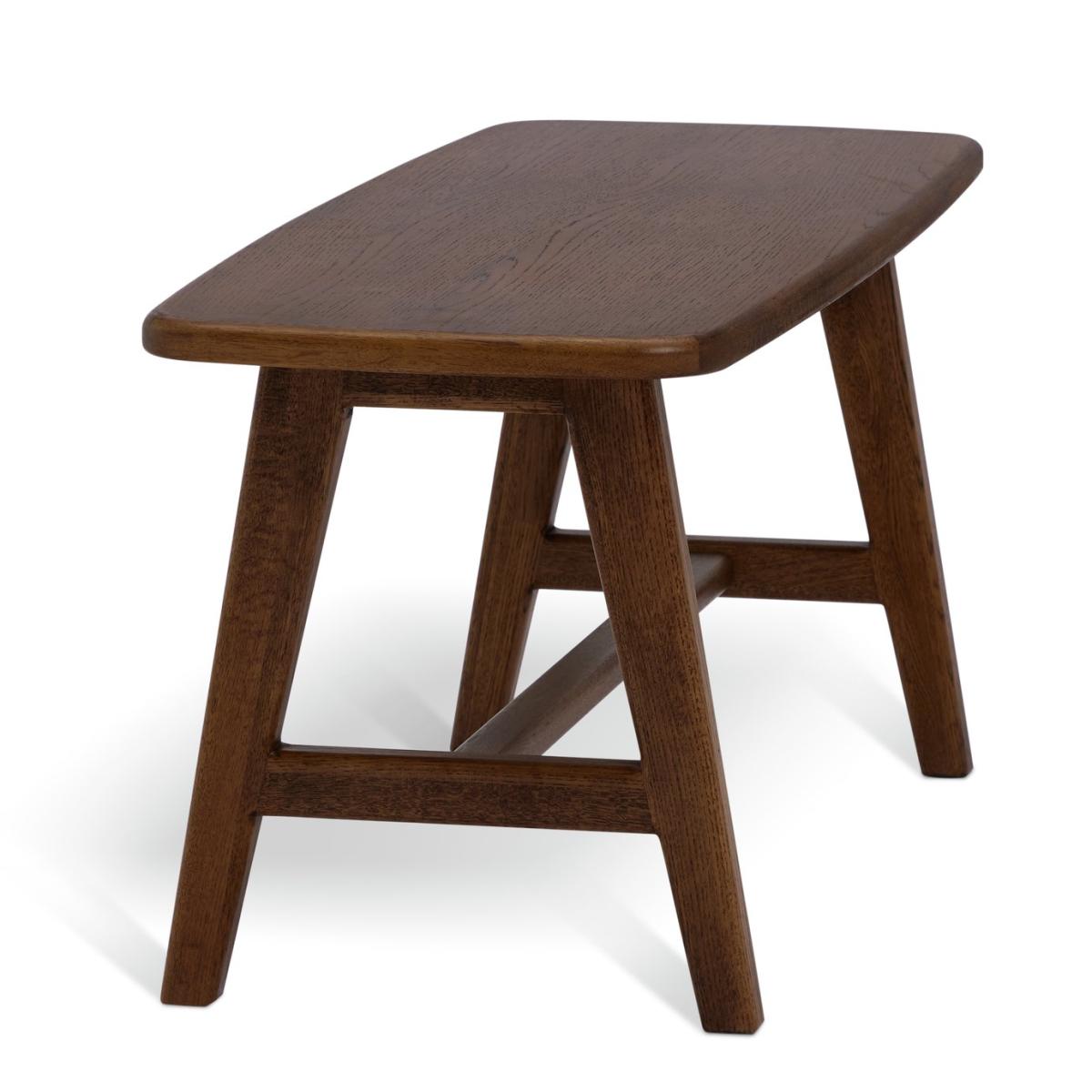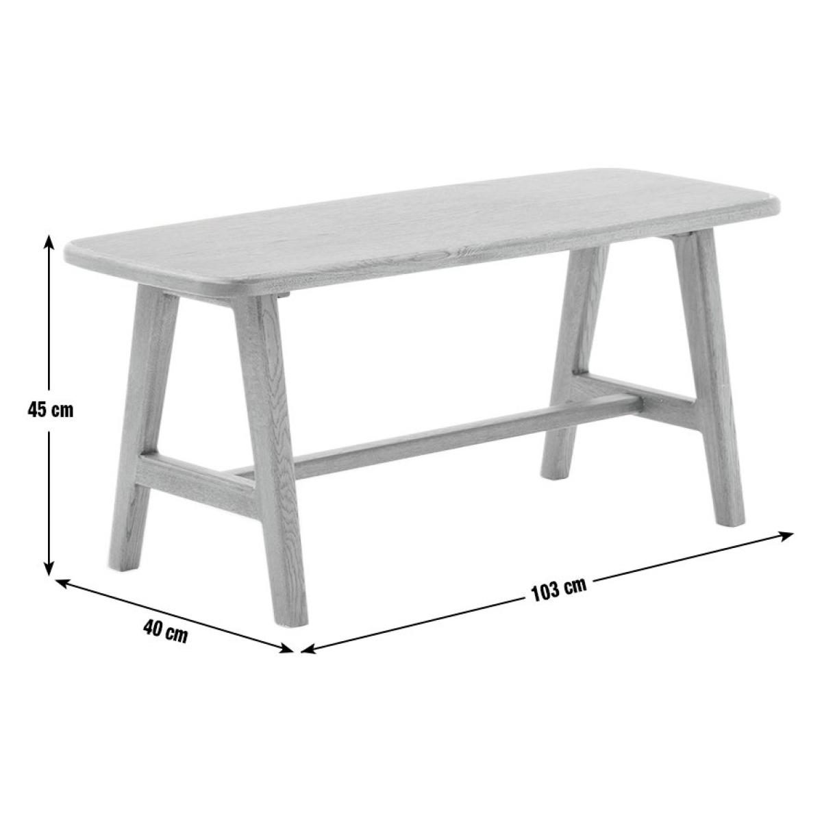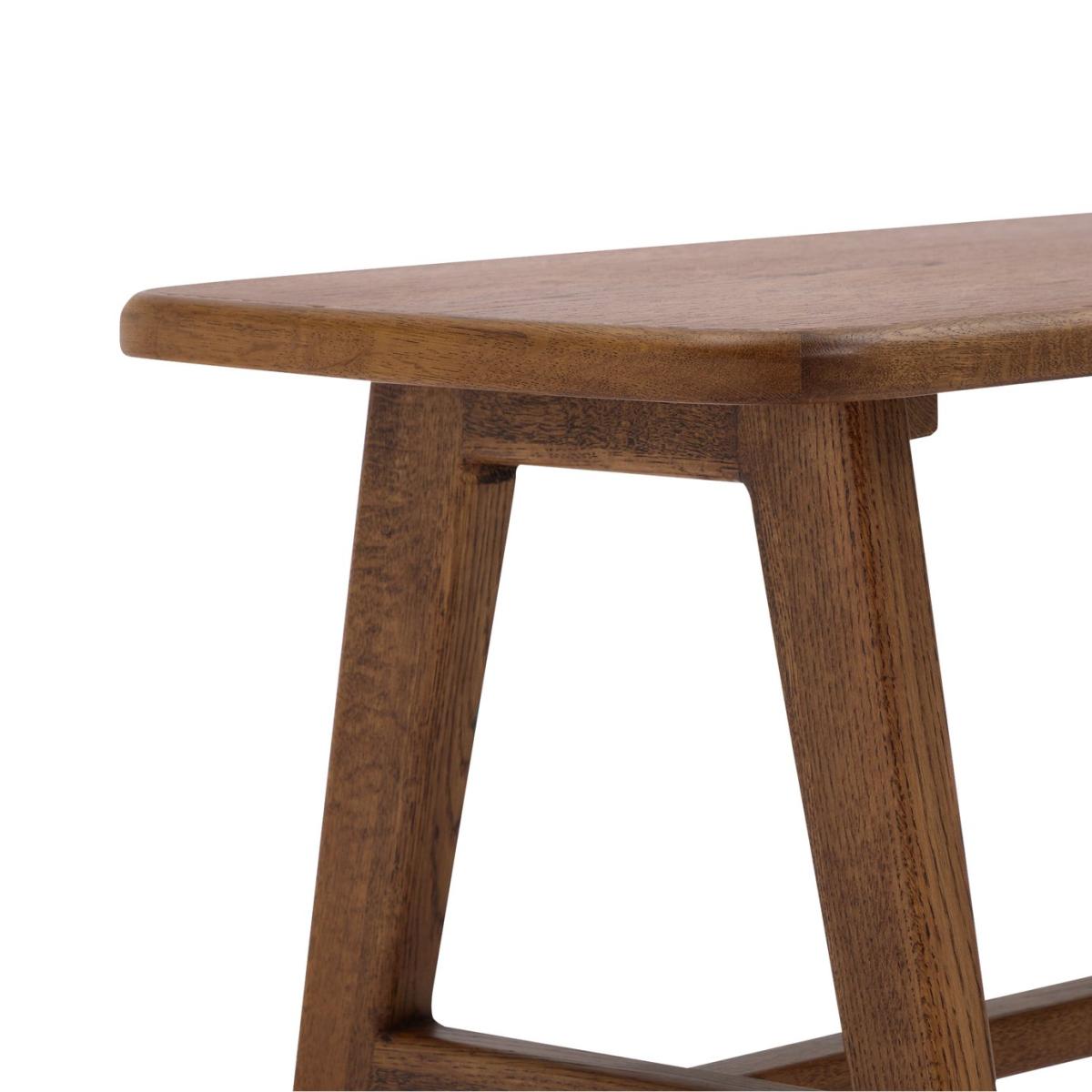 Make a solid statement with this mid-century modern bench. Crafted from oak, this simply stylish seating has softly rounded edges, gently splayed legs and a central cross bar. The beauty of the minimalist design is emphasised by the rich walnut finish. A contemporary classic from Habitat x Scion. We have joined forces with Scion, a British brand that joyfully mixes bold pattern and confident colour with Scandi influences. Our new exclusive Habitat x Scion collaboration combines our design team's expertise, together bringing a harmonious blend of retro aesthetics and playful energy to our furniture range. Part of the Scion collection. Chair: Size H45, W103, D40cm. Seat height 45cm. Oak legs. 1 bench. Bench made from oak frame. Wood veneer seat pad. Self-assembly - 1 person recommended. Max user weight per chair 240kg. Individual chair weight 10.6kg. Wipe clean. Package Dimensions: Chair package size: H10, W110, D51cm. General information: Manufacturer's 2 year guarantee. FSC certified meaning the materials used for this product are responsibly sourced.