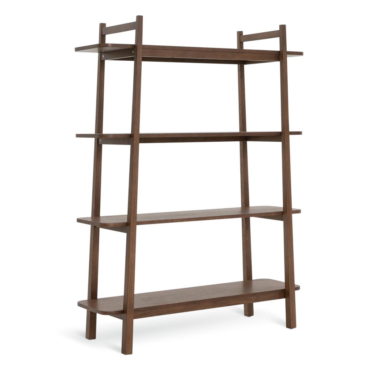 Enjoy timeless style and modern practicality. Clean lines, tapered angular form and generous proportions are the key notes of this mid-century inspired shelving unit. Designed in solid oak with a rich walnut finish that enhances the beauty of the natural grain. Each of the 4 shelves have softly rounded edges to add to its classic aesthetics. We have joined forces with Scion, a British brand that joyfully mixes bold pattern and confident colour with Scandi influences. Our new exclusive Habitat x Scion collaboration combines our design team's expertise, together bringing a harmonious blend of retro aesthetics and playful energy to our furniture range. Part of the Scion collection. Made from wood and MDF with a painted finish. 4 fixed shelves. Packed flat - 2 people recommended. If this product is over 60cm high it must be securely attached to the wall to prevent overturning (fixings included). Dimensions: Size H159, W123, D40cm. Weight 12kg. Internal shelf space: H 36.2, W 83, D 32cm. Wall fixing recommended. Package dimensions: FSC certified meaning the materials used for this product are responsibly sourced. General Information: Manufacturer's 1 year guarantee.