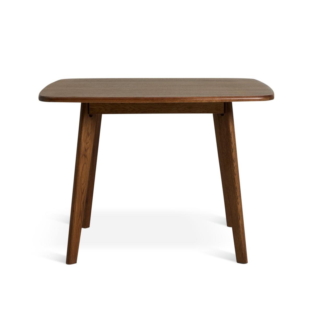 Make a solid statement with this mid-century modern dining table. Quietly impressive, the square tabletop has softly rounded edges and sits on gently splayed legs. The beauty of the minimalist design is emphasised by the rich walnut finish. We have joined forces with Scion, a British brand that joyfully mixes bold pattern and confident colour with Scandi influences. Our new exclusive Habitat x Scion collaboration combines our design team's expertise, together bringing a harmonious blend of retro aesthetics and playful energy to our furniture range. Part of the Scion collection. Table: Table size: H75, L136.5, W136.5cm. Real wood veneer table with oak legs. Wood veneer table top finish. Self-assembly - 2 people recommended. Weight of table 26.3kg. Package Dimensions: Table packaging size: H13, W115, D114cm. General information: Manufacturer's 2 year guarantee. FSC certified meaning the materials used for this product are responsibly sourced.
