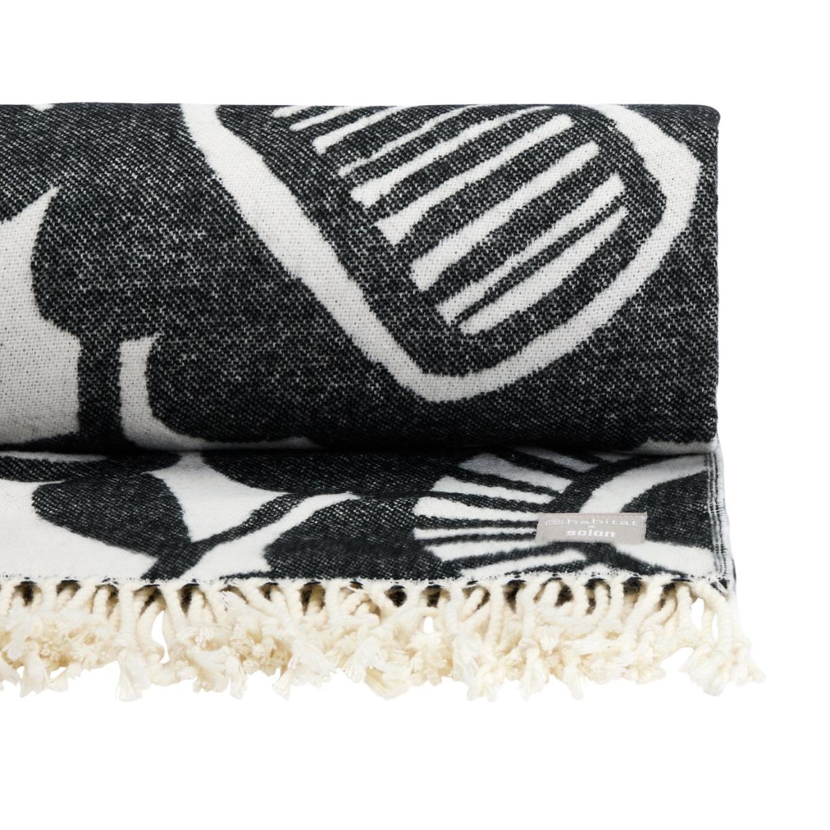 Modern maximalist monochrome. Bring some Scandi style to the room with this 100% cotton throw. The distinctive Kukkia floral pattern is beautifully impactful with a reversible design and finished with tasselled fringing. We have joined forces with Scion, a British brand that joyfully mixes bold pattern and confident colour with Scandi influences. Our new exclusive Habitat x Scion collaboration combines our design team's expertise, exploring Scion's iconic portfolio of prints, together bringing a harmonious blend of retro aesthetics and playful energy to our homewares range. Part of the Habitat x Scion collection. 100% acrylic. Size L200, W150cm. Machine washable.