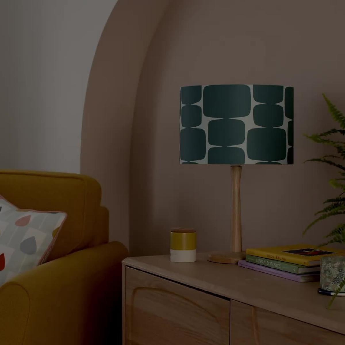Go a shade bolder. In bright teal, this shade is an easy way to showcase your retro modern roots, featuring the striking oversized boulder pattern, Lohko. Part of the Scion collection. Made from faux linen. Size H20cm, Diameter 30cm. Recommended maximum bulb wattage 15 watts. Fully assembled. Easy fit shade. Manufacturer's 1 year guarantee.