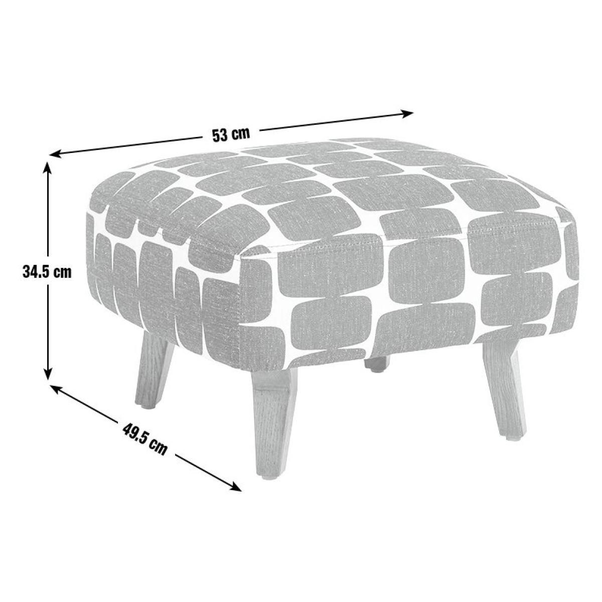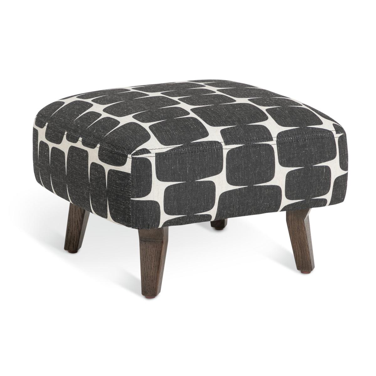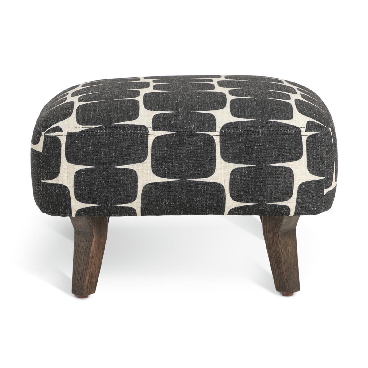 Modern maximalist monochrome. Bring some Scandi style to the room with this stylish footstool. Thoughtfully designed with the iconic Lohko print complemented with walnut legs and plush padding to ensure optimal comfort. The smart way to put your feet up and unwind. We have joined forces with Scion, a British brand that joyfully mixes bold pattern and confident colour with Scandi influences. Our new exclusive Habitat x Scion collaboration combines our design team's expertise, exploring Scion's iconic portfolio of prints, together bringing a harmonious blend of retro aesthetics and playful energy to our furniture range. Part of the Scion collection. Material: Made from 100% polyester. Wooden feet. Fixed cushion(s) with foam filling. Dimensions: Size H34.5, W53, D49.5cm. Weight: 7.3kg. General information: FSC certified meaning the materials used for this product are responsibly sourced. Wipe clean or lightly vacuum. Self-assembly - just add feet. Maximum individual user weight: 110kg. Manufacturer's 2 Year (1 year fabric) guarantee. Packaged dimensions: Package size H23, W55, D51cm.