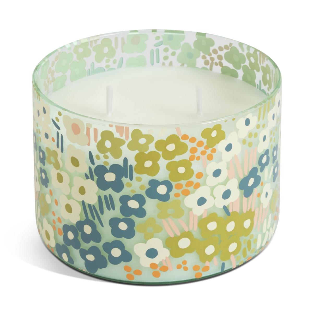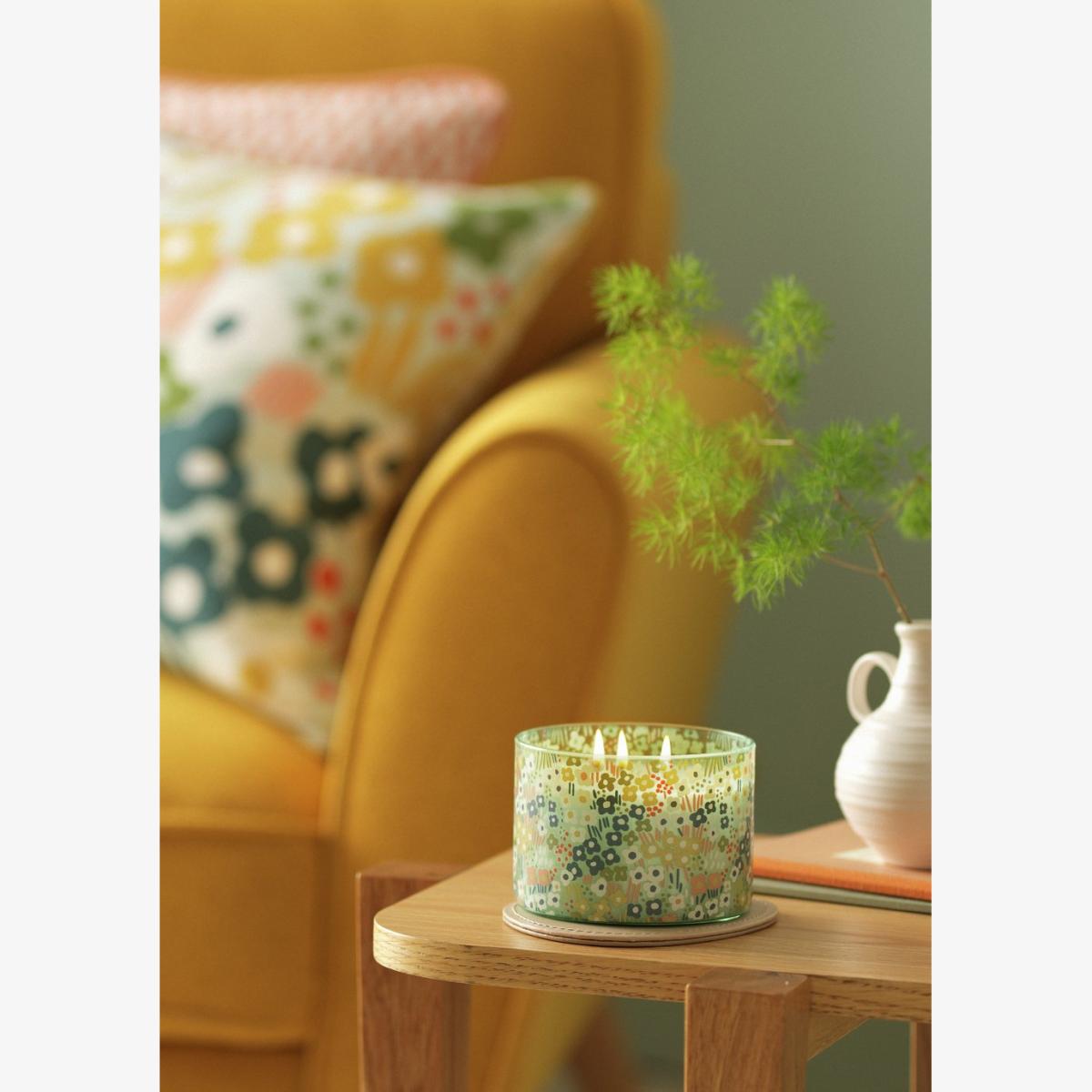 Close your eyes and imagine you're in a field of flowers. With our meadow fresh multi-wick candle, we've created an uplifting fragrance that brings the scents of the outdoors in. The heady notes of hyacinth blend with the soft woody notes of white birch. All in a mellow meadow floral glass holder. Joyful in every sense. This scented candle is part of the Habitat x Scion collection. Hyacinth & White Birch scent. Approximate burn time 26 hours. Size H7.2, W10, D10cm. Diameter 10cm. Scion.