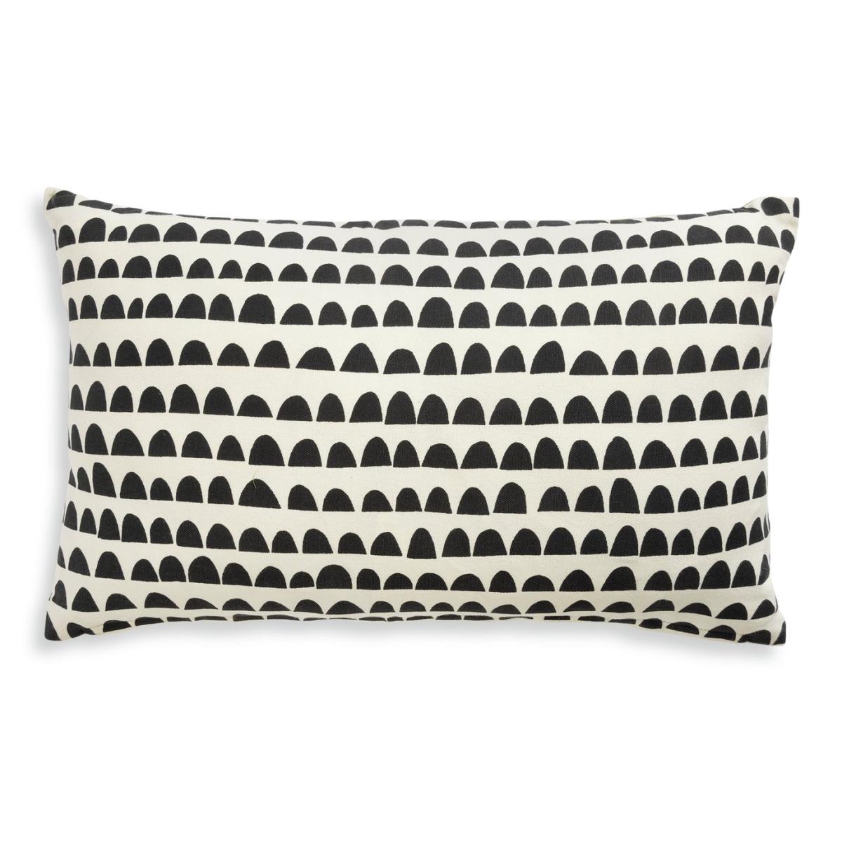 Snuggle up with Mr Fox. Put this pair of rectangular cushions together to enjoy the full foxy picture. This iconic character looks outstanding embroidered in white boucle against a green cotton background. Fancy a change? There's a modern monochrome half-moon print on the reverse of these zip off, washable covers. Undoubtedly a doubly witty design to decorate your den. Fully sewn and stuffed cushion. Zip fastening. Cover 100% Cotton. Filling 100% Recycled Polyester. Size L60, W30cm. This cover is machine washable covers. Suitable for tumble drying. Part of the Scion collection.