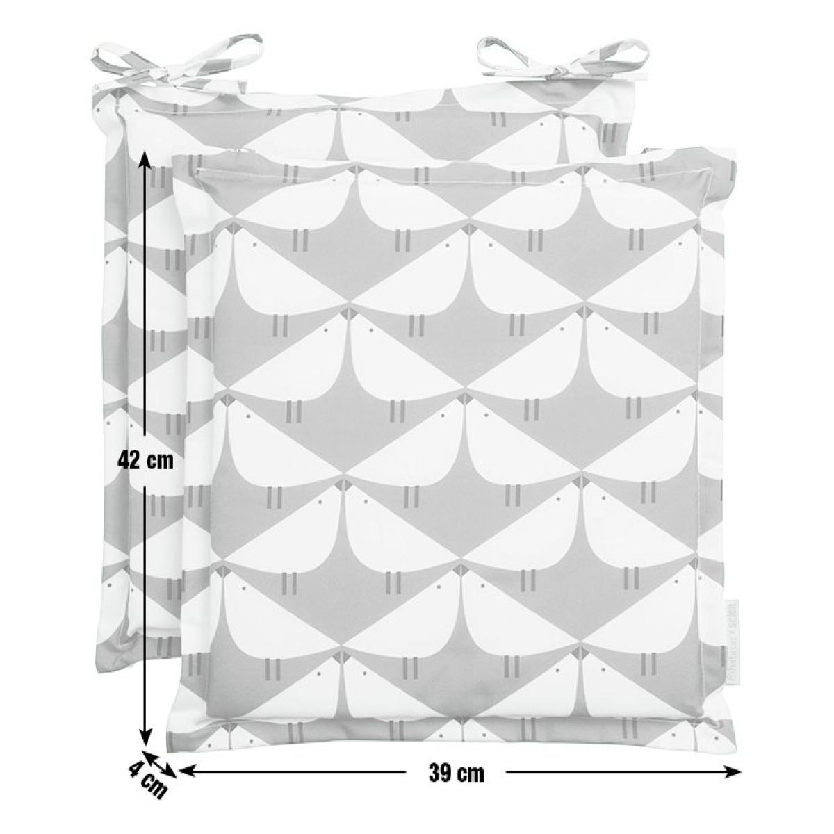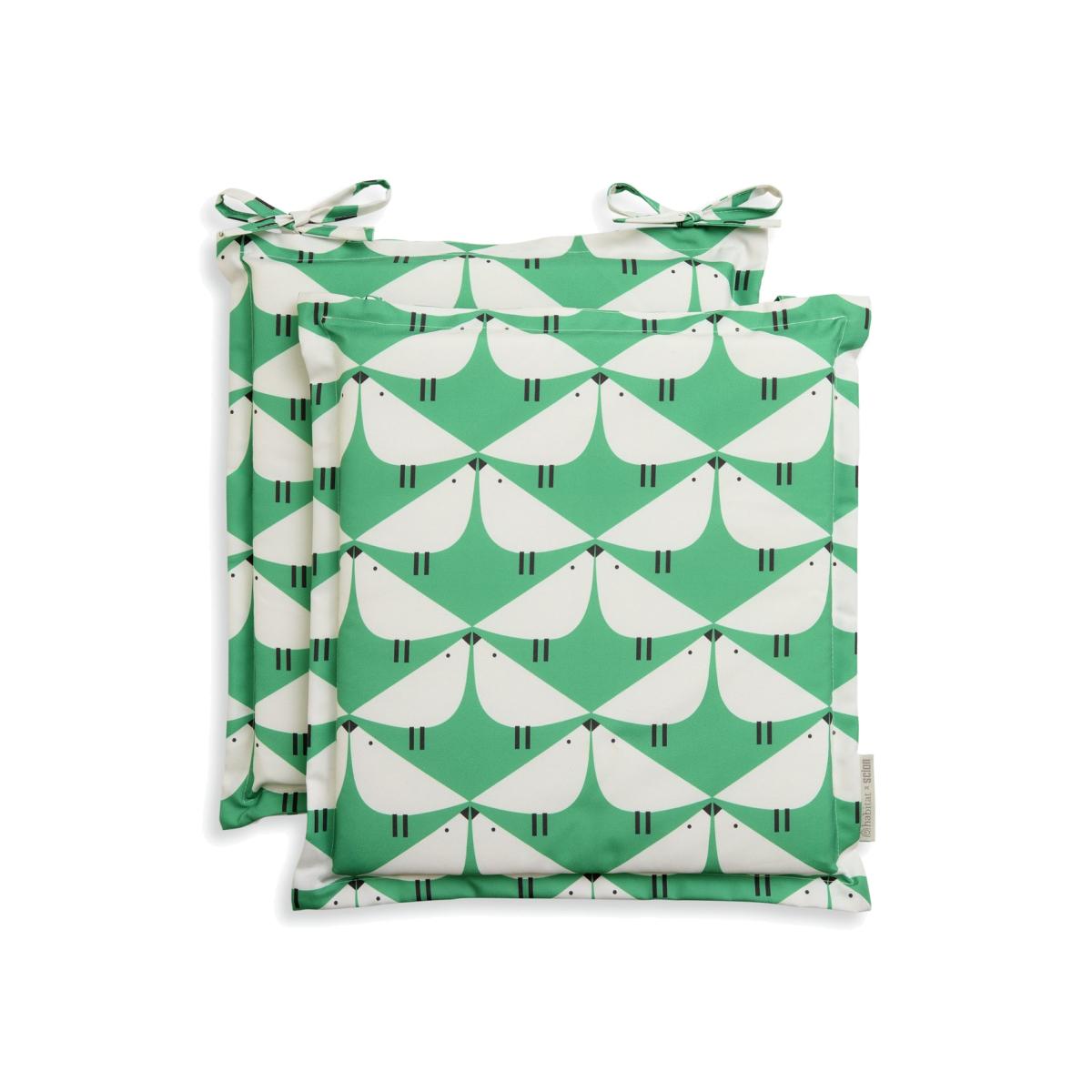 Vibrant and playful. Our bright seat cushions with ties feature the Lintu bird print in fresh green. With a shower proof canvas cover, they are simple to wipe clean. Part of the Scion collection. Includes ties. Not machine washable wipe clean only. 100% polyester. 100% polyester filling. Size L42, W39, D4cm. Manufacturer's 1 year guarantee. Store inside when not in use.