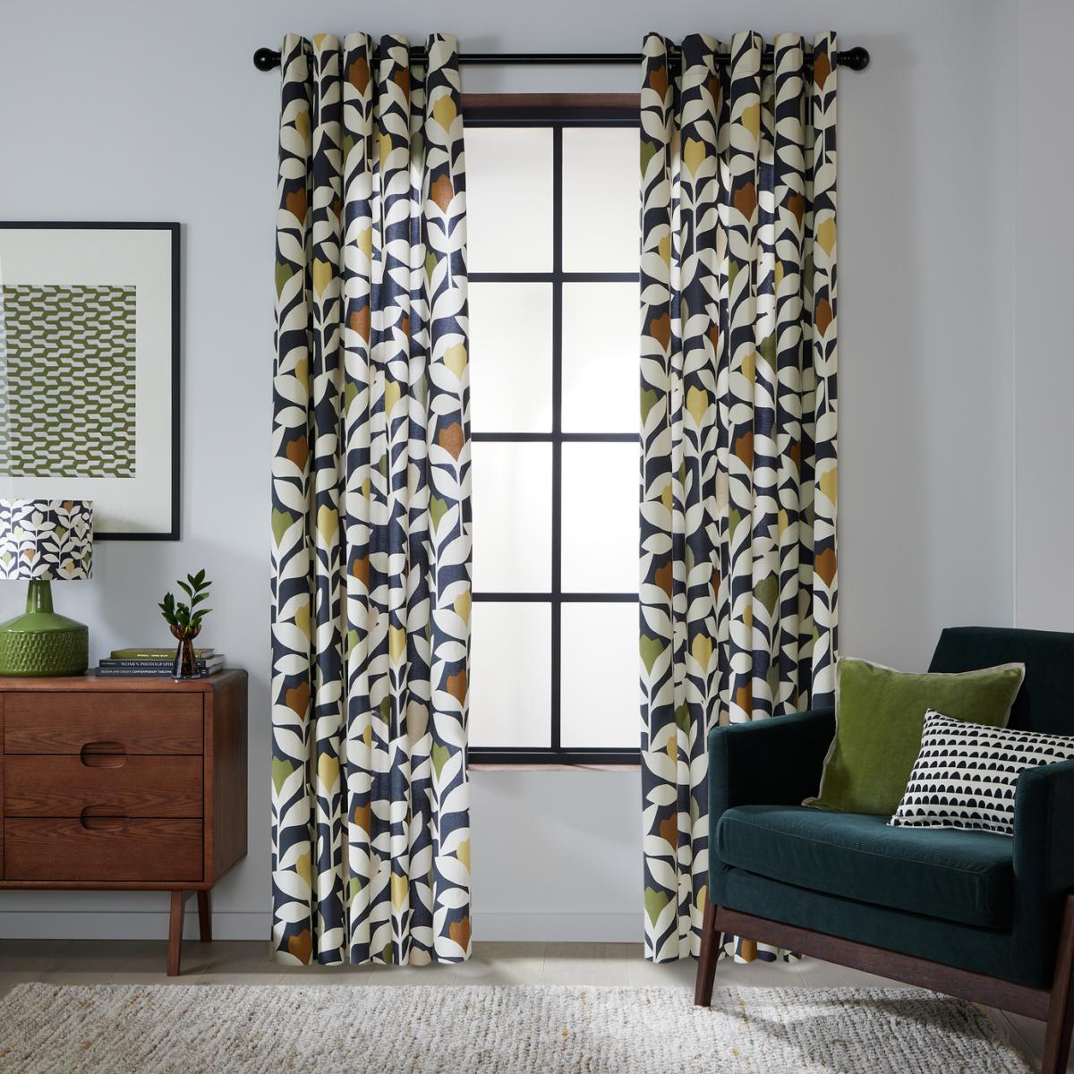 Soothing yet subtle, these muted eyelet curtains are an easy way to showcase your retro-modern roots. Warm and inviting. Lined and luxe. Made from cotton, the half Panama weave gives extra richness to the striking floral layered stem pattern of Padukka. These curtains are a great pair to hang out with. Part of the exclusive Habitat x Scion collection. Multicoloured. Brass Eyelet Stainless Steel Eyelets. Features Fully lined. Made from 100% cotton. Lining made from 50% cotton and 50% polyester. Dimensions Size 117cm (46 inches) wide by 137cm (54 inches) drop. Eyelet diameter: 4cm. General information Contains one pair of curtains. Number of eyelets per curtain: 8. Suitable for curtain poles. Curtain pole not included. Machine washable.