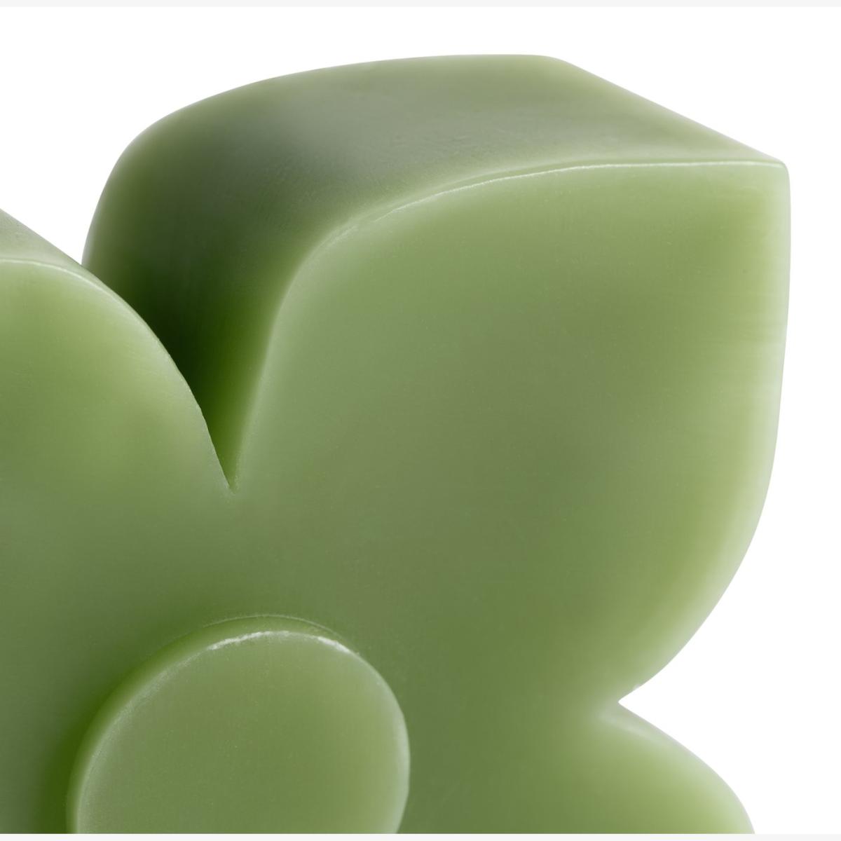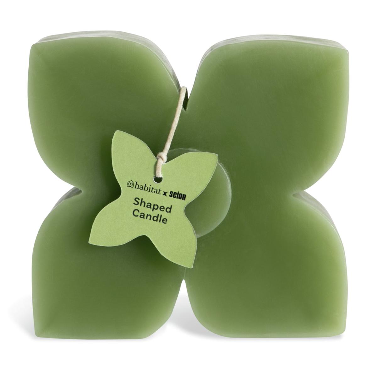 Set the scene with this designer shaped candle. Taking centre stage, this green wax candle showcases the Scion Prairie pattern. A fashionable way to bring an atmospheric ambience to a room. We have joined forces with Scion, a British brand that joyfully mixes bold pattern and confident colour with Scandi influences. Our new exclusive Habitat x Scion collaboration combines our design team's expertise, exploring Scion's iconic portfolio of prints, together bringing a harmonious blend of retro aesthetics and playful energy to our homewares range. Part of the Habitat x Scion collection. Oak & Geranium scent. Paraffin wax. Approximate burn time 15 hours. Size H14, Diameter 6cm.
