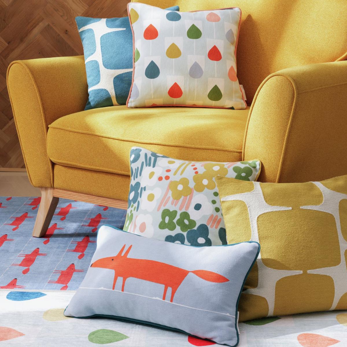 I really like this Habitat x Scion cushion for its playful yet sophisticated pattern and vibrant colours. It works well in contemporary or eclectic interiors, adding a touch of colour and visual interest to neutral sofas or armchairs. Its 43x43cm size makes it versatile for layering with other cushions or using as a standalone accent piece. Practical styling tips include pairing it with muted tones or more subdued cushions to let the pattern stand out, or blending it into a colourful scheme for a lively, cohesive look. Its cheerful design can elevate a variety of spaces, from lounge areas to bedrooms, making it a practical and stylish addition.