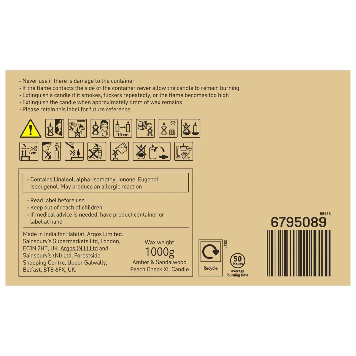 Habitat XL Checkered Candle - Amber and Sandalwood