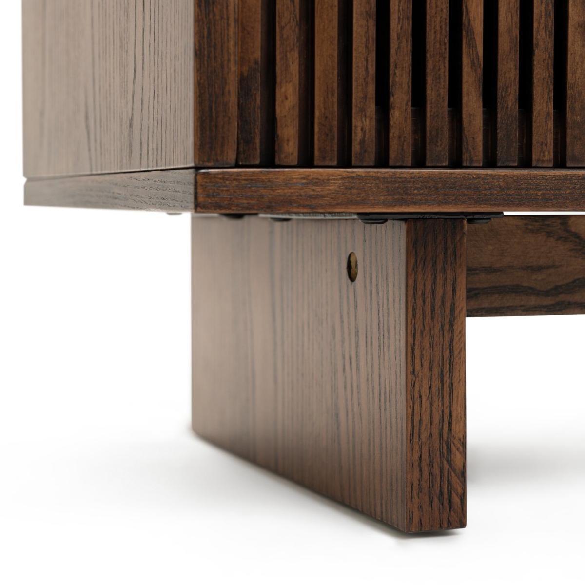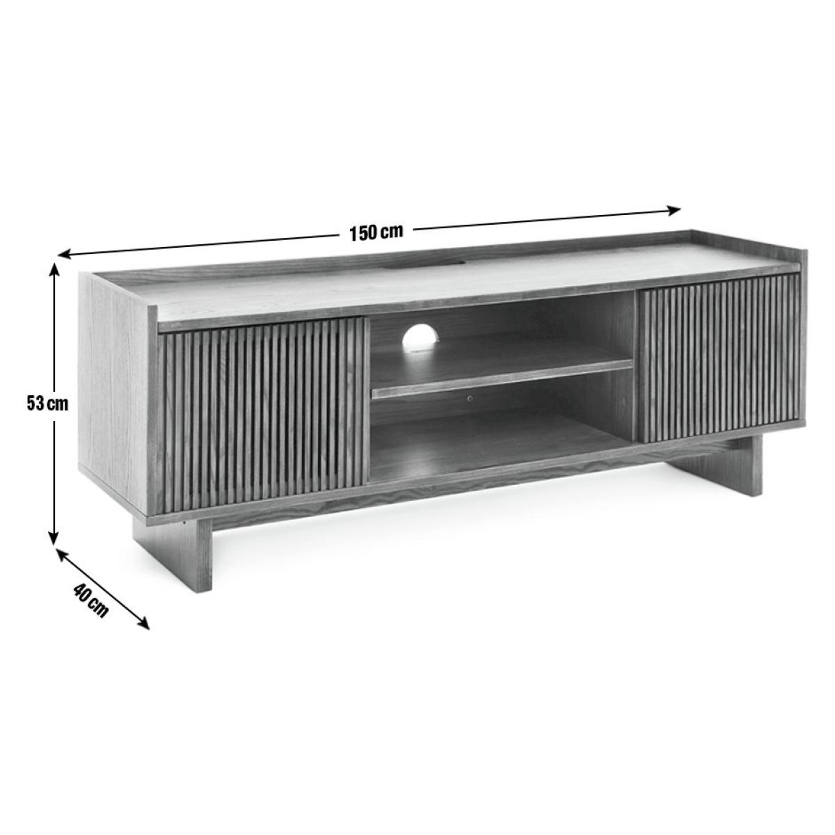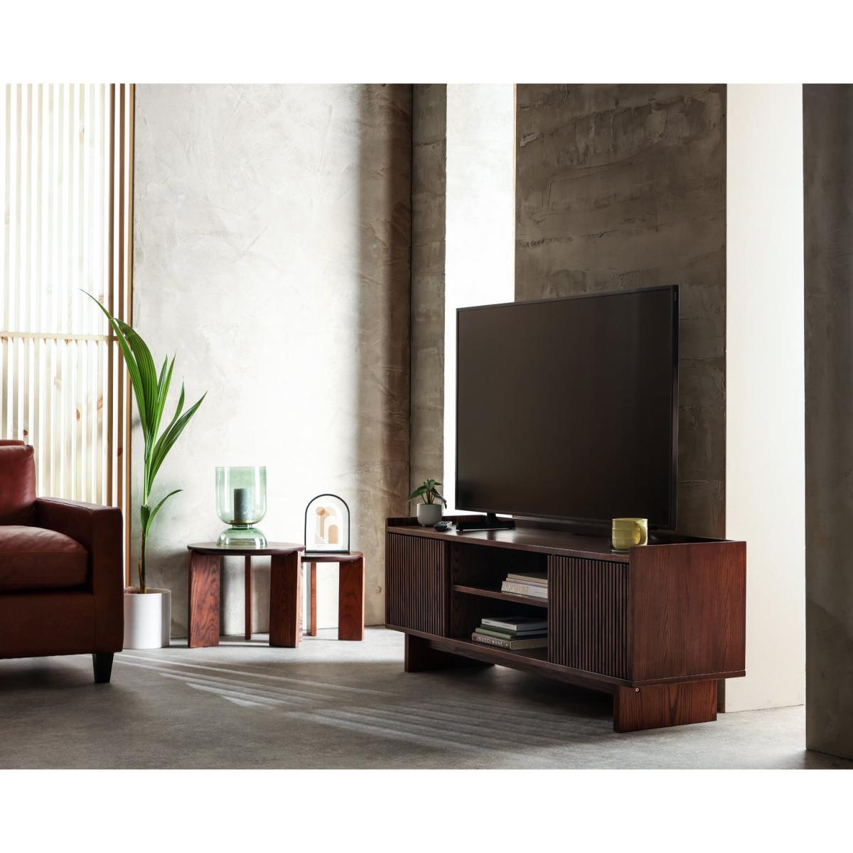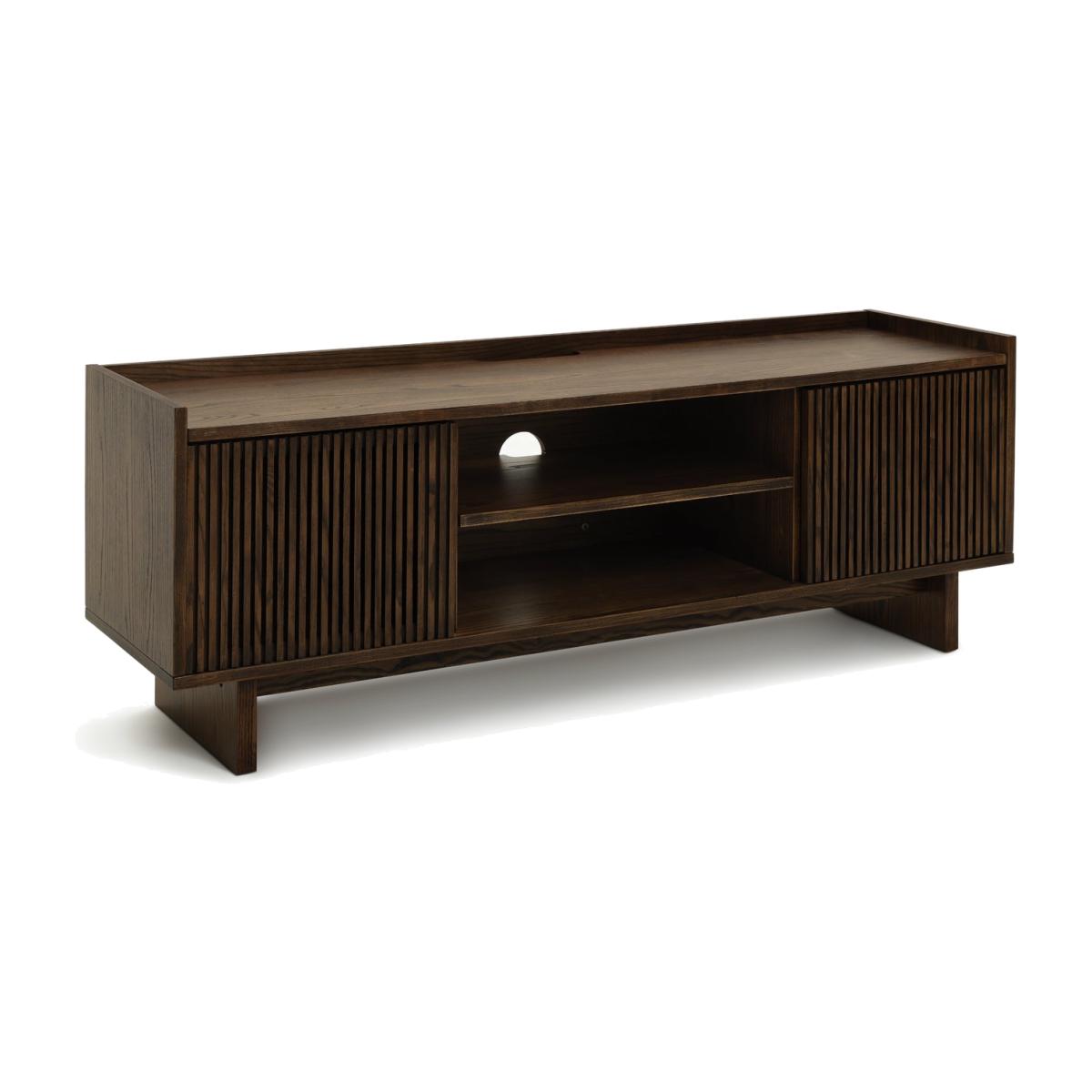 Our Xylo TV unit looks good even when the screen is off. A touch retro with a walnut stained ash veneer and vertical ridged detailing. It brings the snug feel of rich dark wood to your home. Perfectly practical with 2 doors and plenty of space for all your media gadgets. Put your feet up. Admire your own good taste and switch on the entertainment.