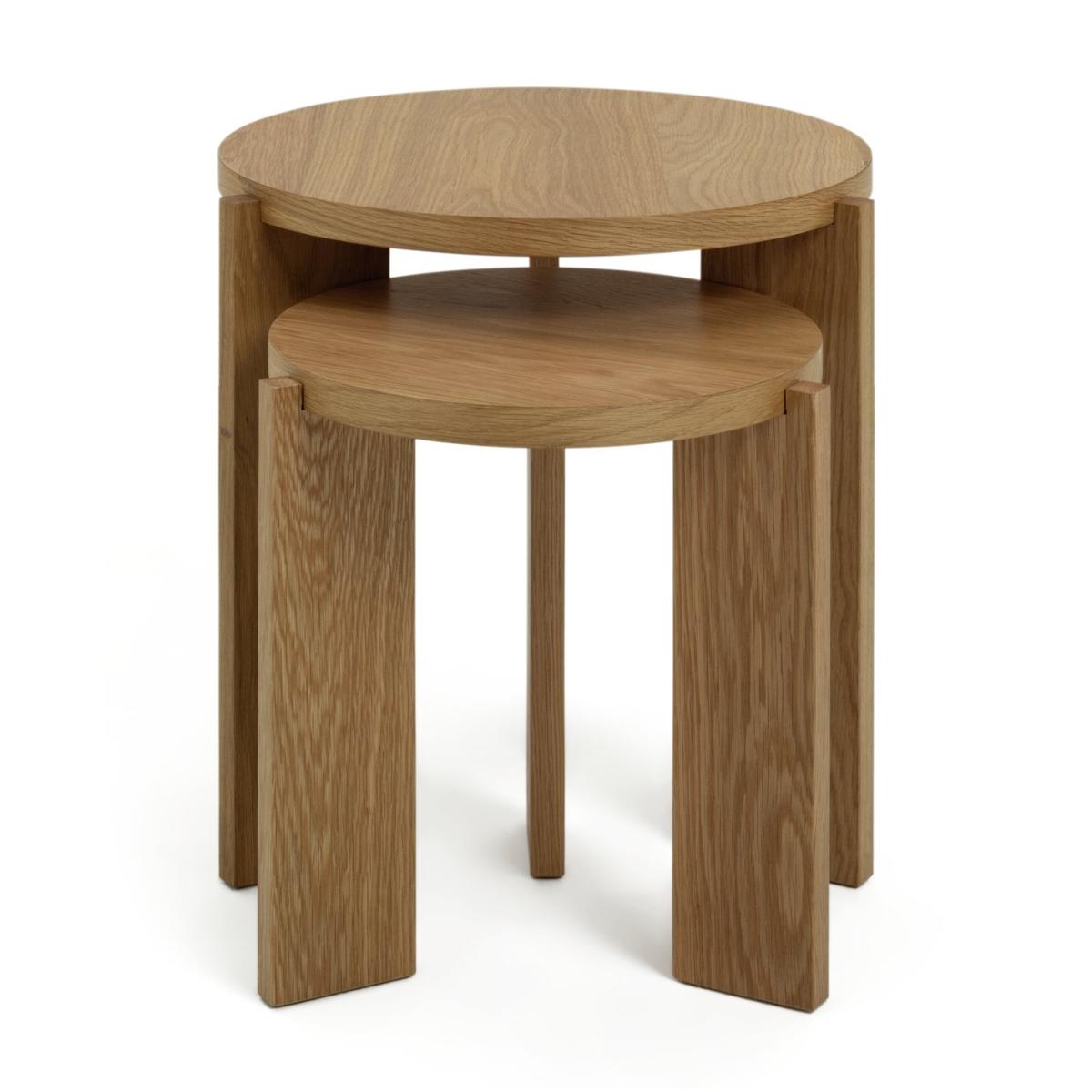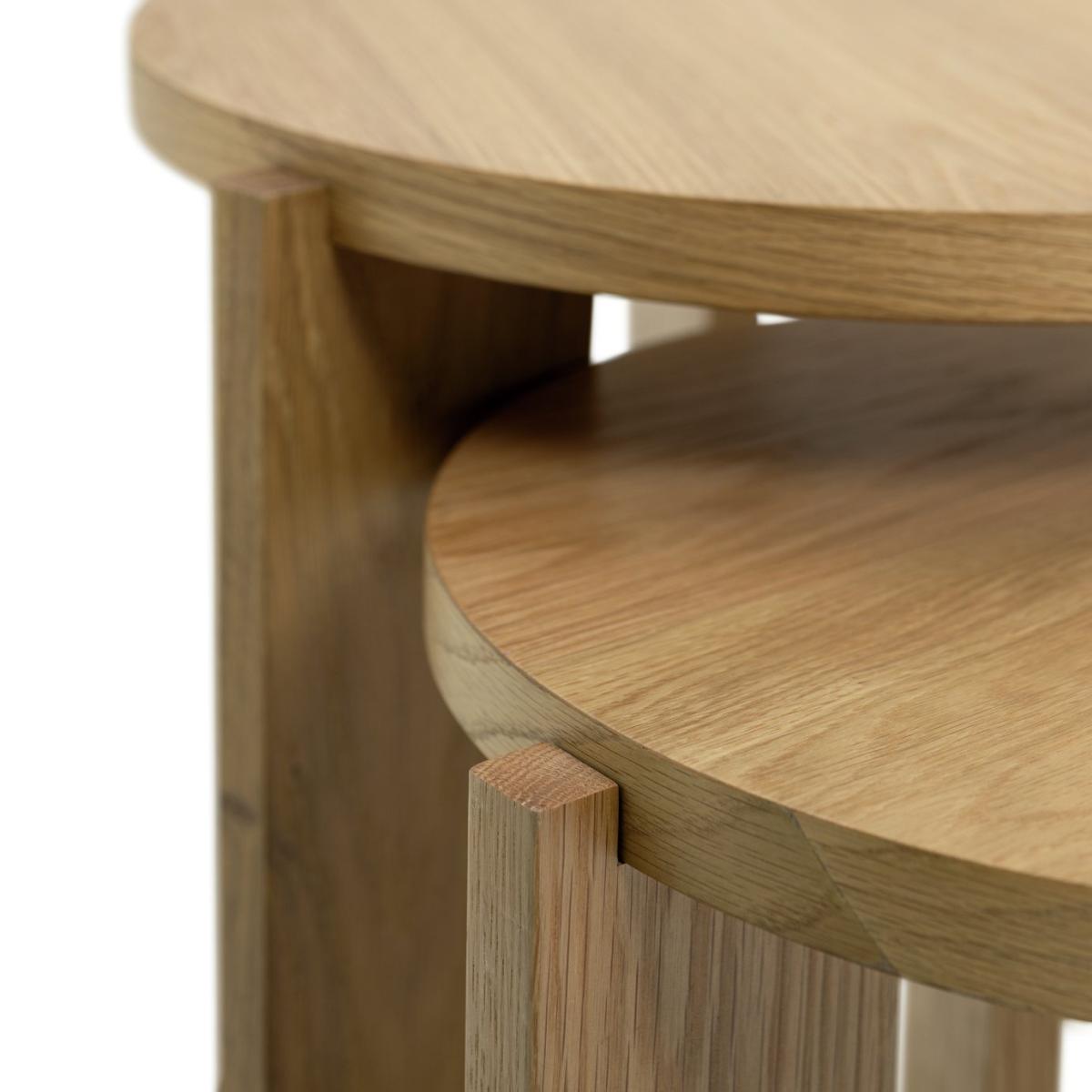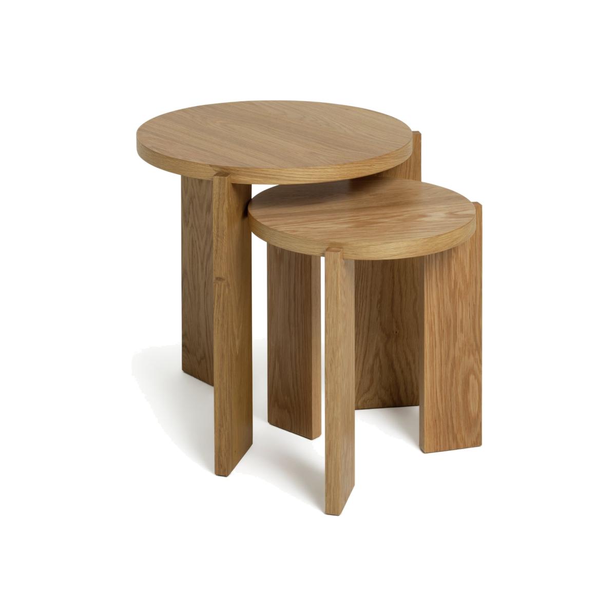 Our Xylo nesting tables are made to show off the fantastic wood grain of their oak veneer. We love this style where retro meets modern, wide legs, bevelled top and a matt varnish. Light, subtle and very homely. Plus so practical to nest, and great to show off side by side. Just add an organic ceramic and wait for the compliments to flow.