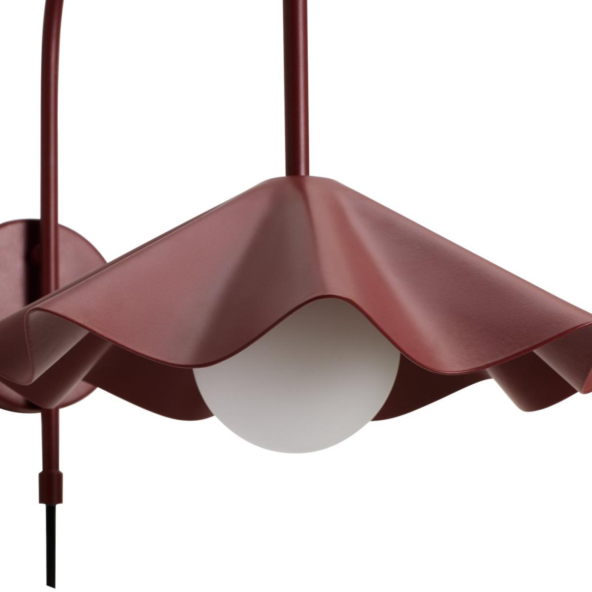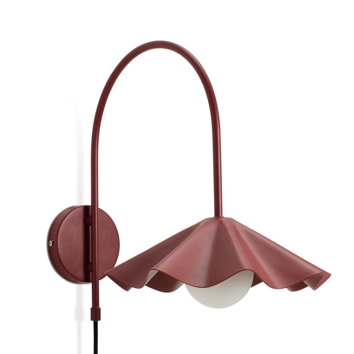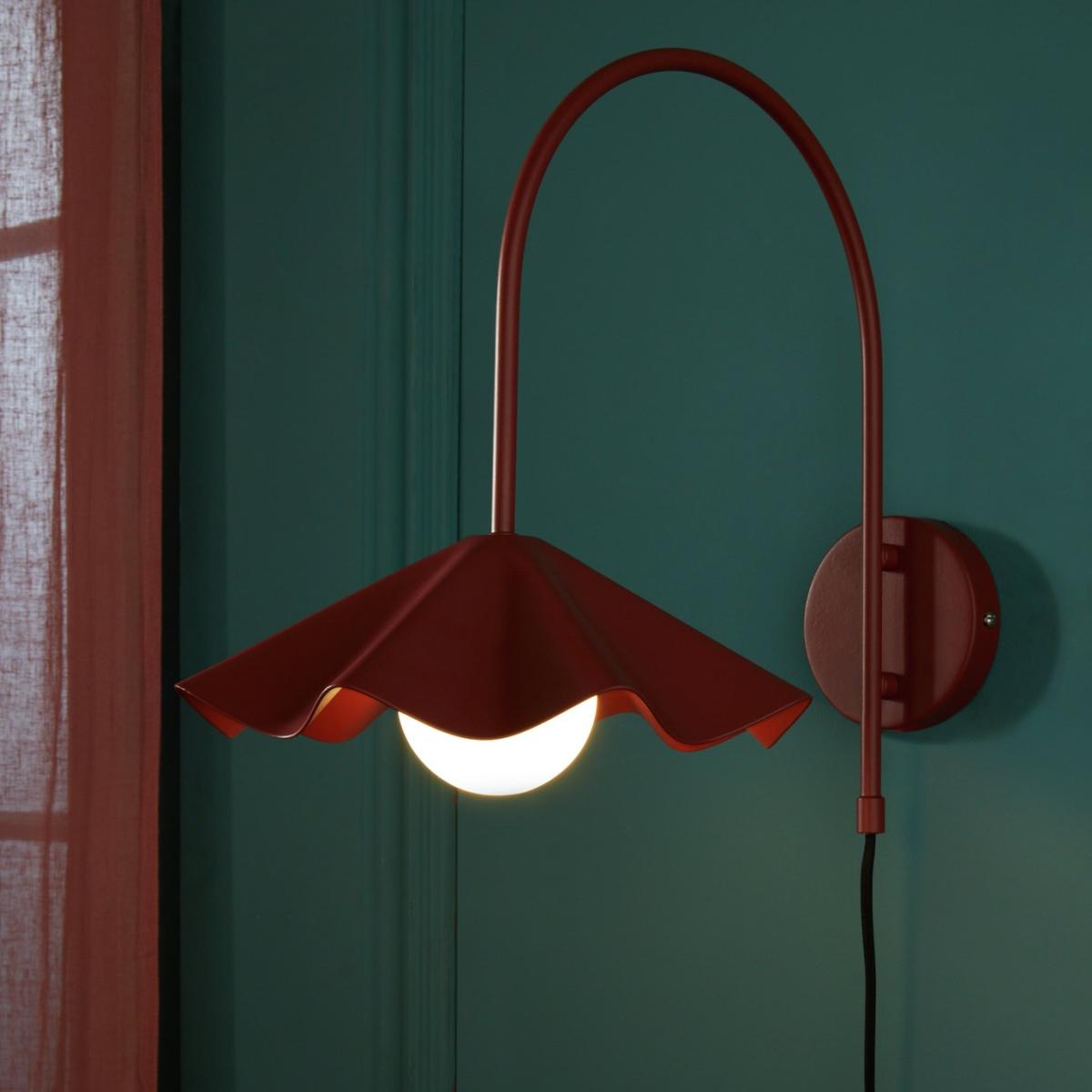 Inspired by the revival of nostalgic 70's decor, the coned silhouette of the Yuno wall lamp, with it's metal scalloped shade and deep red finish, adds texture and drama to your home. An opaque glass orb covers the bulb for a diffused yet directional lighting affect. And the geometric arch of it's slim line neck completes the refined aesthetic. Delicately elegant. Dimensions: Size H33.8, W40.6, D26.5cm. Diameter 26.5cm. None adjustable drop. Bulb Information: Bulbs required 1 x classic capsule G9 LED (included). Recommended maximum wattage: 5 watts. Can not be used with a dimmer switch. LED bulb only. General Information: 100% metal. - not suitable for bathroom use. Weight: 1.8kg. Minimal assembly. Product is mains powered plug in. This lighting product is a class 2 fitting. Manufacturer's 1 year guarantee.