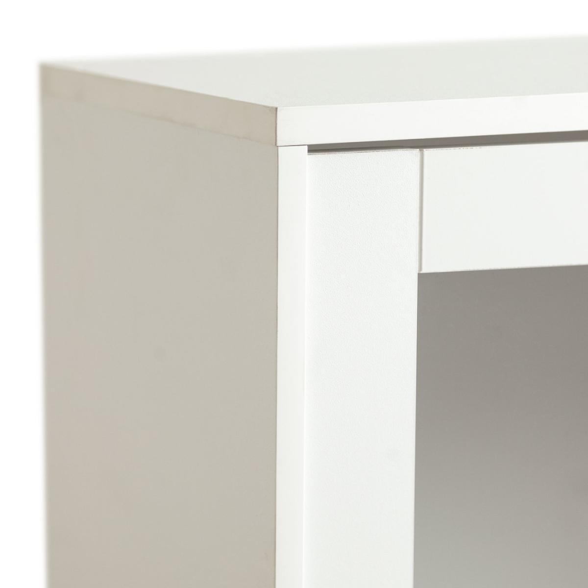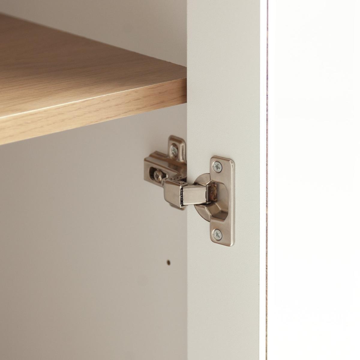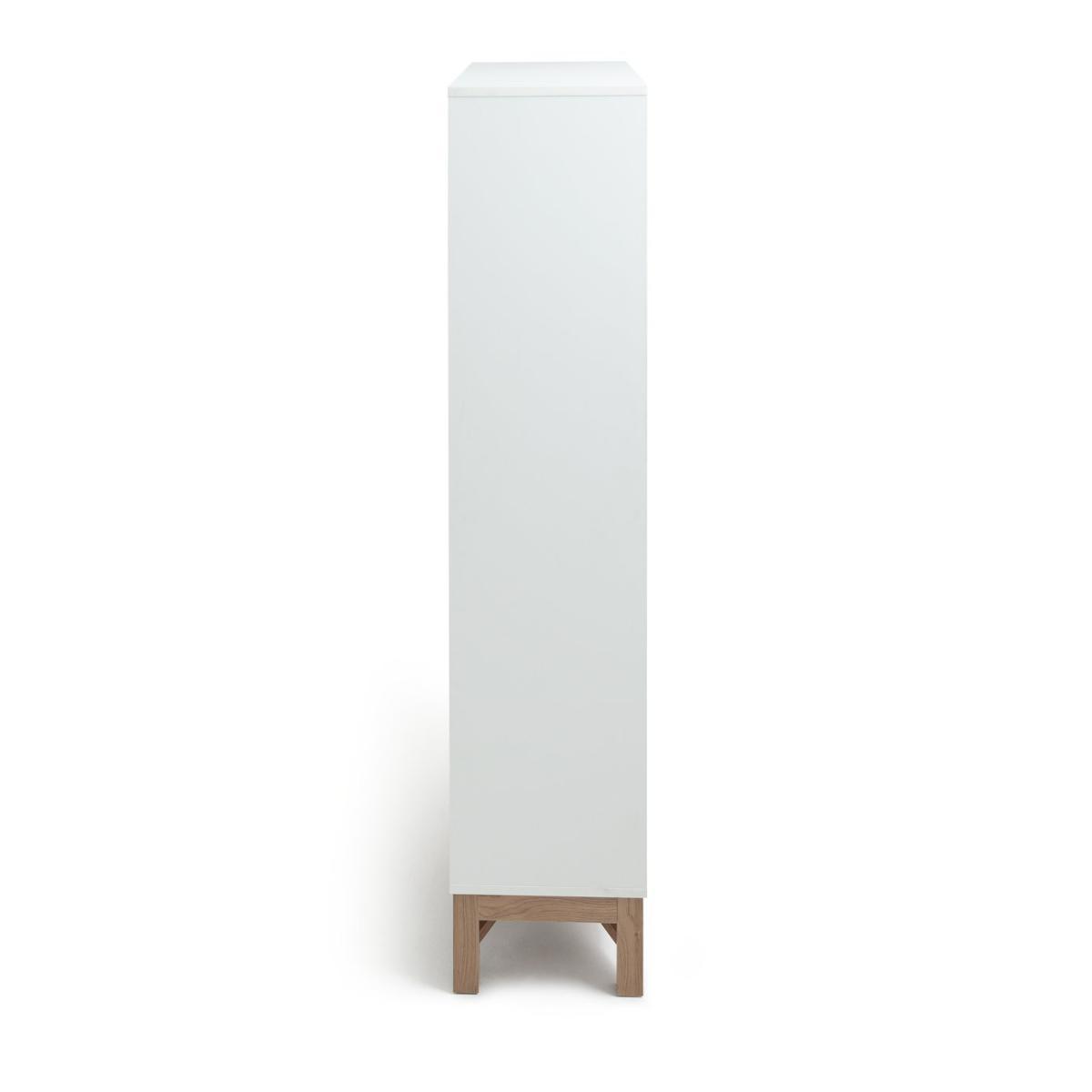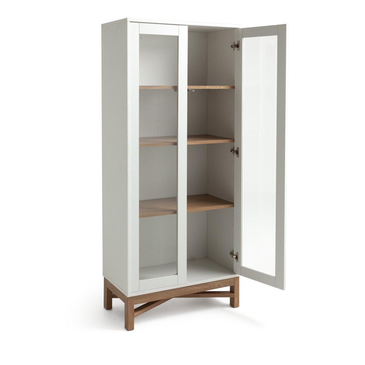 Go for a contemporary look with the Habitat Zander collection. This 2-door glass cabinet, with its white finish and contrasting oak-effect legs, makes a quirky, stand-out piece. It has 1 fixed and 2 adjustable shelves inside, so you can store games and books, to ornaments and glassware. With pristine glass doors, you can show off your favourite collections. It'll keep them dust-free and safe from curious pets or children. Each cupboard features push-to-open doors for a flush, handle-less look. A delightful display.