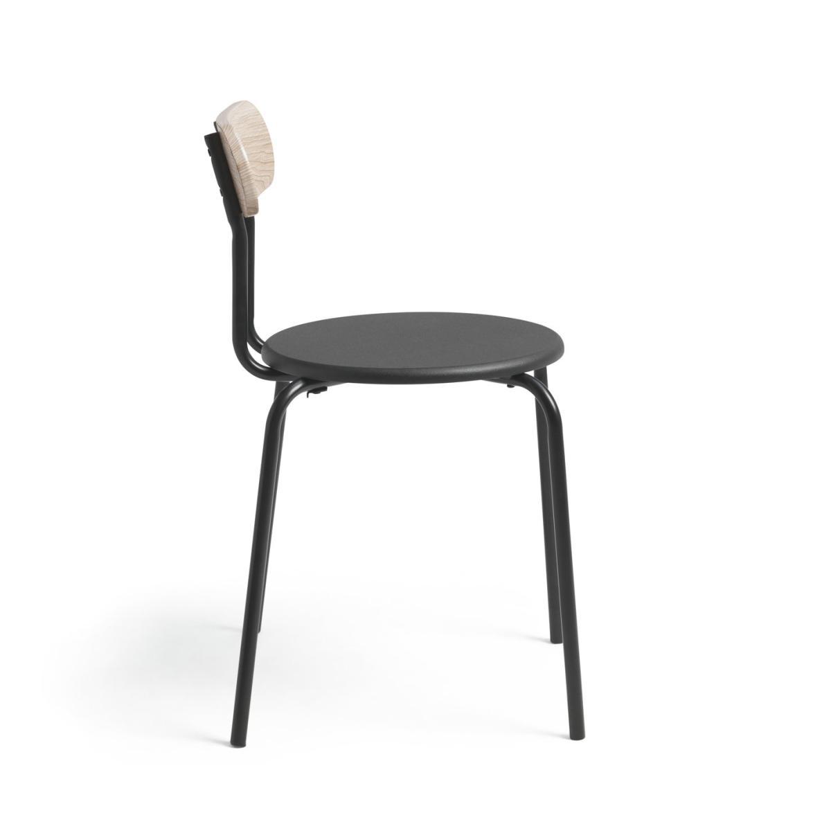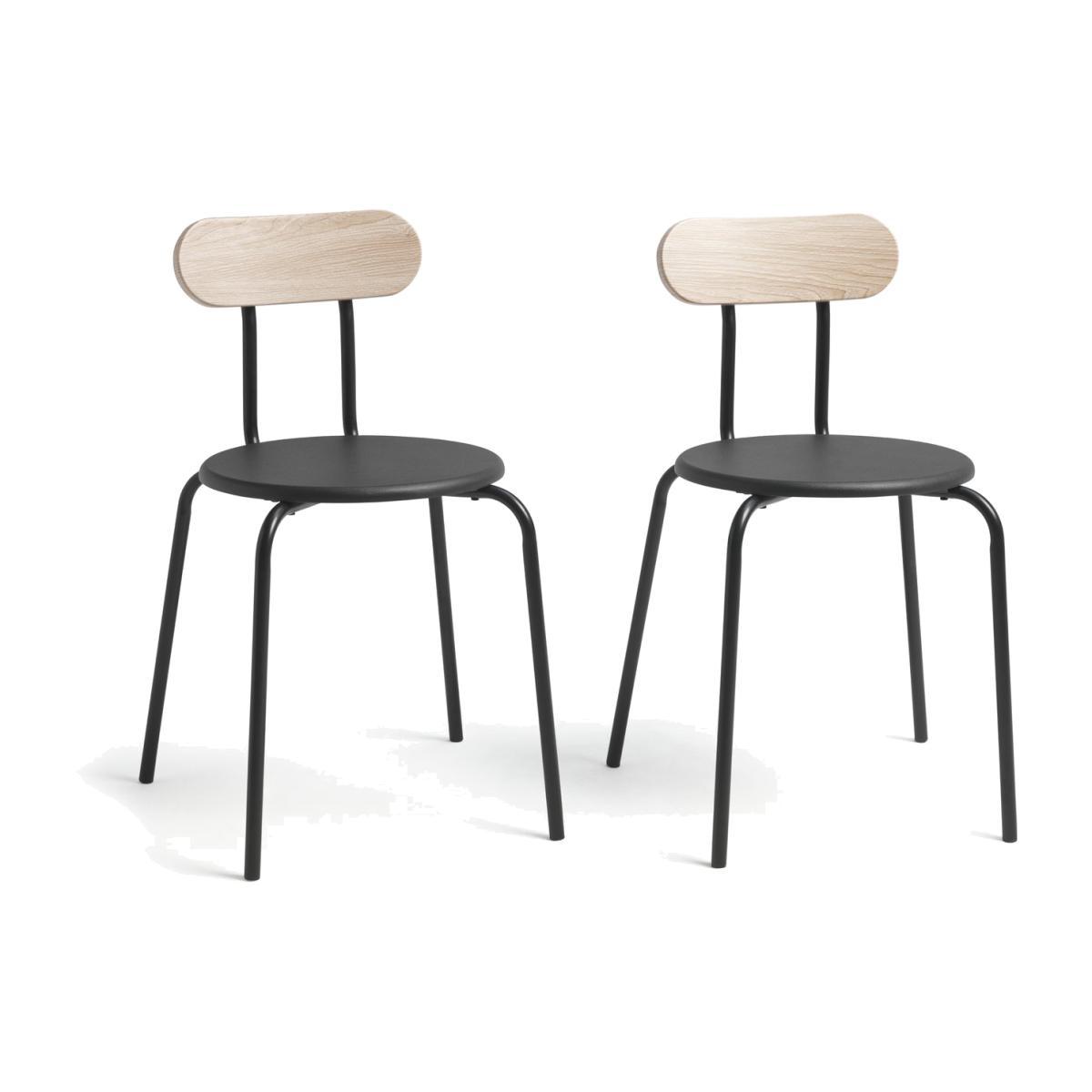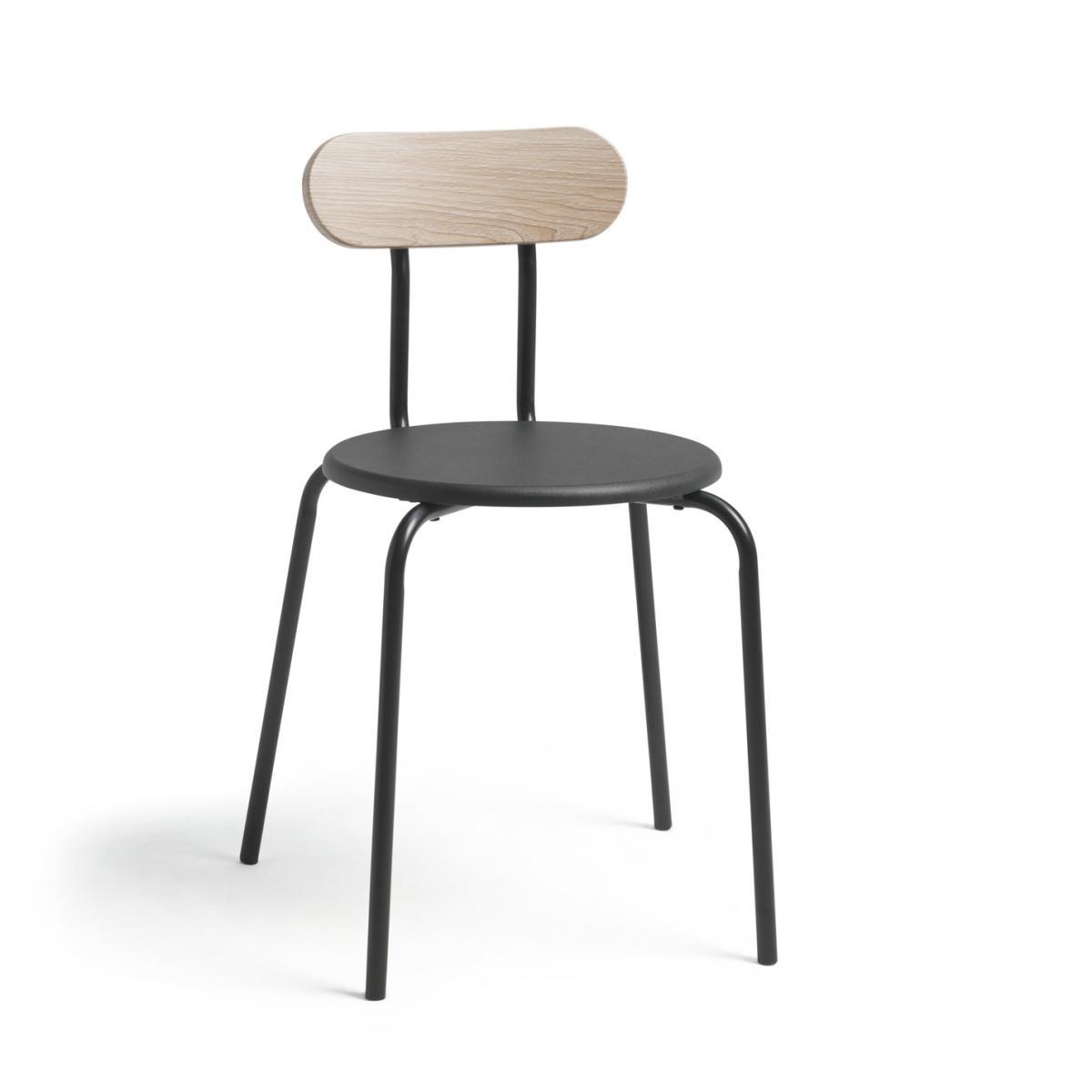 An utterly modern duo. Contemporary and chic, that's this pair of sleek metal dining chairs. The black seats and frames combine with light wood effect back rests to rock the industrial trend. Place them with a like-minded table and tuck in. Simply striking.