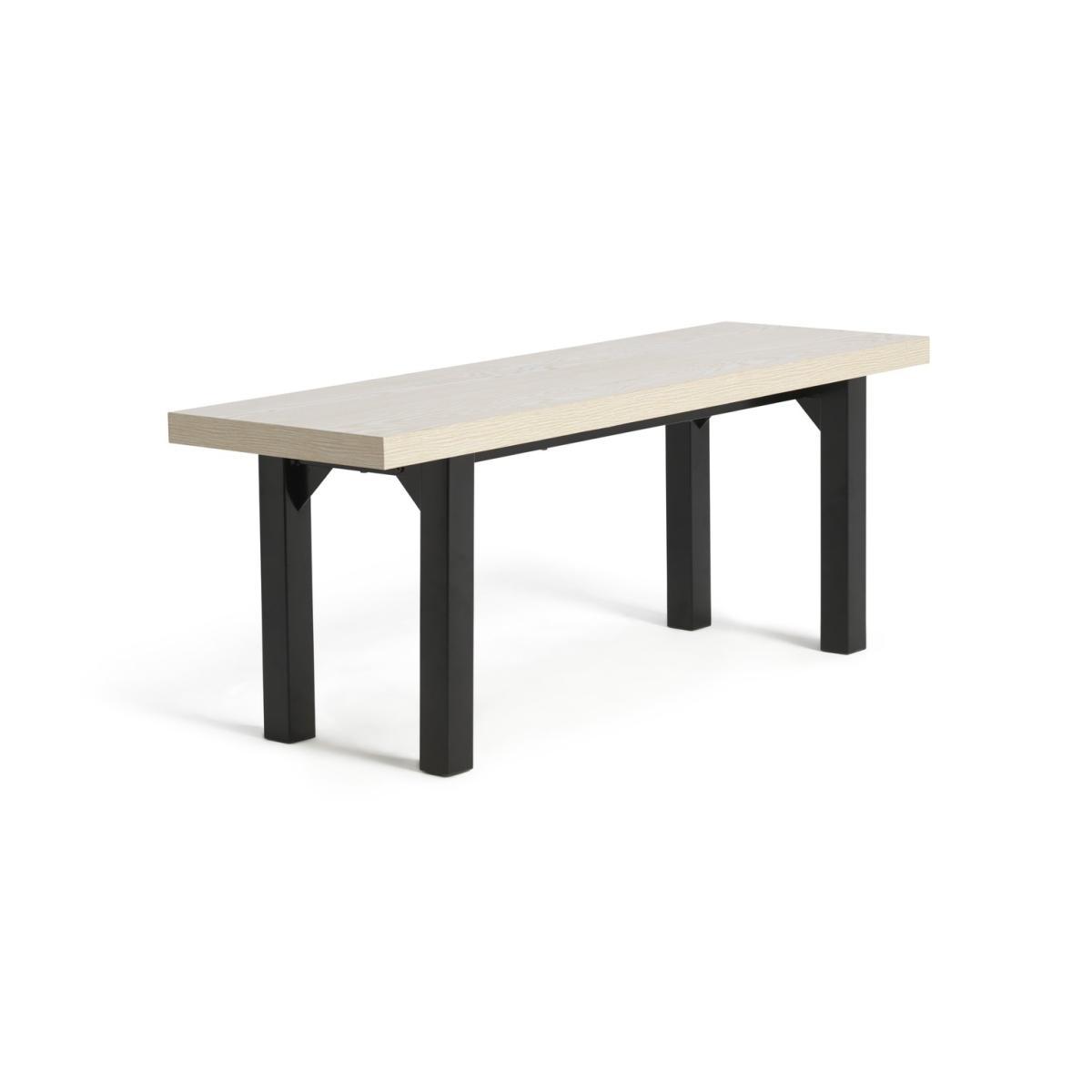 Modern mealtimes coming right up. This dining table and pair of benches are slim, smart and space-saving. A combination of black and natural woodgrain effect offers up an industrial feel. And with space for 4, it makes for relaxing dining. Need some extra room? The benches tuck neatly under the table when not in use. Put a serving of simple style on the menu. Part of the Zayn collection. Table: Table size H75.5, W85, L180cm. Wood effect table with wood effect legs. Wood effect table top finish. Self-assembly - 2 people recommended. Chair: Seat height 45.5cm. Bench:Includes 2 benches. Bench size H45.5, W120, D38cm. Made from wood effect. Wood effect finish. Self-assembly. Bench weight 22.9kg. Package Dimensions: Table package 1 size H11.5, W91, D187.5cm. General information:We are excited to be welcoming some of our favourite HOME products into the Habitat range. Your product may arrive in Habitat or HOME packaging. Wipe clean with a soft cloth.
