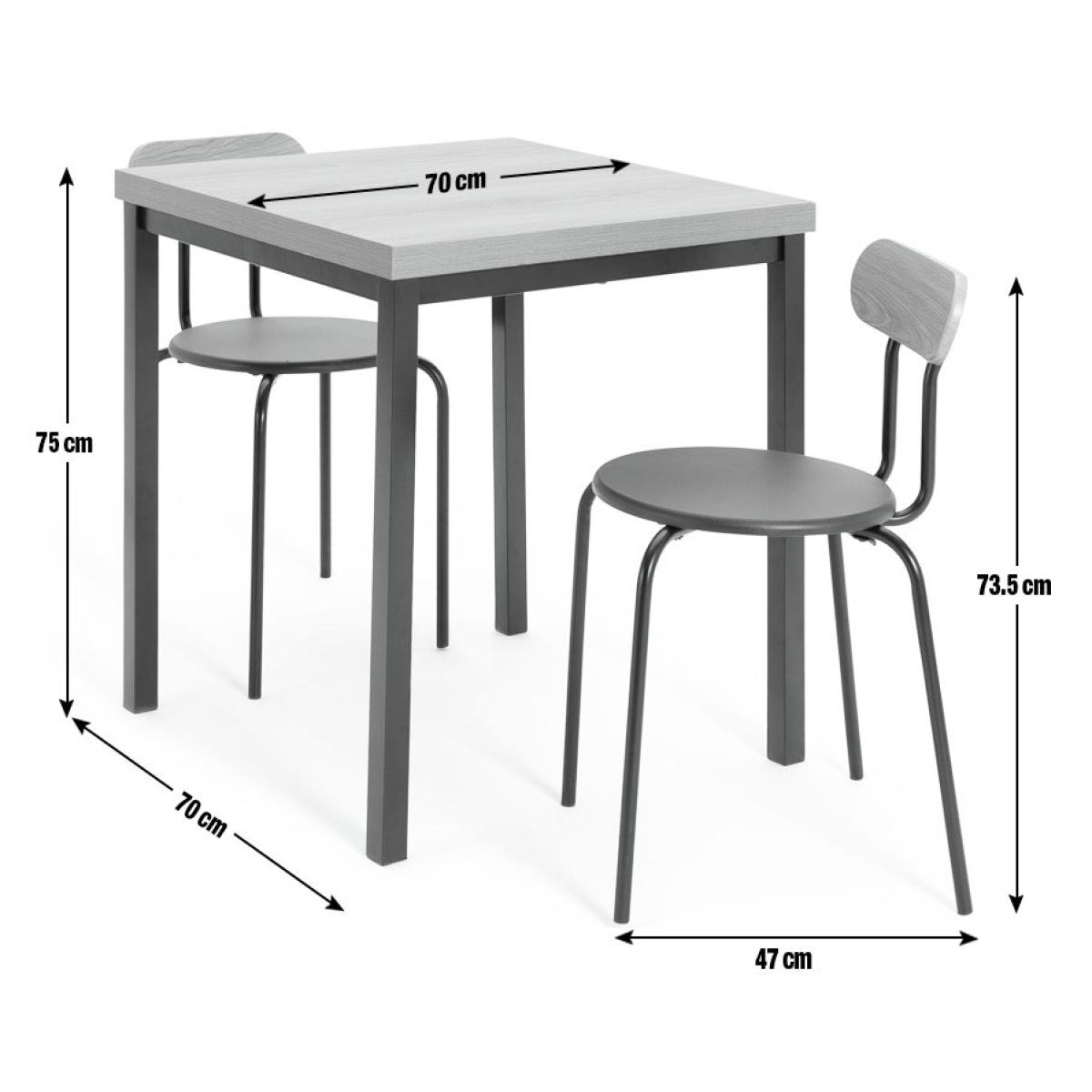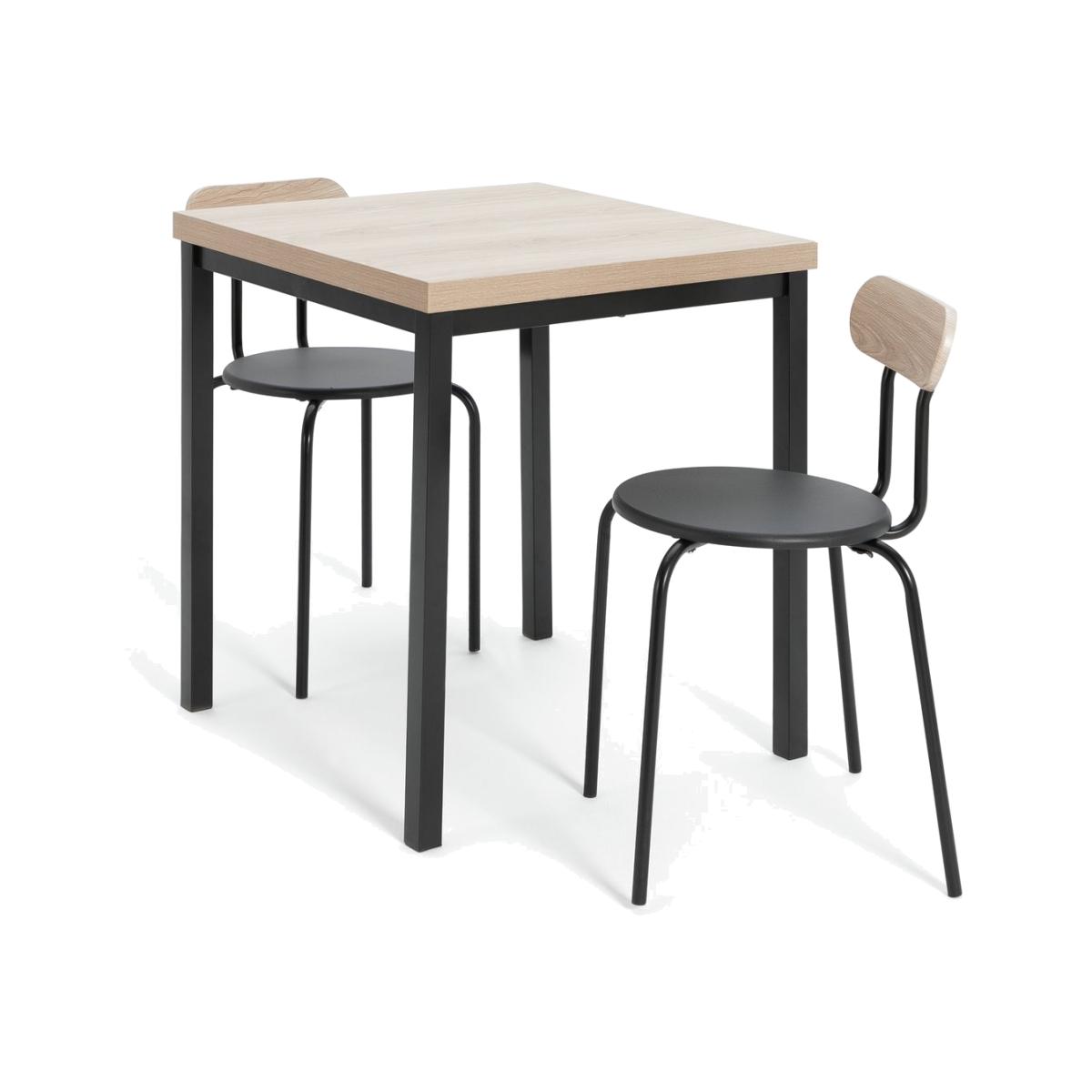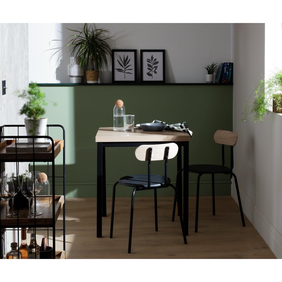 Table for two please. Sit down for a cosy meal with our 2-seater dining table set. Exclusive to Habitat, Zayn makes a subtle style statement with its clean looks and streamlined design. The rugged charm of black matte metal against pale ash woodgrain effect is as industrial as it gets. Marvelously minimal. Table: Table size H75, W70, L70cm. Wood effect table with metal legs. Wood effect table top finish. Self-assembly - 2 people recommended. Chair: Includes 2 chairs. Size of each chair H73.5, W47, D46.5cm. Seat height 45cm. Metal frame with metal legs. Wood effect seat pad. Self-assembly. Maximum user weight per chair 130kg. Individual chair weight 3.8kg. Package Dimensions: Table package 1 size H12, W76, D82cm. Individual chair package size H8, W66.5, D47cm. General information: We are excited to be welcoming some of our favourite HOME products into the Habitat range. Your product may arrive in Habitat or HOME packaging. Wipe clean with a damp cloth. FSC certified meaning the materials used for this product are responsibly sourced.
