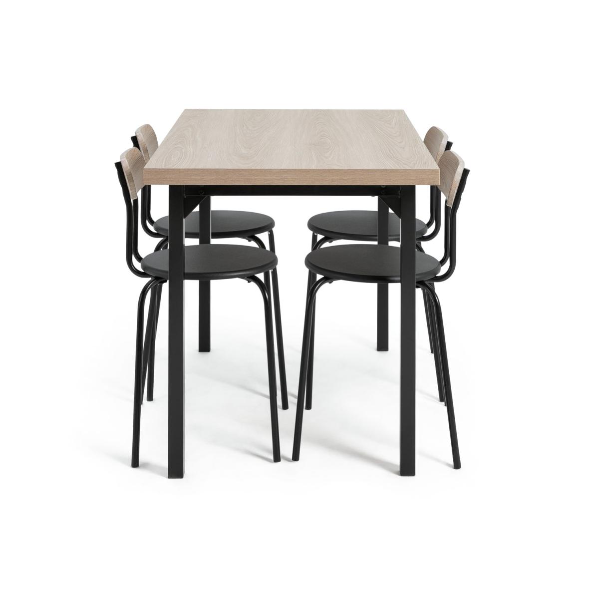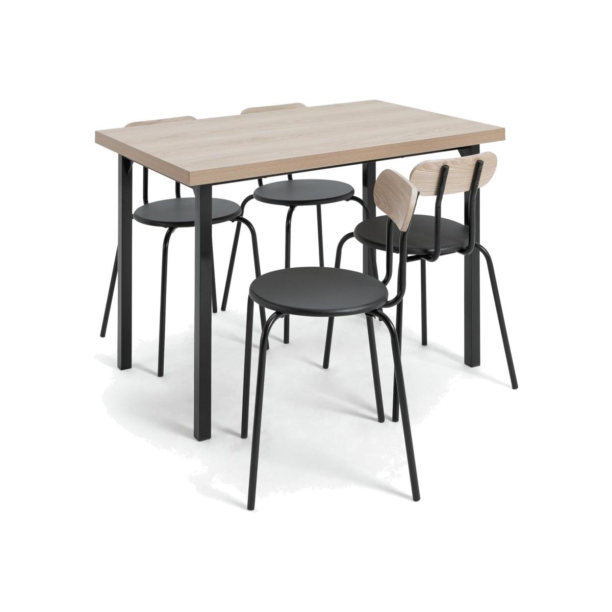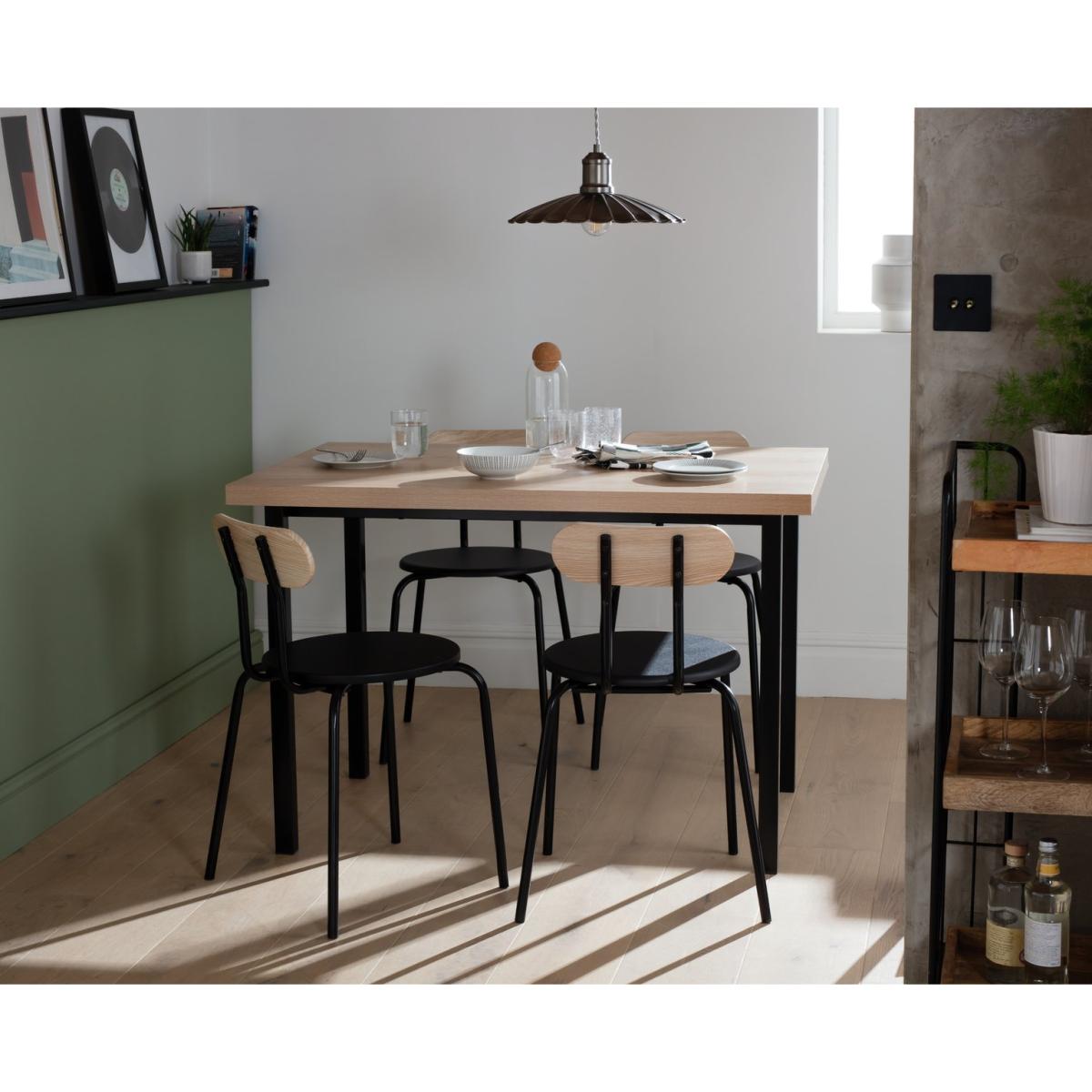 Modern mealtimes coming up. Slim, smart and space-saving, this 4-seater dining set is as industrial as it gets. Exclusive to Habitat, Zayn makes a subtle style statement with the rugged charm of black metal against pale ash woodgrain effect. 4 sleek metal dining chairs with matching backrests slide nicely under the table when not in use. Marvelously minimal.