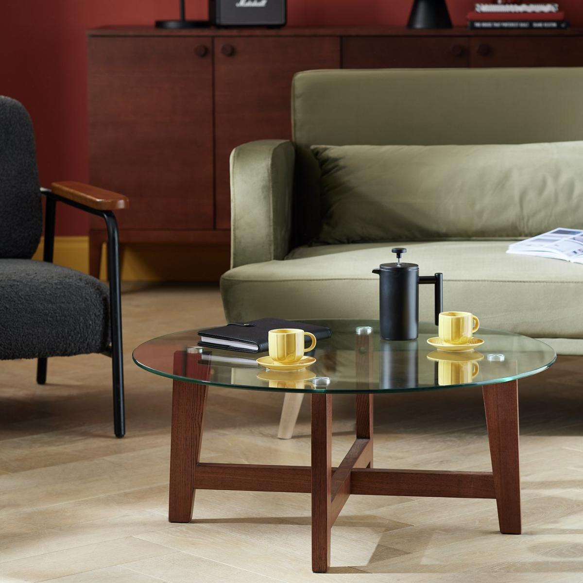 Combine Mid-Century chic with a dash of modern design and ta dah, we have Zela. A glass topped coffee table with a crisscross base and endless contemporary appeal. Walnut-stained solid wood legs provide a real feel of authenticity. Part of the Zela collection. Size H 80, W 34, D 80cm. Made from solid wood with a painted finish. Weight 12kg. Self-assembly - 2 people recommended. Maximum load weight 100kg. Package Dimensions: Package 1 dimensions: H10, W88, D88cm. Package 1 weight: 14kg. General information: We are excited to be welcoming some of our favourite HOME products into the Habitat range. Your product may arrive in Habitat or HOME packaging. Manufacturer's 1 year guarantee.