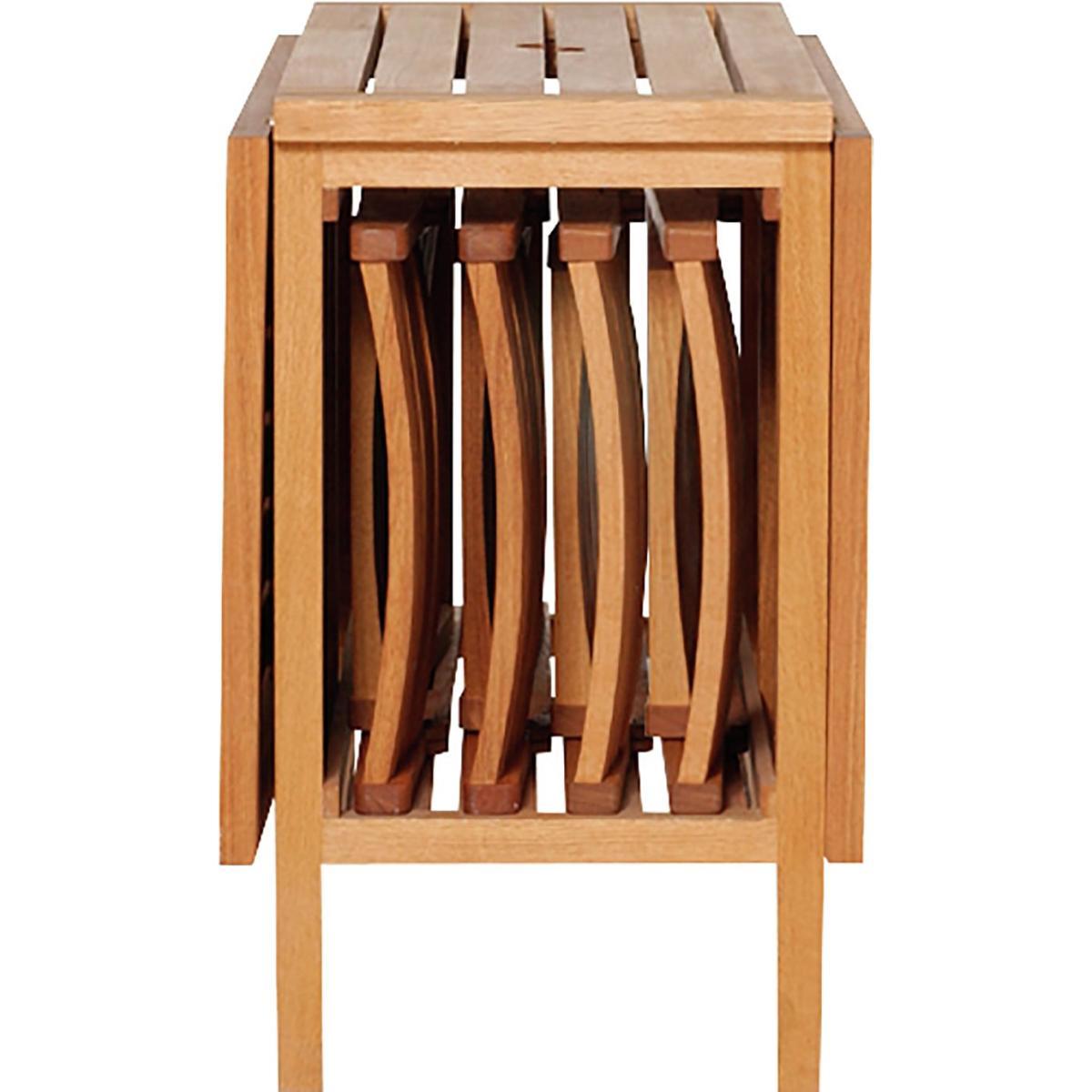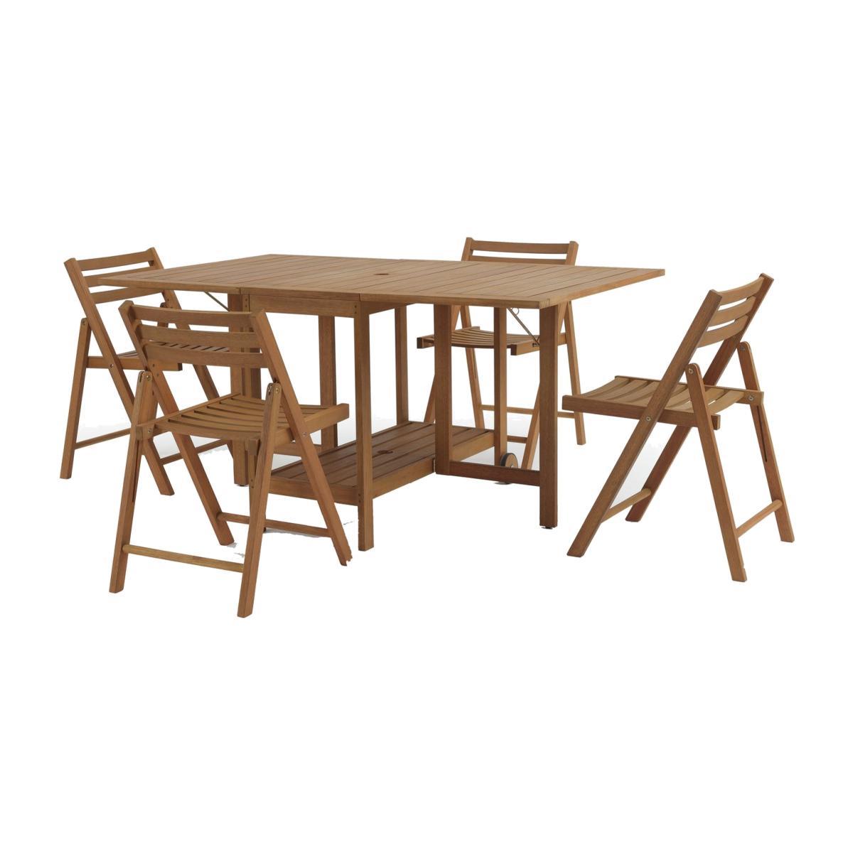 Get out there. Our Zeno table transforms your garden or deck into an alfresco dining spot. Simply flip open both sides of the table and voila! a table for four. It even has a handy shelf at the bottom for extra plates, condiments or other storage. This great value set is made from hard eucalyptus wood and includes one table and four chairs. And when the party is over simply fold it all up and use the table wheels to store away in a flash. Save space, have fun. Garden table features:Hardwood table top. Eucalyptus garden table. Table FSC certified wood. Table size: H75, W150, L95cm. Removable legs for storage. Table folds down for easy storage. When using a parasol in the table, always use a weighted parasol base and remove parasol in windy conditions. Garden chair features:Set seats 4 people. Seat height 44.5cm. Frame made from eucalyptus. Chair seat and back made from eucalyptus. Folding chairs (FSC certified). Folding chairs. Size H77, W44.5, D56cm. 120kg maximum user weight per chair. Parasol features:Parasol hole in table diameter 5cm. General features:Storage included in: chairs, table. Suitable for garden and balcony use. Weather resistant. Can be left outside all year; protect with a cover when not in use. Total weight 37kg. Packaging information:Package 1 size H77, W101.5, D48.5cm. Package 1 weight 25kg. Package 2 size H36, W92, D47cm. Package 2 weight 15kg. General Information: Fully assembled. Manufacturer's 1 year guarantee.