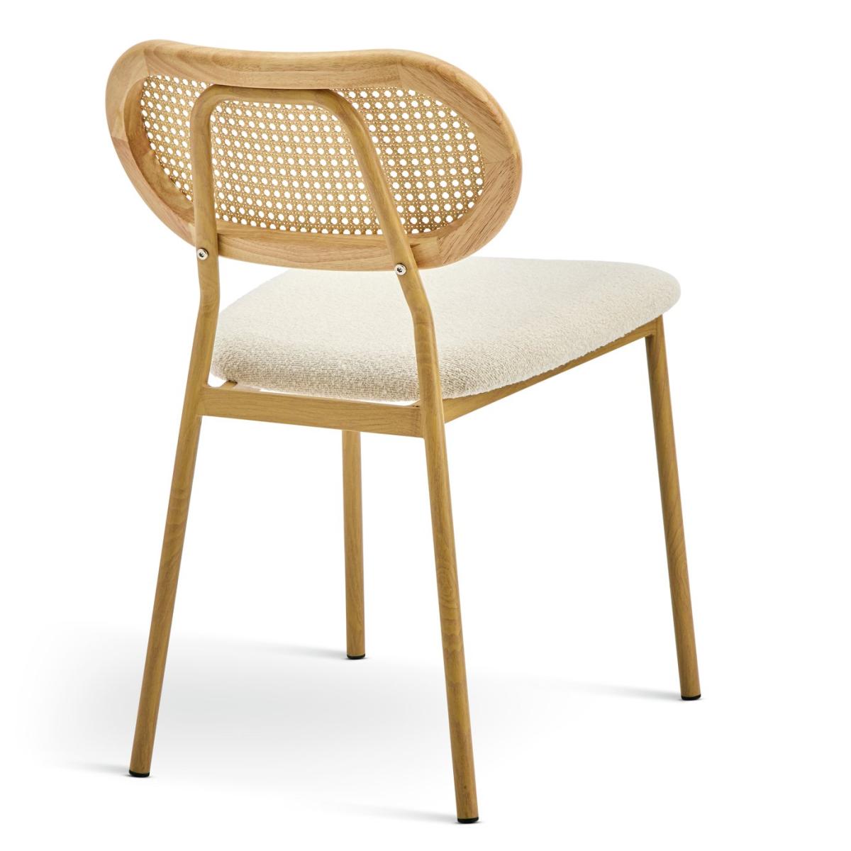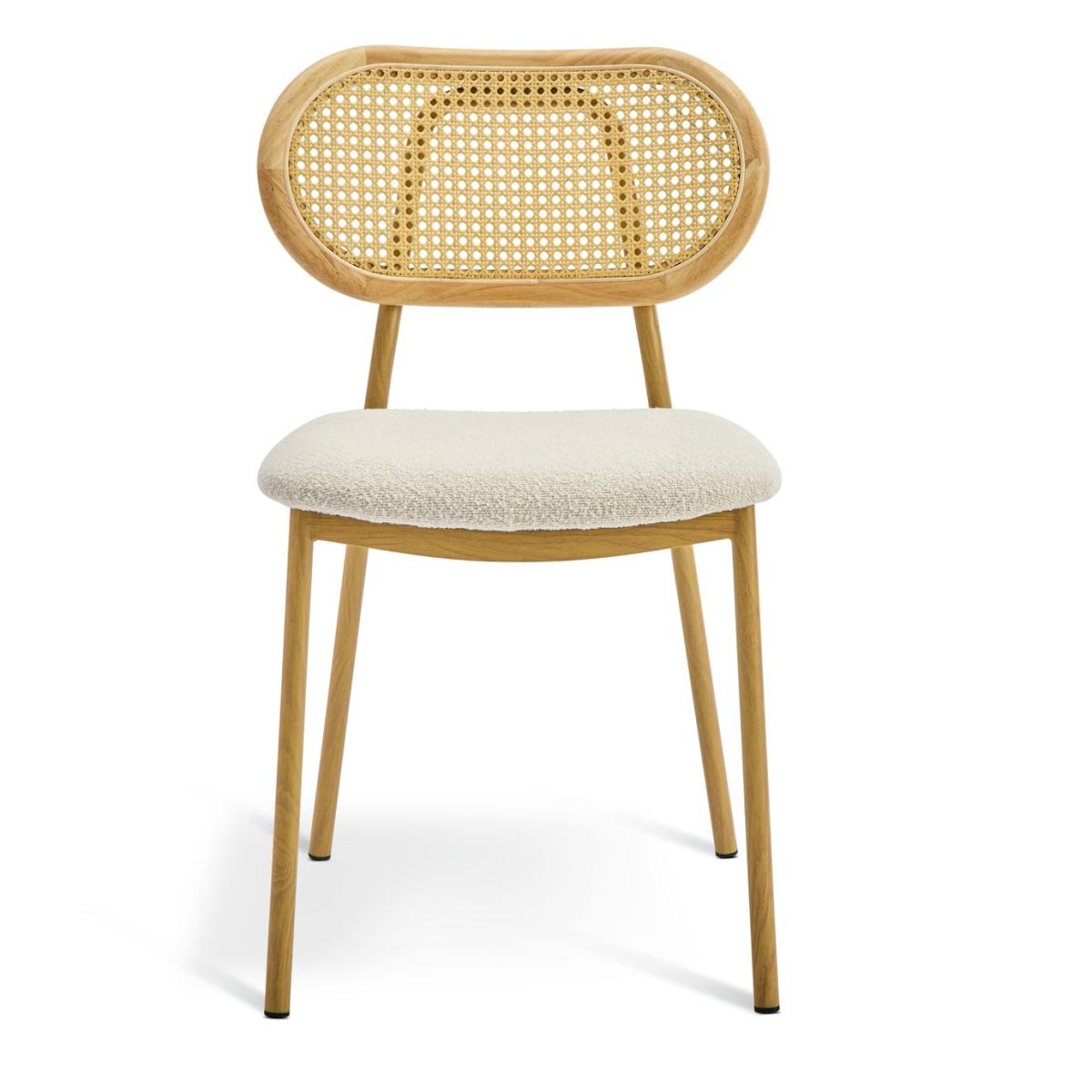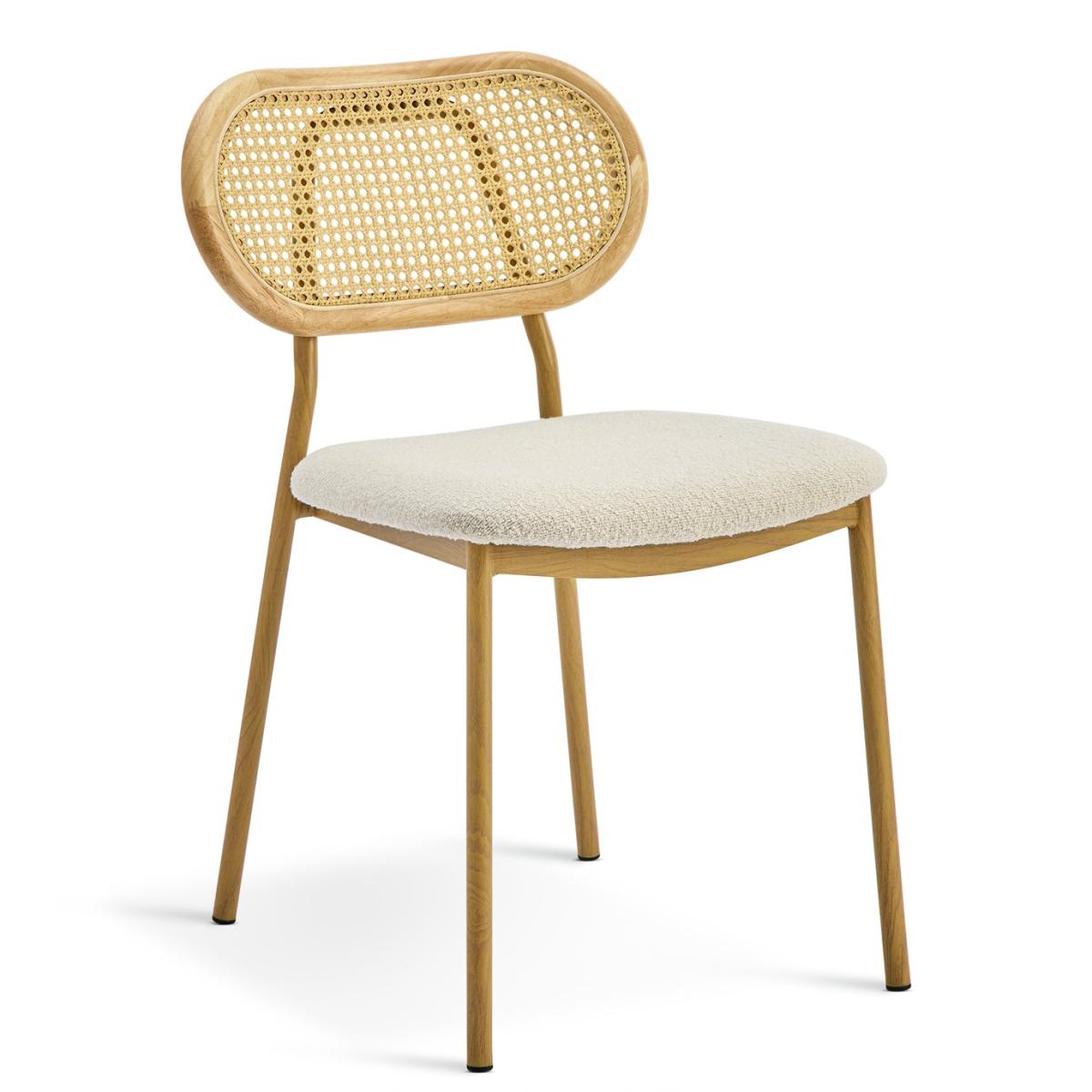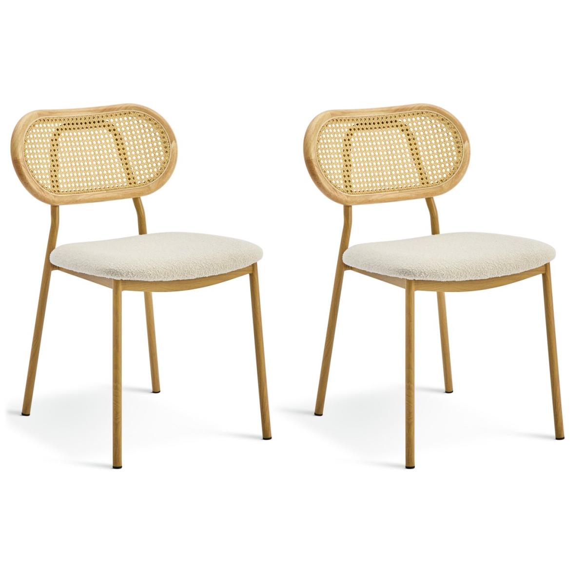 Mid-century style with modern ease. Our Zoey duo of chairs offer comfy rattan backs and softly cushioned seats set on a sturdy wood-effect steel frame. Light, refined and quietly confident. This is seating made for slow mornings, long lunches and drawn out dinners with friends. The invitation definitely says 'stay awhile'. Part of the Zoey collection. 2 chairs supplied. Size H77.5, W44.5, D53cm. Seat height 45cm. Steel frame with steel legs. Fabric seat pad. Self-assembly - 1 person recommended. Max user weight per chair 100kg. Individual chair weight 5kg. Dust or wipe with a damp cloth only. Package Dimensions: Package size: H50, W81, D47cm. General information: By choosing FSC certified products, you are supporting responsible management of the world's forests. Manufacturer's 2 Year (1 year fabric) guarantee.