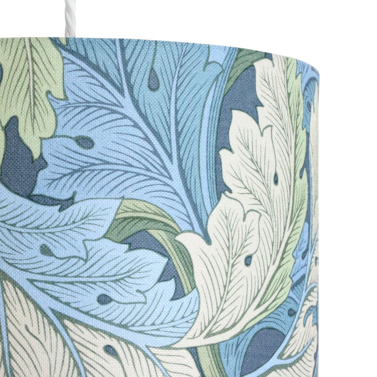 Our Acanthus print lampshade is made for lovers of Arts & Craft design. In soothing shades of blue and sepia, this William Morris design features a naturalistic pattern of swirling leaf foliage. Beautiful by day and producing a soft ambient glow by night. Easy to fit to a ceiling light or table lamp. Habitat x Morris & Co. A celebration of British design heritage with a fresh take on the iconic prints of William Morris. Part of the Habitat x Morris & Co. Collection. Made from polyester. Size H20cm, Diameter 30cm. Recommended maximum bulb wattage 15 watts. Easy fit shade. Manufacturer's 1 year guarantee.