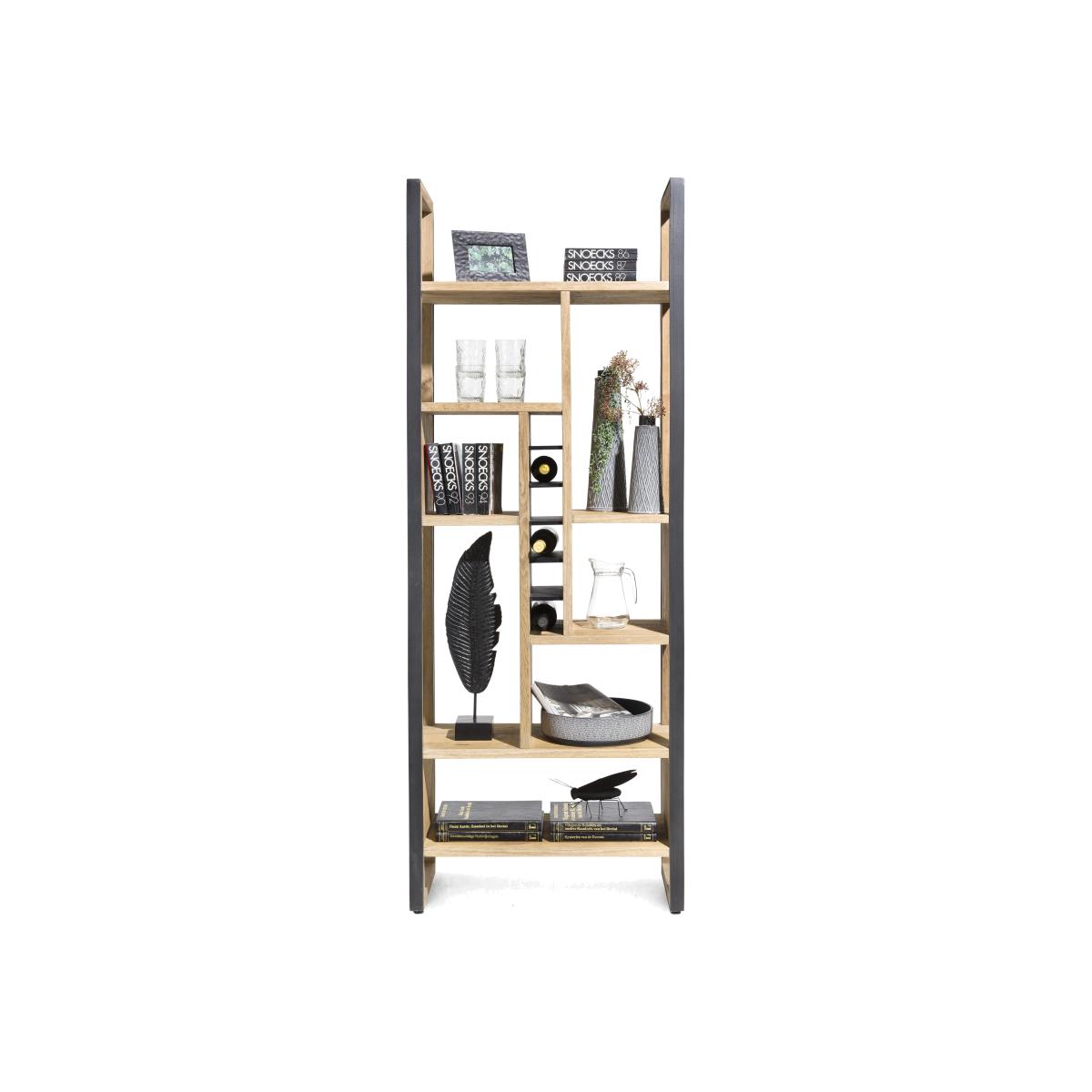 The Habufa Cleveland range is one of the most striking – yet understated – iterations of industrial style yet. The soft curves of its boat-shaped dining table and the clean lines of its many sideboards, TV units and occasional pieces elevate the natural oak veneer and metal finish into a design aesthetic that’s well out of the ordinary. The range’s dining table, offered in a choice of two sizes, features a handcrafted marquetry top in a timeless herringbone design supported by a black metal starburst base – the perfect balance of contemporary style and wonderful craftsmanship. This extensive collection also includes dining sets, dining chairs and dining armchairs. Perfect for open-plan living, this Habufa room divider with multiple multi-sized alcoves is an easy way to define different spaces and create cosy nooks. Why you'll love it This one-of-a-kind room divider is hugely practical and very cool. Contemporary industrial style with elegant design details. Natural oak veneer finish with black metal accents. With 13 multi-sized storage alcoves and a spacious shelf. Perfect for books, artwork, framed photos and even wine bottles. This room divider is part of the Habufa Cleveland range. What you need to know As oak is a natural material, knots and markings are to be expected. Avoid placing in direct sunlight or close to a heat source. We recommend using placemats and coasters at all times. Metal may show welding marks. WARNING!