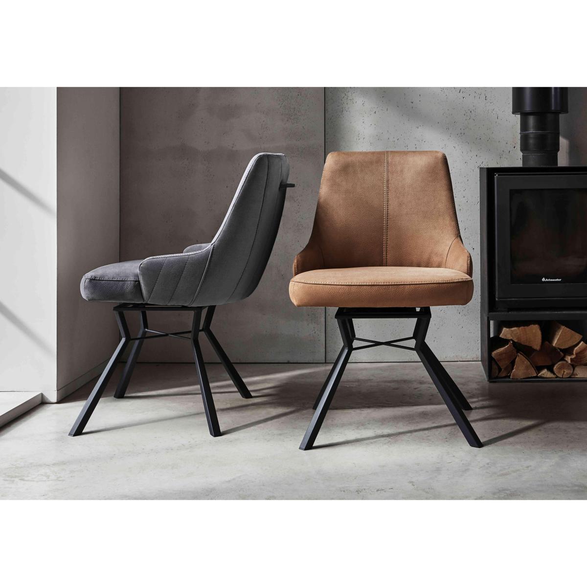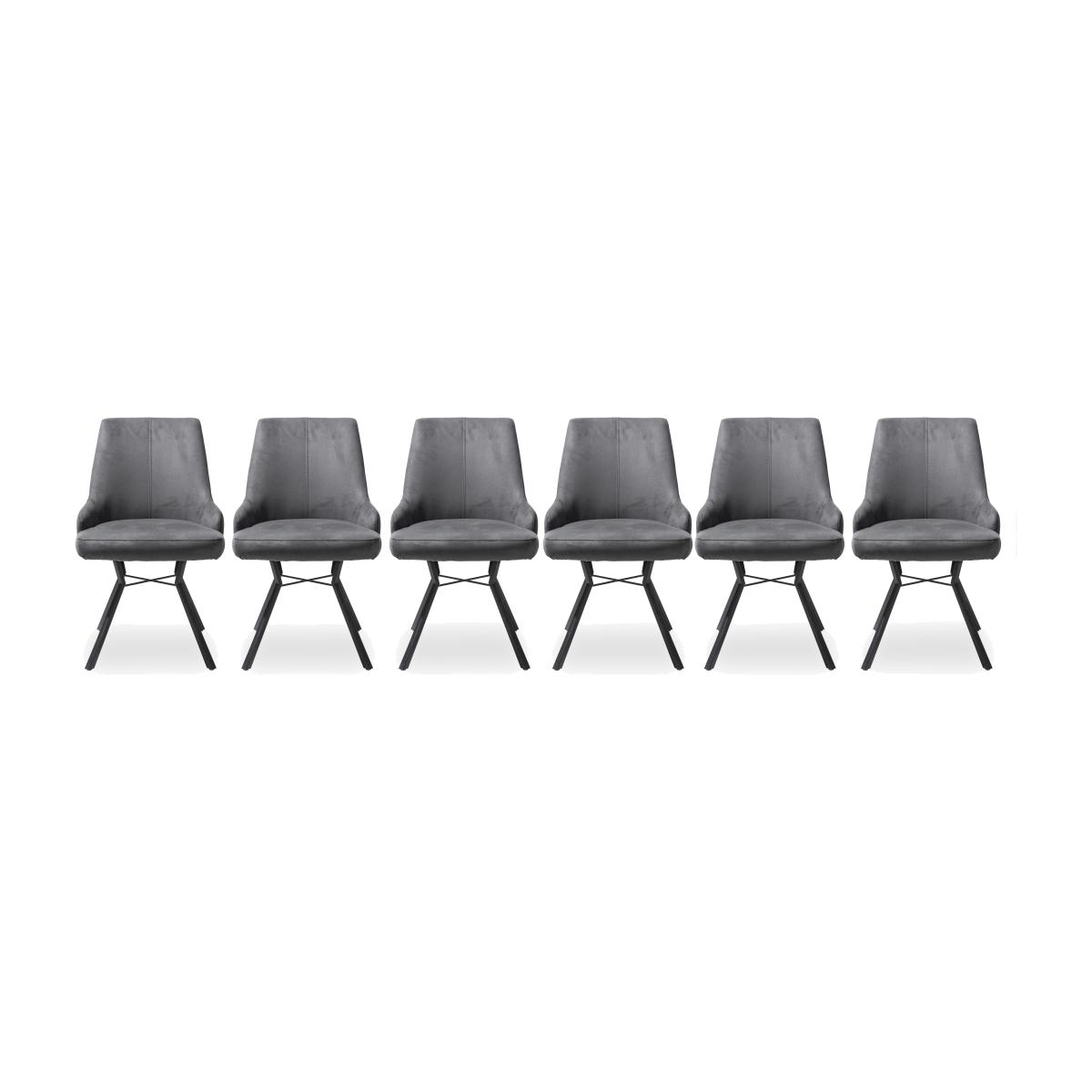 The Habufa Cleveland range is one of the most striking – yet understated – iterations of industrial style yet. The soft curves of its boat-shaped dining table and the clean lines of its many sideboards, TV units and occasional pieces elevate the natural oak veneer and metal finish into a design aesthetic that’s well out of the ordinary. The range’s dining table, offered in a choice of two sizes, features a handcrafted marquetry top in a timeless herringbone design supported by a black metal starburst base – the perfect balance of contemporary style and wonderful craftsmanship. This extensive collection also includes dining sets, dining chairs and dining armchairs. Bring home this set of six swivel-base dining chairs and enjoy dining style as well as dining comfort. In a choice of upholstery colour. Why you'll love it Elevate your dining room style with this set of 6 swivel dining chairs. Contemporary industrial style with elegant design details. High-quality cushioning for comfort with support. Soft faux leather upholstery in a choice of colours. Self-righting swivel mechanisms – seats always swivel back into place. Handles for manoeuvrability. This set of 6 swivel dining chairs is part of the Habufa Cleveland range. What you need to know Black metal legs. Foam cushioning.