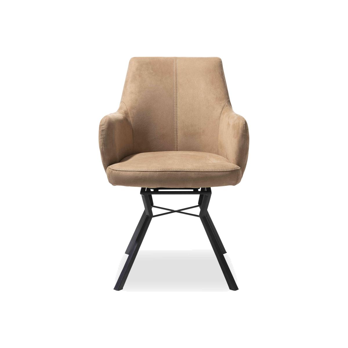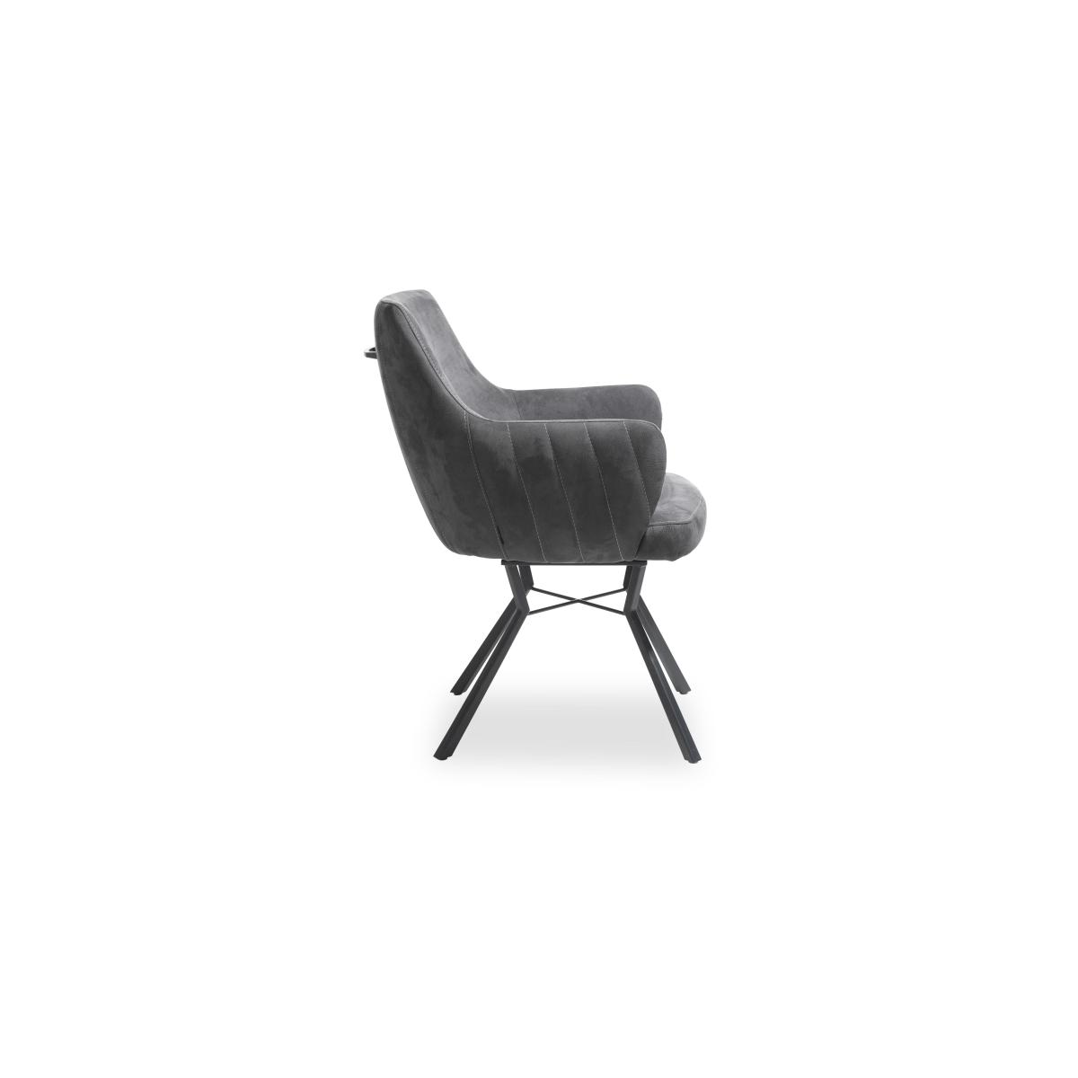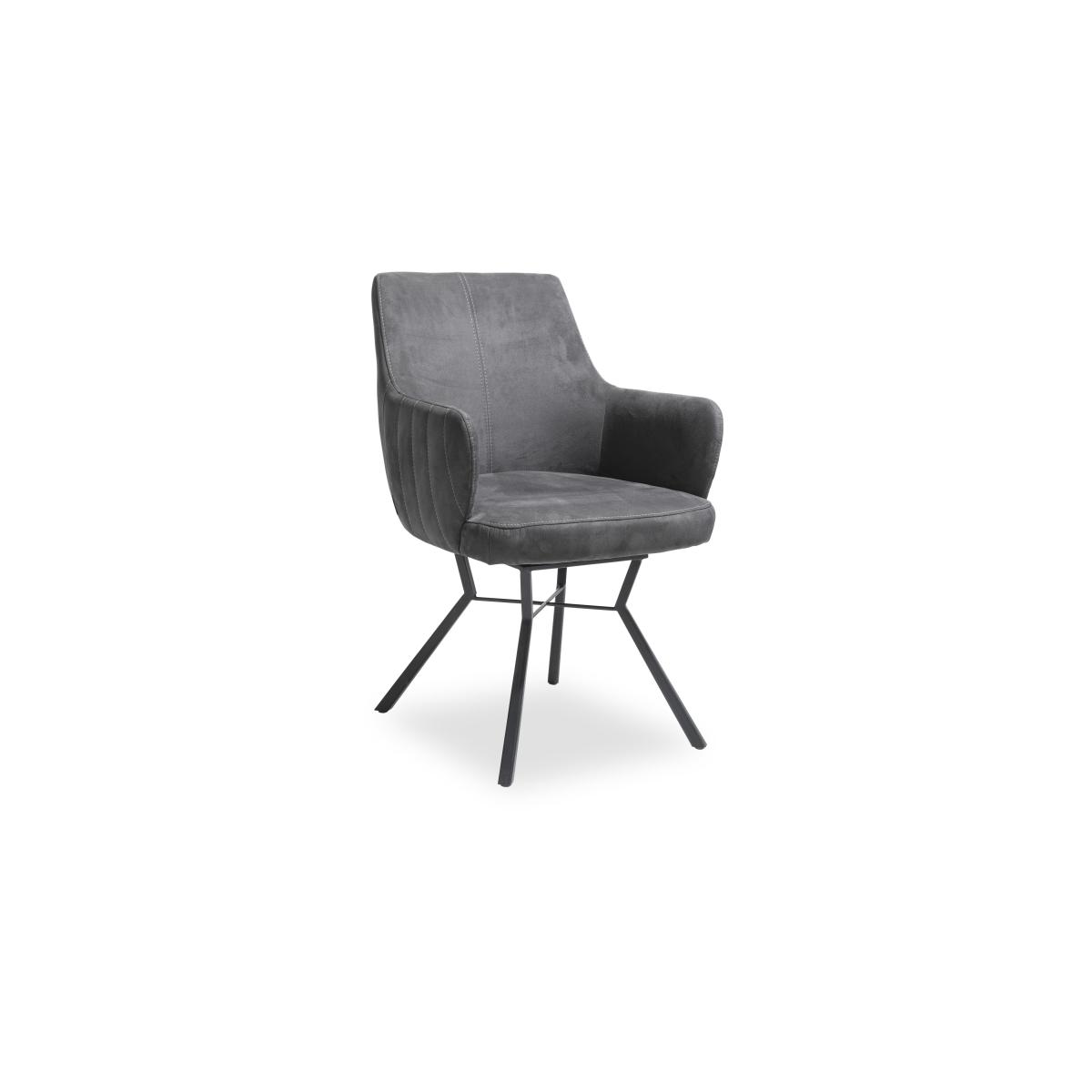 The Habufa Cleveland range is one of the most striking – yet understated – iterations of industrial style yet. The soft curves of its boat-shaped dining table and the clean lines of its many sideboards, TV units and occasional pieces elevate the natural oak veneer and metal finish into a design aesthetic that’s well out of the ordinary. The range’s dining table, offered in a choice of two sizes, features a handcrafted marquetry top in a timeless herringbone design supported by a black metal starburst base – the perfect balance of contemporary style and wonderful craftsmanship. This extensive collection also includes dining sets, dining chairs and dining armchairs. Very cool and very comfortable, this swivel dining armchair makes any small dining table look more stylish. Try them in your home office too. Why you'll love it This swivel dining armchair offers all-round comfort and style. Contemporary industrial style with elegant design details. High-quality cushioning and rounded arms for comfort with support. Soft faux leather upholstery in a choice of colours. Self-righting swivel mechanisms – seats always swivel back into place. Handles for manoeuvrability. This swivel dining armchair is part of the Habufa Cleveland range. What you need to know Black metal legs. Foam cushioning.