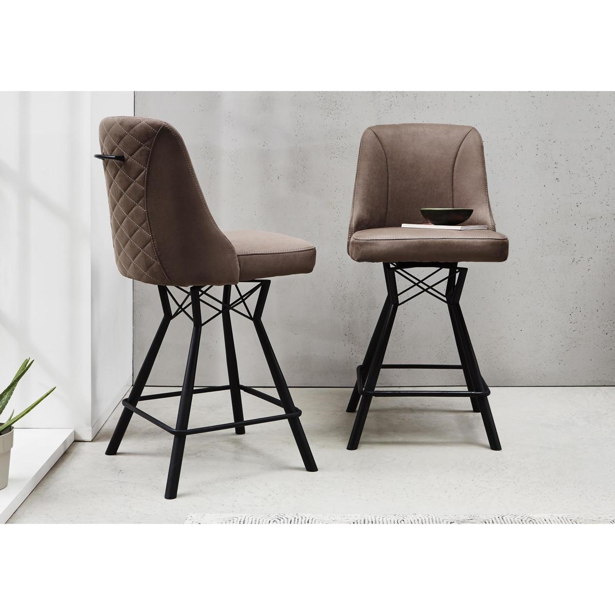 Detroit makes it easy to bring home the very current industrial trend. Perfectly imperfect oak surfaces with deliberately dark knots team with strong metal accents – metal-trimmed legs, borders on the ends of pieces, and drawer handles – in an aesthetic that’s confident and stylish. And with a range that includes sideboards, TV stands and dining tables, Detroit has plenty of function along with its modern, sophisticated form. Cool and compact dining for kitchens and breakfast rooms. On trend industrial look in rustic oak veneer and metal. Collection includes a bar table, bar stools and bar table sets. Dine in cool and elegant style with the Habufa Detroit bar stool. Offering all the convenience of a tall bar stool and all the style of a dining chair, this attractive seating features a curved and comfortable seat that’s fully upholstered in a soft yet durable fabric in your choice of anthracite or taupe. This bar stool, the right height for sociable seating next to a kitchen counter swivels so it’s easy for diners to get seated and stand up, even in a compact space. The architecturally-inspired legs are slender and made of metal with a black finish and feature a handy footrest on all four sides. The Habufa Detroit bar stool is part of the Habufa Detroit collection of industrial-style living and dining room furniture. This stylish bar stool is designed to partner with the Furniture Village exclusive Habufa Detroit bar table which, though compact in size, comfortably seats up to six, and is the perfect height for creating a kitchen breakfast bar when placed next to a standard-height kitchen counter.