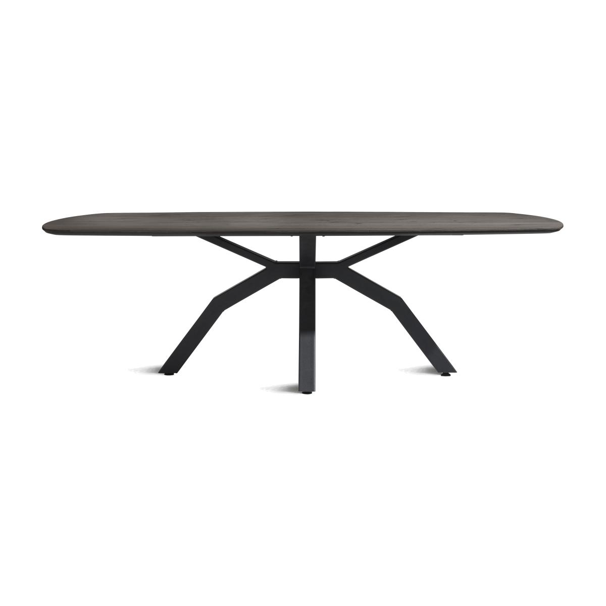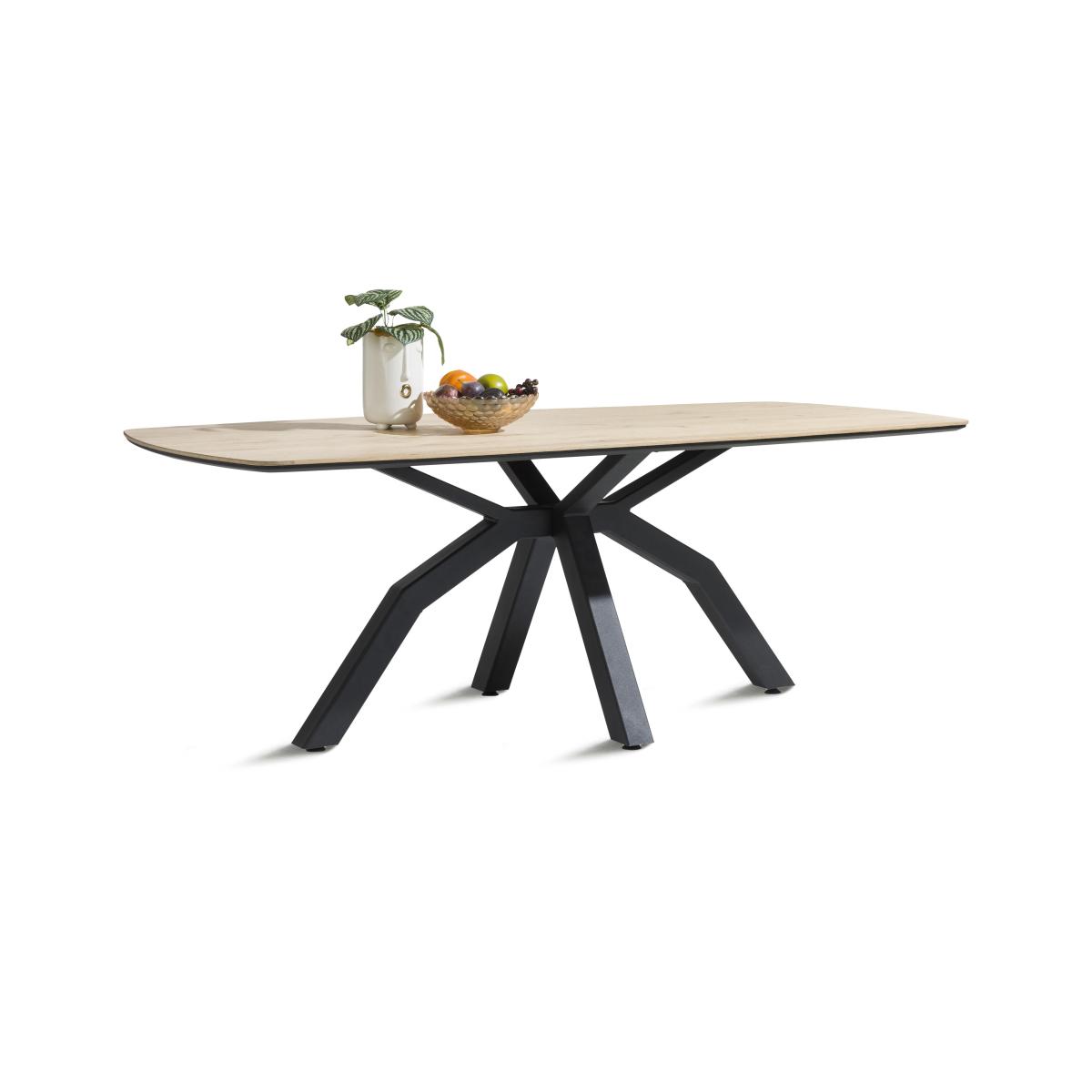 Thanks to its perfectly smooth oak veneer surfaces and finely crafted metal elements, Habufa’s Montreal collection showcases the evolution of industrial design from rustic and bold to elegant and refined. Above all, this is a range that offers a wealth of ways to customise your dining room furniture. Pieces are available in a choice of fashionable oak finishes. Dining tables are offered in three sizes and two different base styles – distinctive spider legs and bold U-shaped legs. And dining sets feature a choice of dining chair. The Habufa Montreal range also includes living room and dining room storage furniture and is exclusive to Furniture Village. Here’s a statement dining table with a difference. Large in scale – and offered in three sizes – it features an eye-catching spider leg base. By Habufa. Why you'll love it This statement dining table has a very distinctive spider leg base. Clean modern style with an industrial feel. Curved table ends give it a sleek, contemporary look. Ergonomic spider leg design makes it easy to seat more diners. Choose from 4 beautiful finishes for the oak veneer table top. In 3 sizes to suit your space and your family. This range is exclusive to Furniture Village. This dining table with spider legs is part of the Habufa Montreal range. What you need to know Oak veneer table top. Black metal frame and legs. 190 cm dining table seats 6. 220 cm dining table seats 8. 250 cm dining table seats 10. As oak is a natural material, knots and markings are to be expected. Avoid placing in direct sunlight or close to a heat source. We recommend using placemats and coasters at all times.
