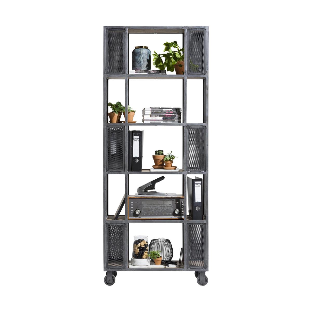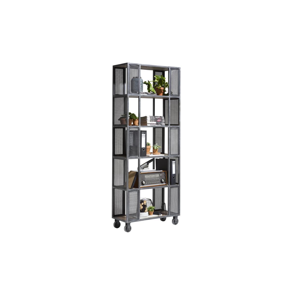 Fantastic industrial-style room divider on castors. In characterful oak veneer and off-black weathered metal. Exclusive to Furniture Village. On trend urban style simply doesn’t get much cooler than the Habufa Philadelphia room divider. This stylish storage piece provides shelves for books and objects, and is designed to help you create functional zones in an open plan living space. And because it’s on castors, it’s so easy to move around. The look is entirely industrial thanks to the oak veneer shelves, off-black weathered metal frame and geometric arrangement of decorative metal panels. Perfect in a living room adorned with pottery, family photos and a couple of plants, this piece also works beautifully in a home office as the shelves are tall enough to house box files, folders and large books. The clever and creative Habufa Philadelphia room divider is part of the Habufa Philadelphia collection, a Furniture Village exclusive. Pair it with the Habufa Philadelphia large highboard for fantastic and functional living room storage. The range also includes four sizes of dining table, dining sets and a cantilever base dining chair. Please note: No two pieces of veneer or solid timber are the same and colour variances will occur. This means that each piece in the Habufa Philadelphia collection is one of a kind.