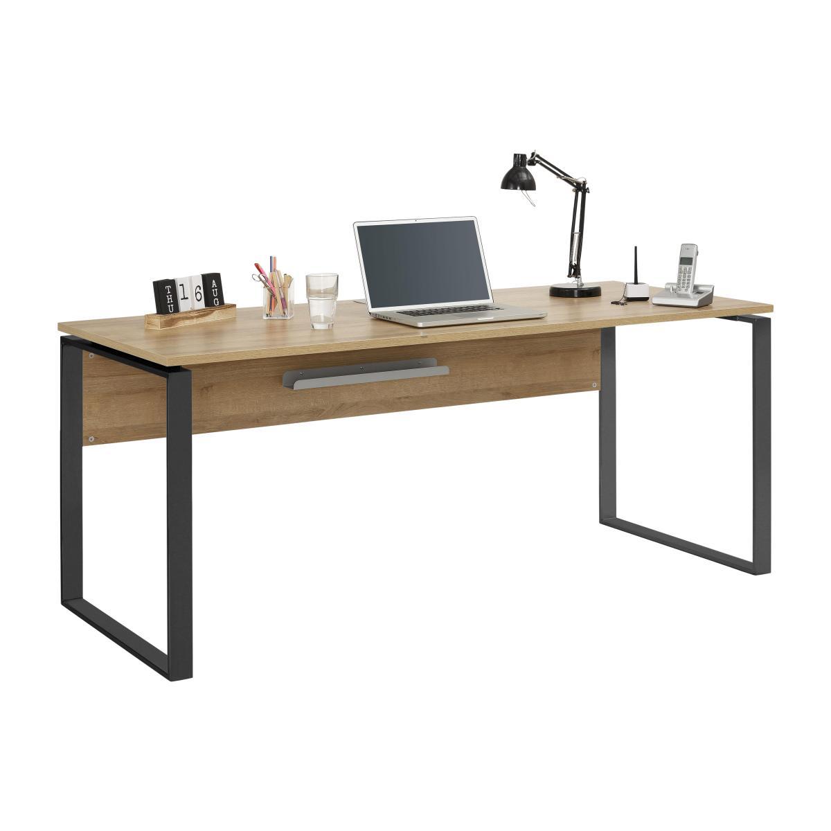 Create a modern, dynamic home-working environment with industrial pieces from the Hackney range. Choose desks of varying sizes, cabinets and drawers. Each item has a warm Riviera oak finish noted for its strength and durability, with metal, powder-coated in an anthracite colourway for a stunning finishing touch. A protective laminate is used on the edges of all pieces, with graphite handles adding detail. The range highlights precision German engineering, and is exclusive to Furniture Village. *This is a self-assembly item*. Modern, stylish and well-made, this large desk is perfect for the home office. Combining Riviera oak effect surfaces with a strong metal frame, the industrial effect is both practical and eye-catching. Why you’ll love it. A large statement office desk, perfect for home working. Generous surface area, allowing room for decorations and photos. Modern industrial style, mixing wood finish and metal. Riviera oak effect top, anthracite coloured metal frame. The desktop is scratch, stain and heat resistant. Powder-coating used on all metallic surfaces. Cable storage and aluminium cable feed through. Precision German engineering, made just for Furniture Village. What you need to know. Melamine safeguards against scratches, stains and heat damage. A protective laminate is used on the edges, boosting durability. Durable and hard-wearing. Shop the Hackney home office range for matching cabinets and drawers. WARNING!. Furniture can tip over unexpectedly and cause injury. This item shall be fixed to a wall using the anti-tip kit provided with the furniture. Be sure to use the correct wall fixings suitable for the walls in your home.